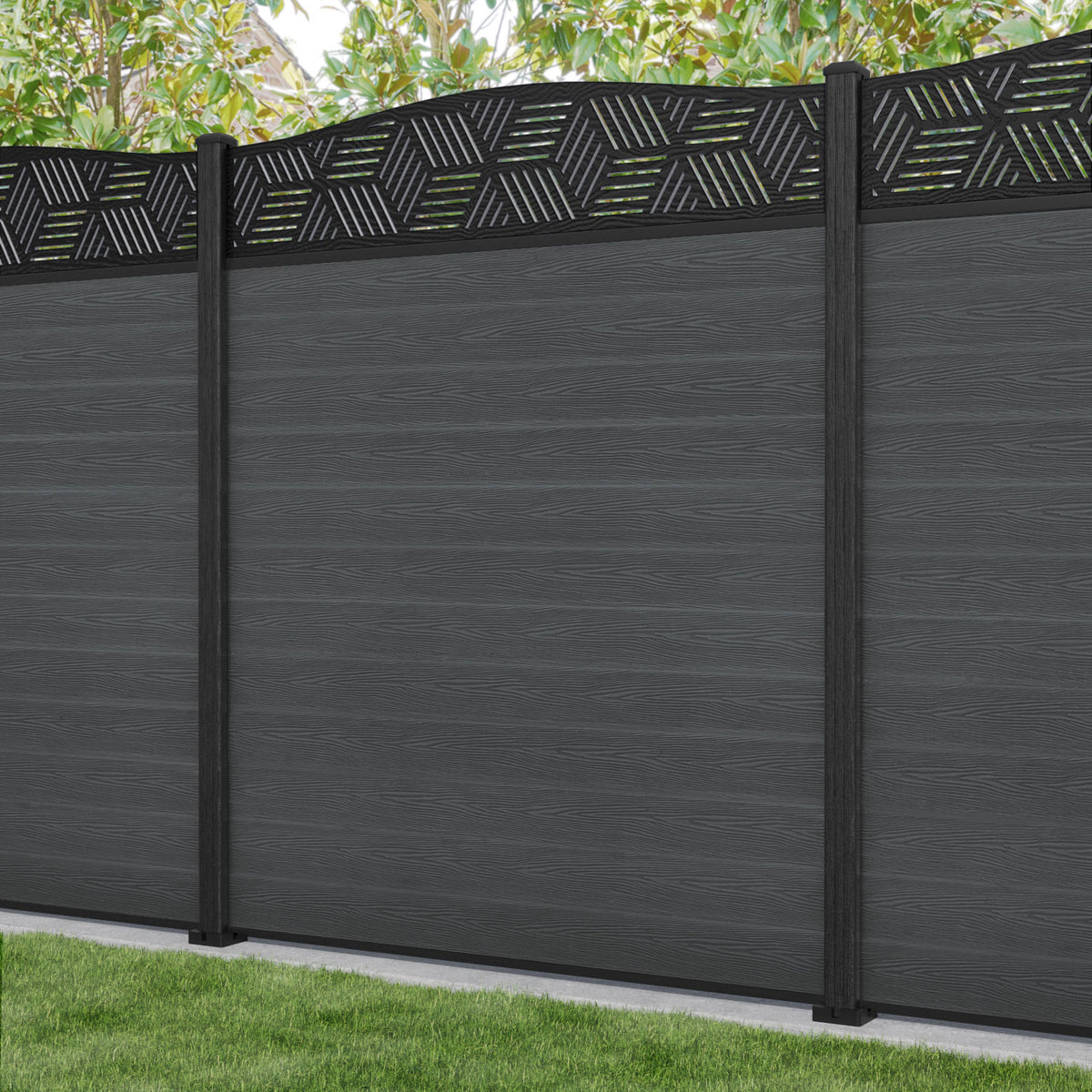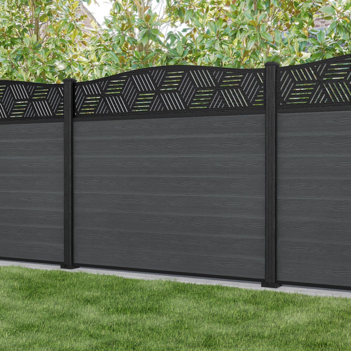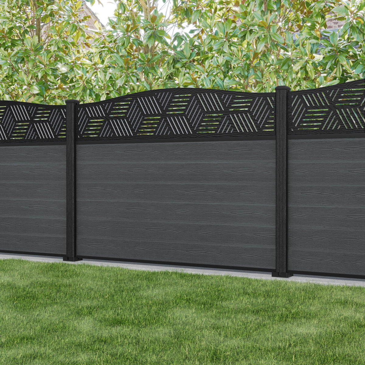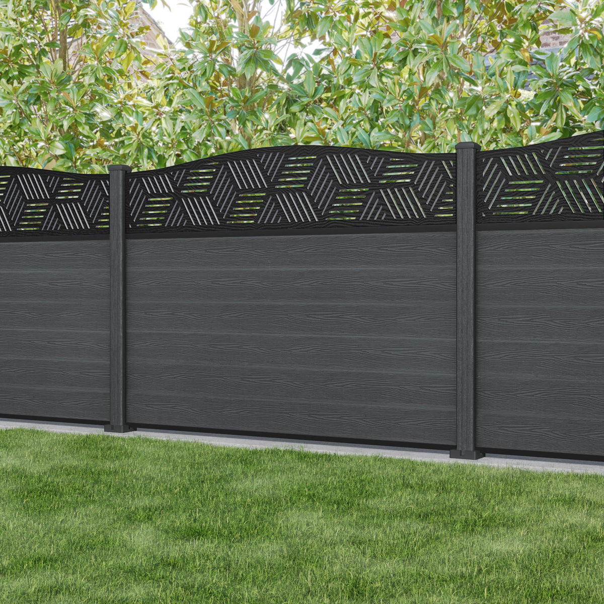 Classic Cubed Curved Top Fence Panel Dark Grey - with our composite posts