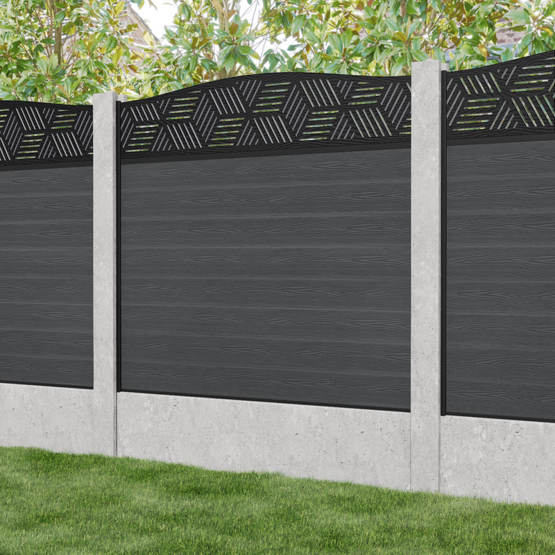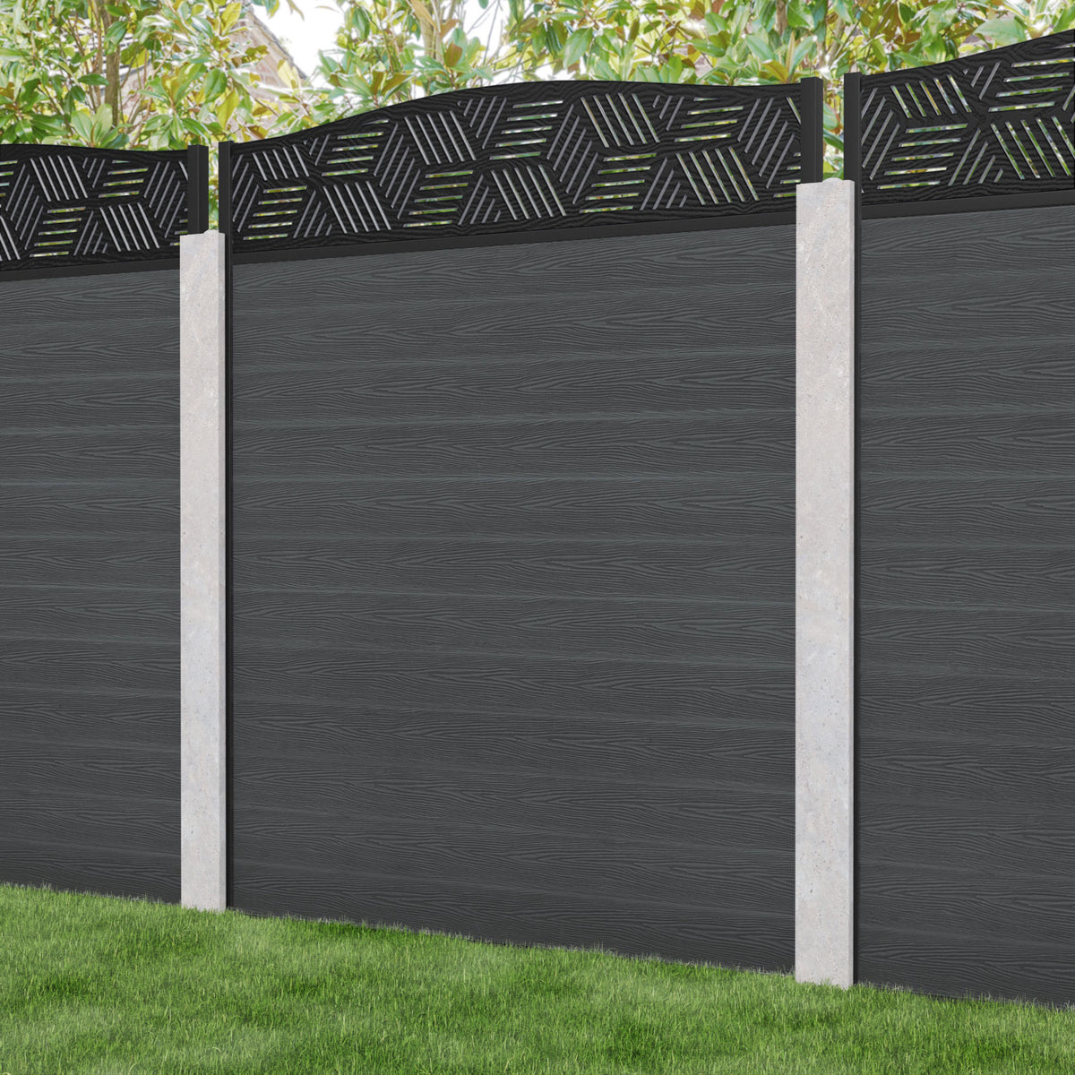 Classic Cubed Curved Top Fence Panel Dark Grey - for existing concrete posts