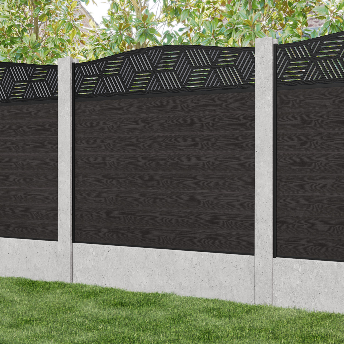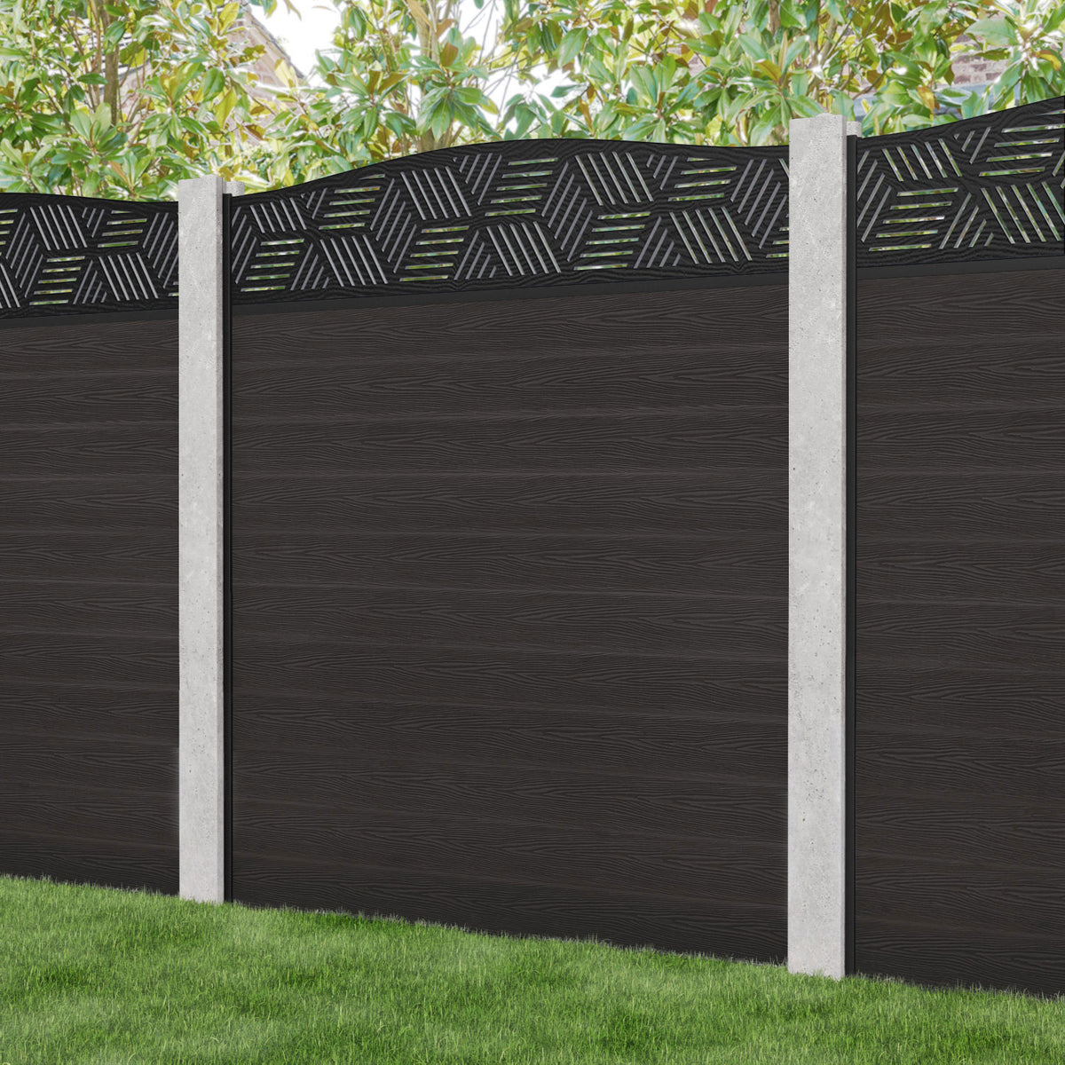 Classic Cubed Curved Top Fence Panel Dark Oak - for existing concrete posts