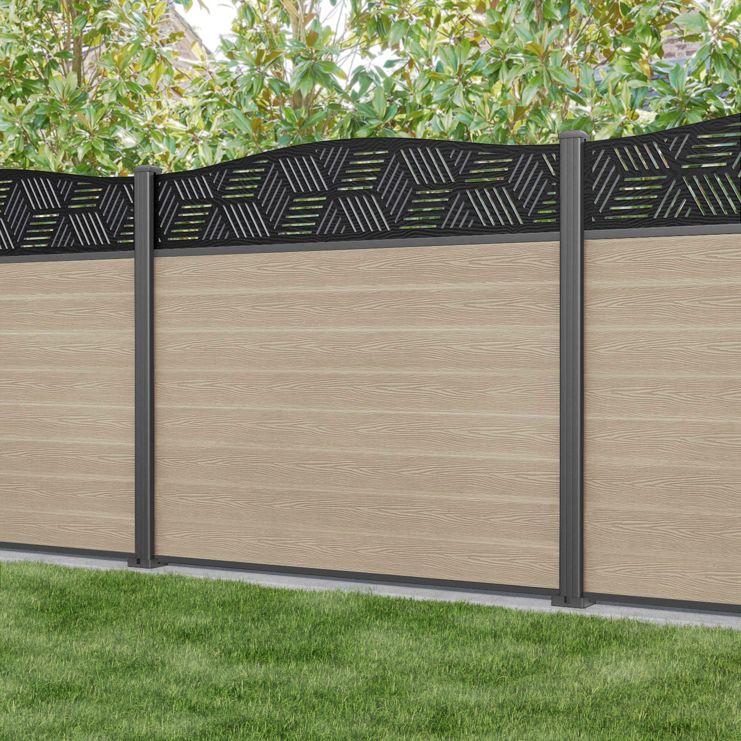 Classic Cubed Curved Top Fence Panel Light Oak - with our aluminium posts