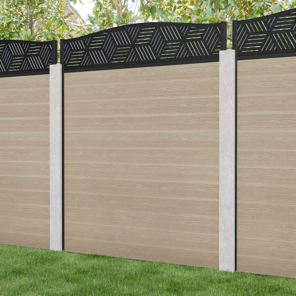 Classic Cubed Curved Top Fence Panel Light Oak - for existing concrete posts