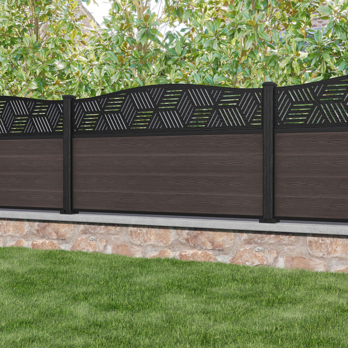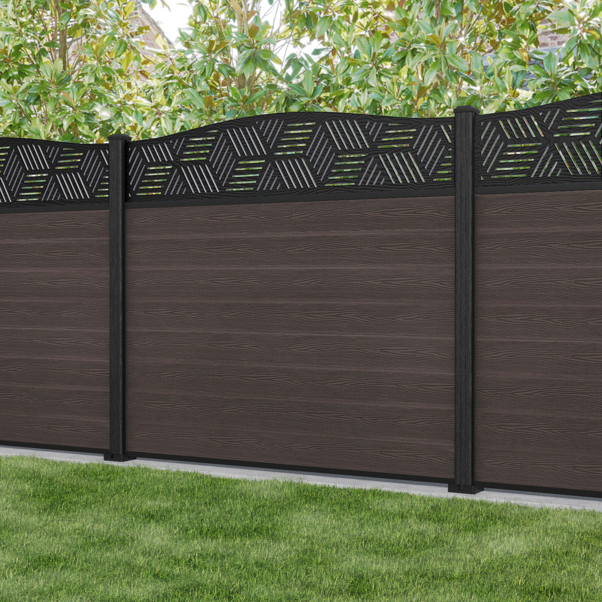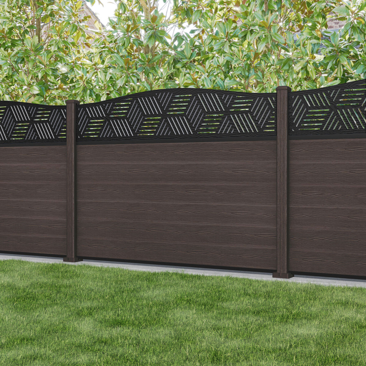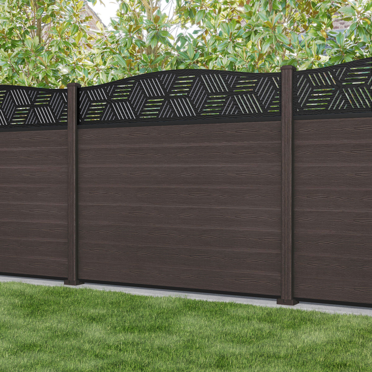 Classic Cubed Curved Top Fence Panel Mid Brown - with our composite posts