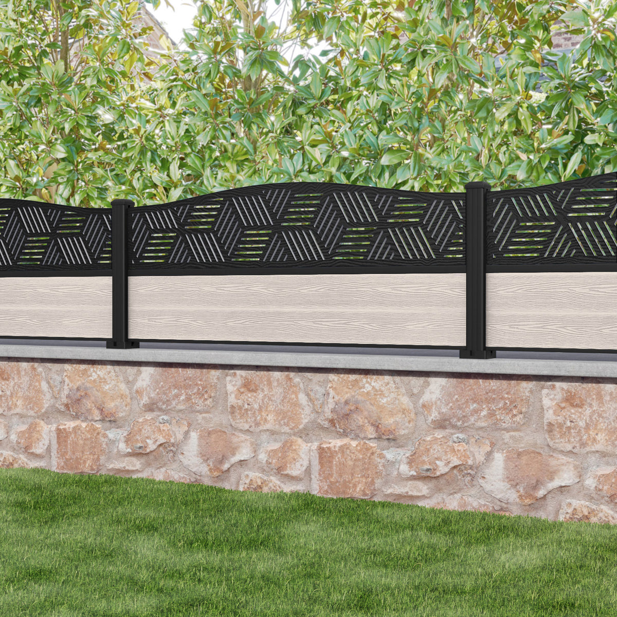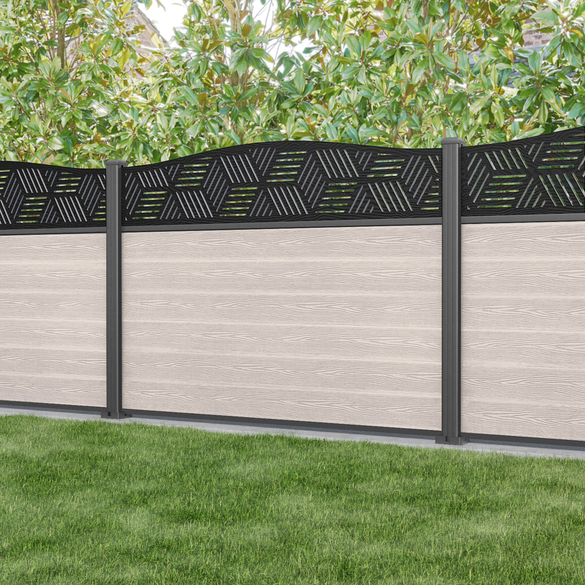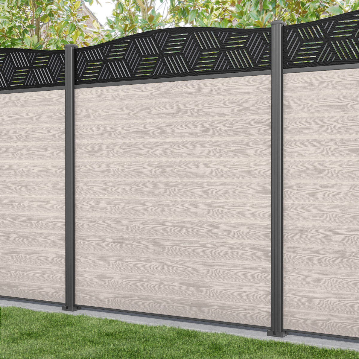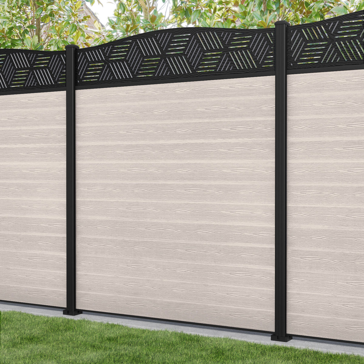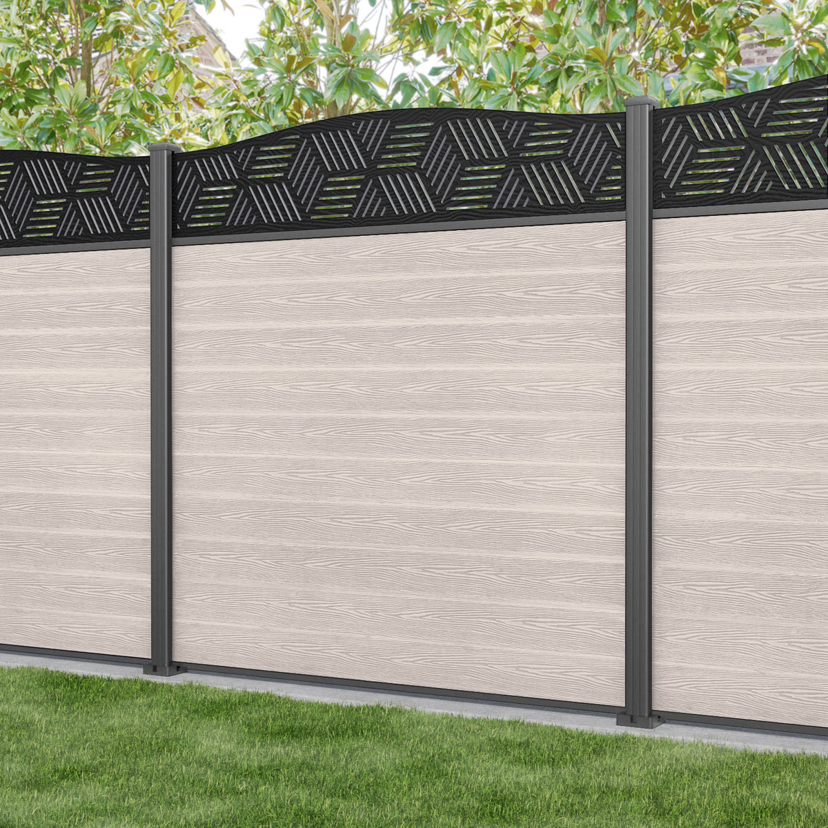 Classic Cubed Curved Top Fence Panel Mid Stone - with our aluminium posts