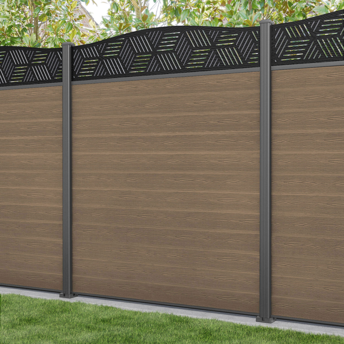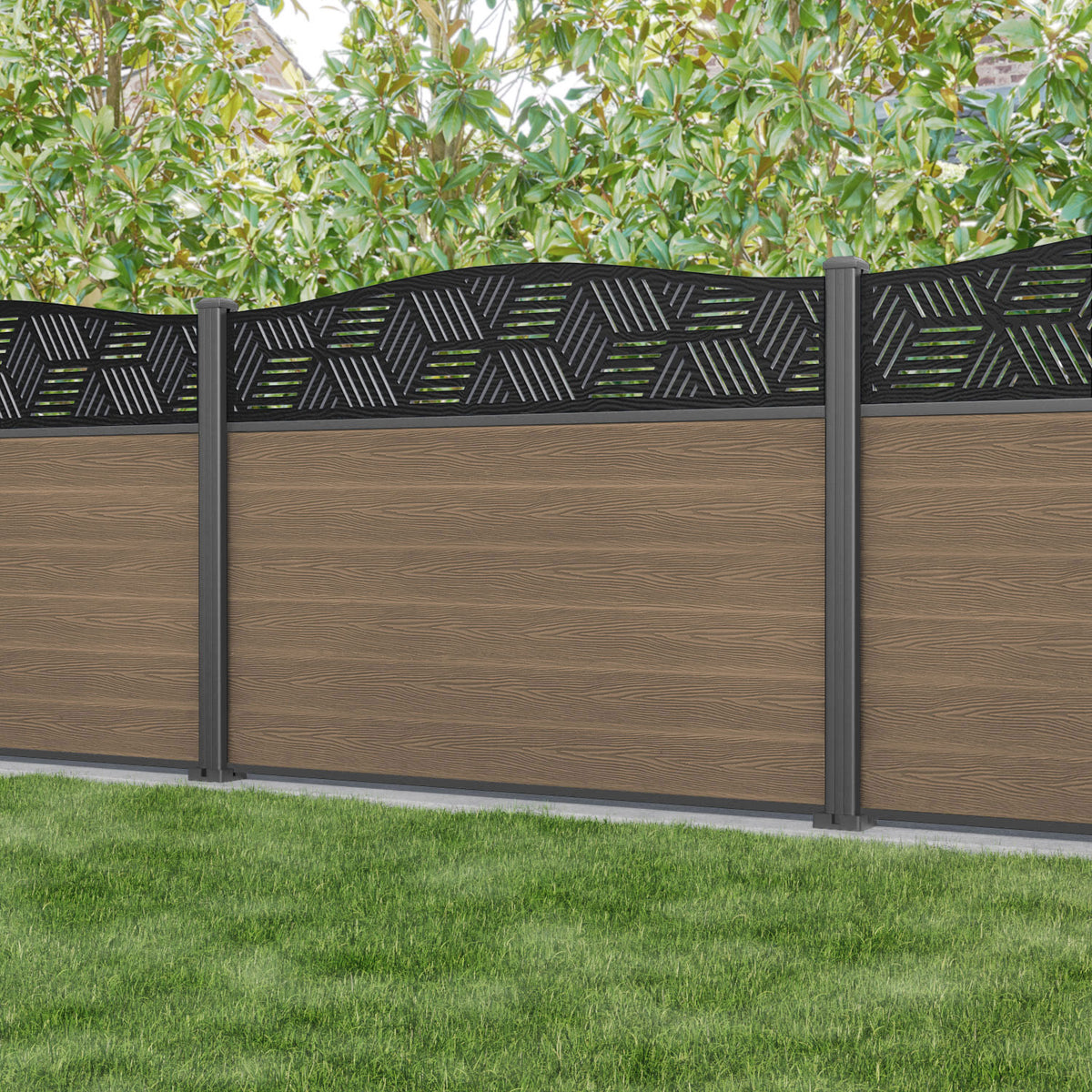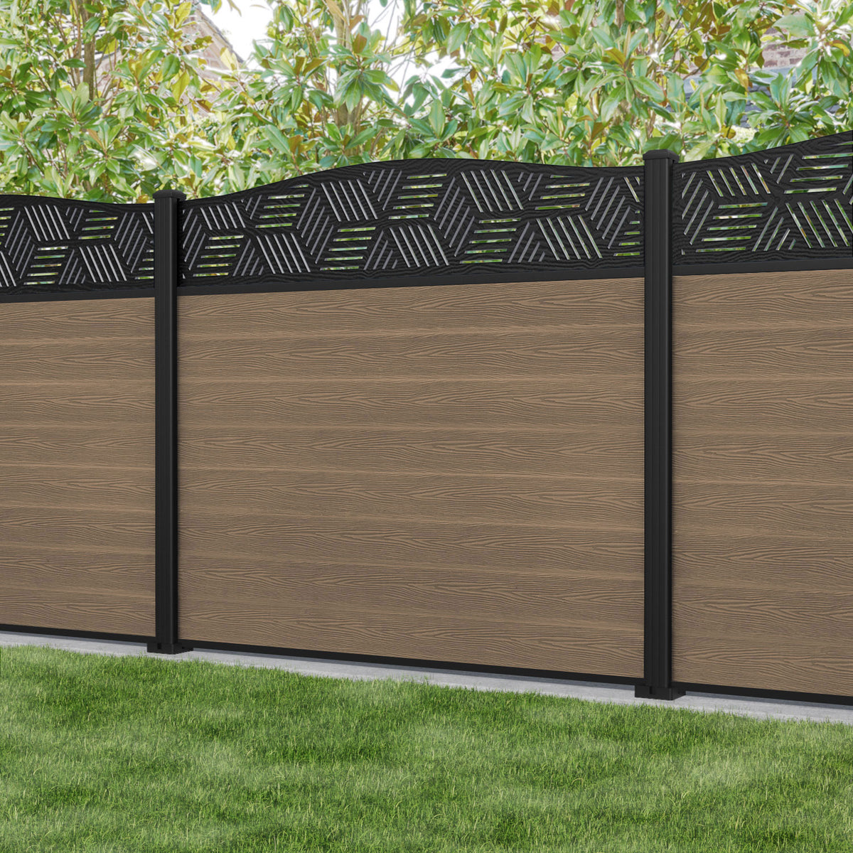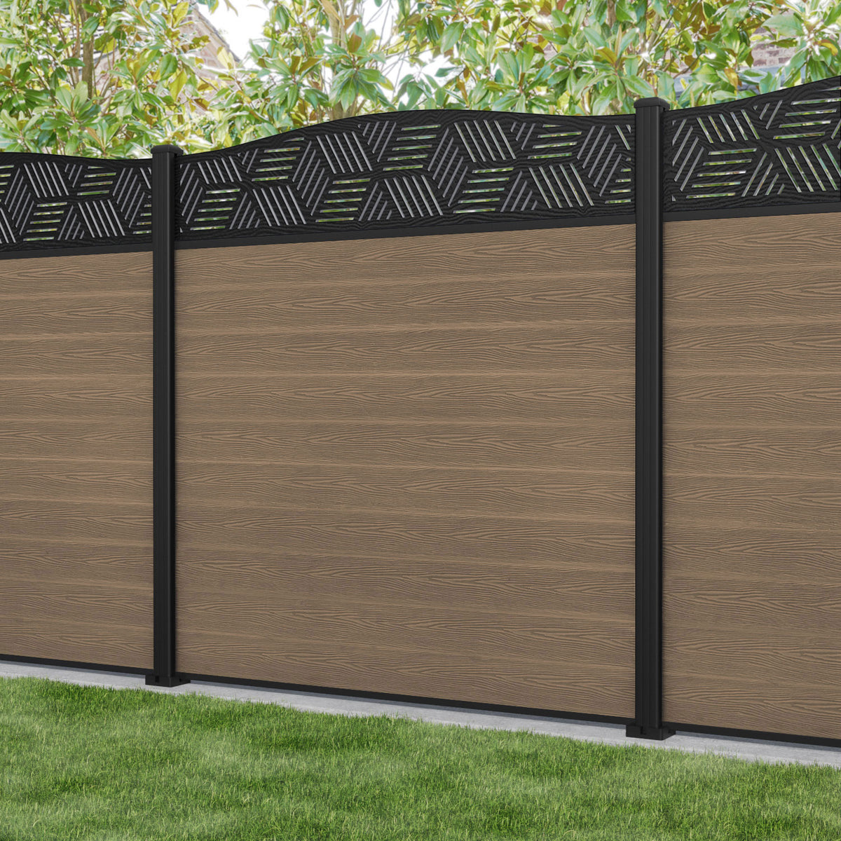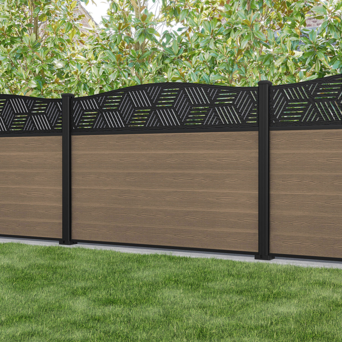 Classic Cubed Curved Top Fence Panel Teak - with our aluminium posts