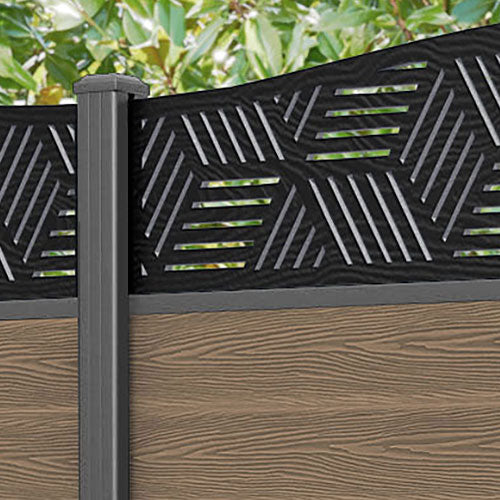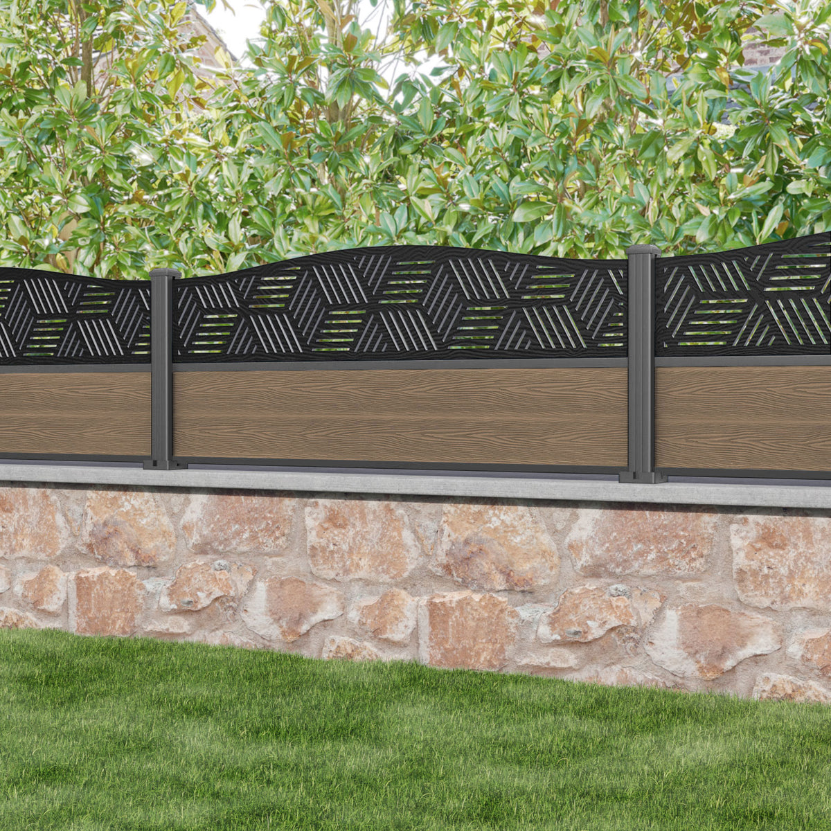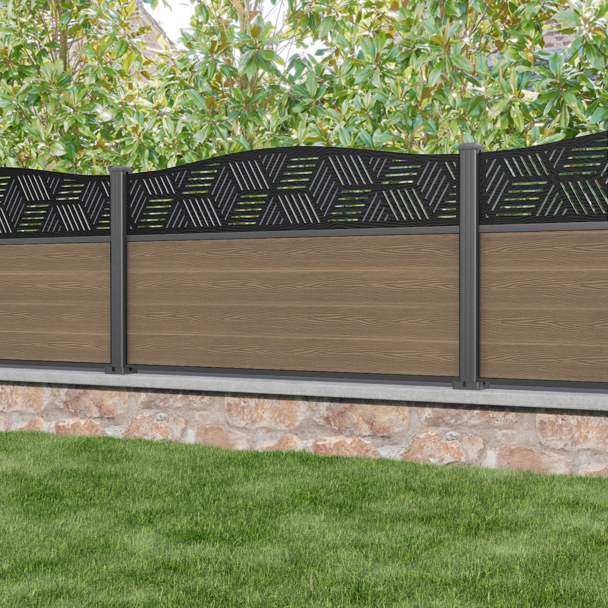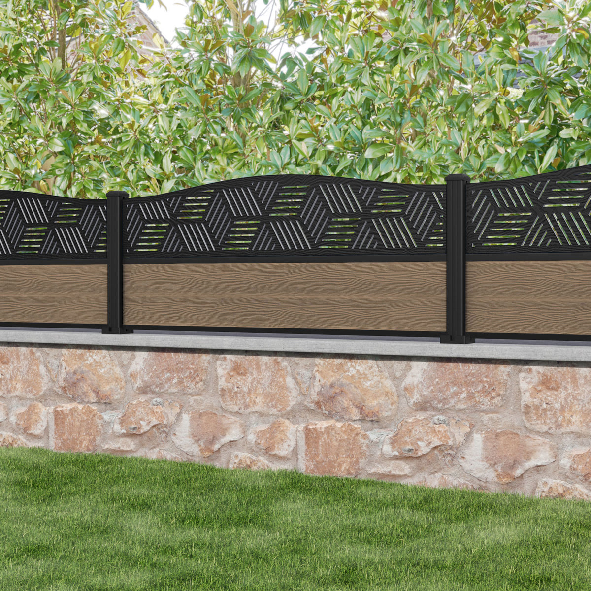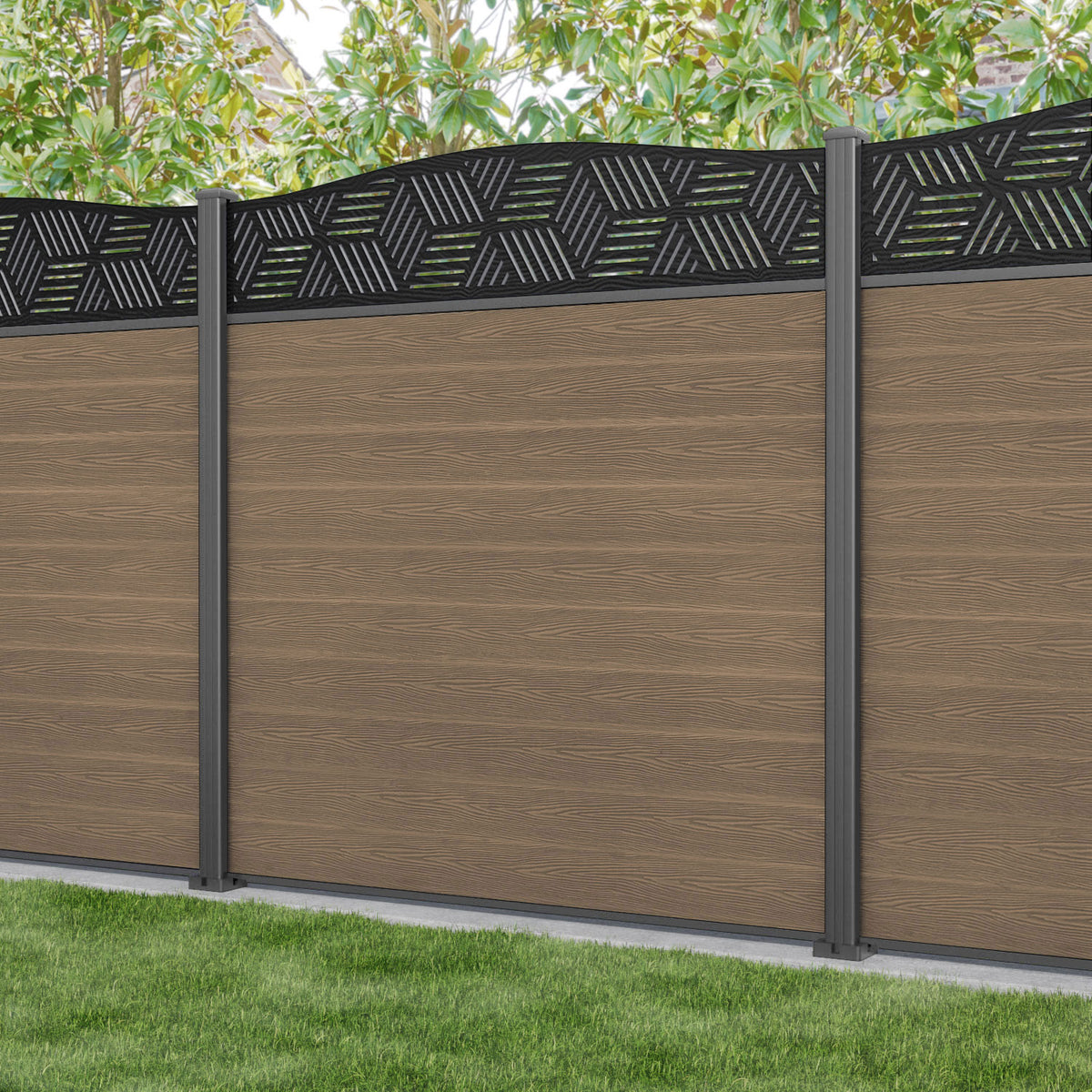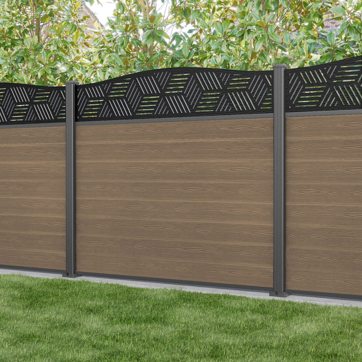 Classic Cubed Curved Top Fence Panel Teak - with our aluminium posts