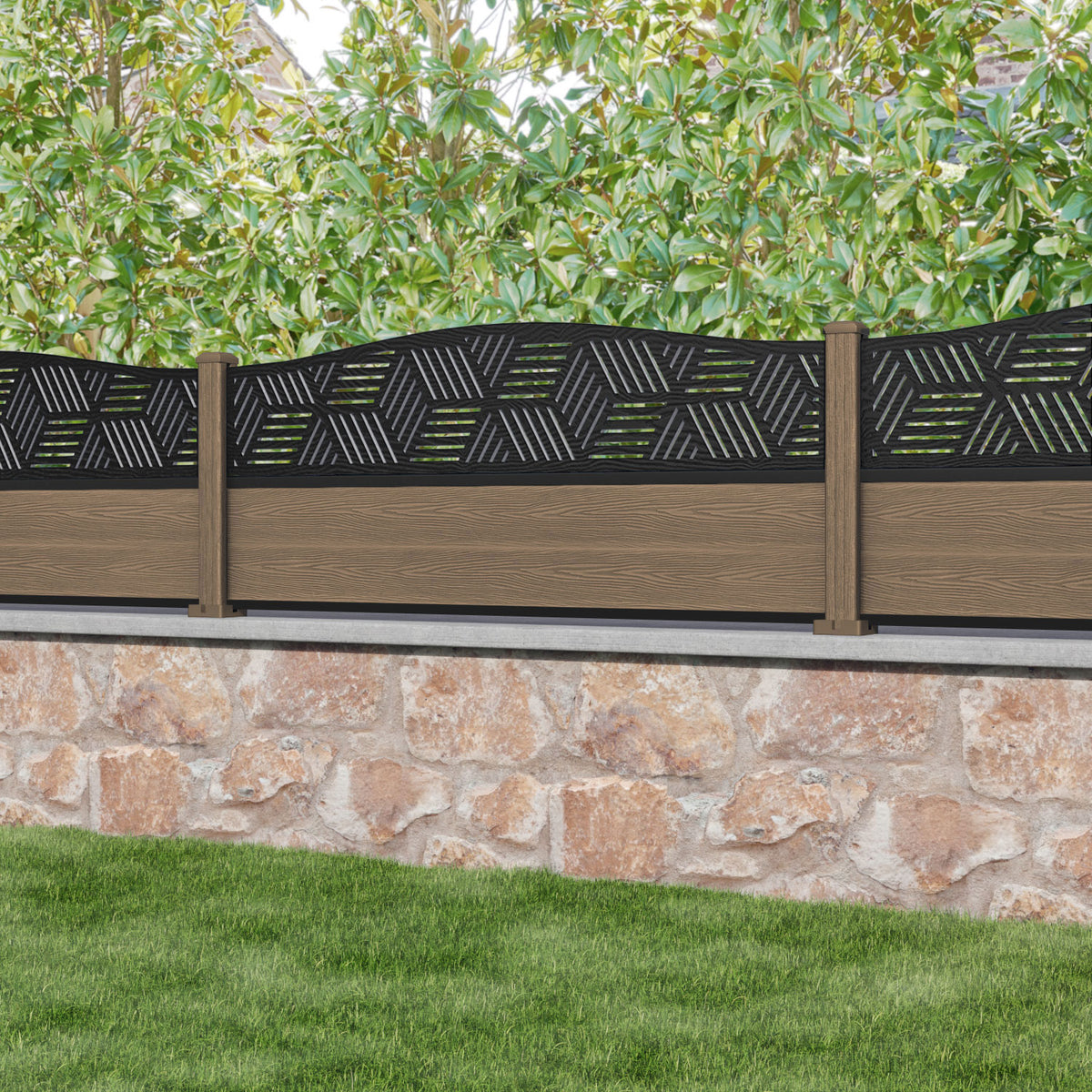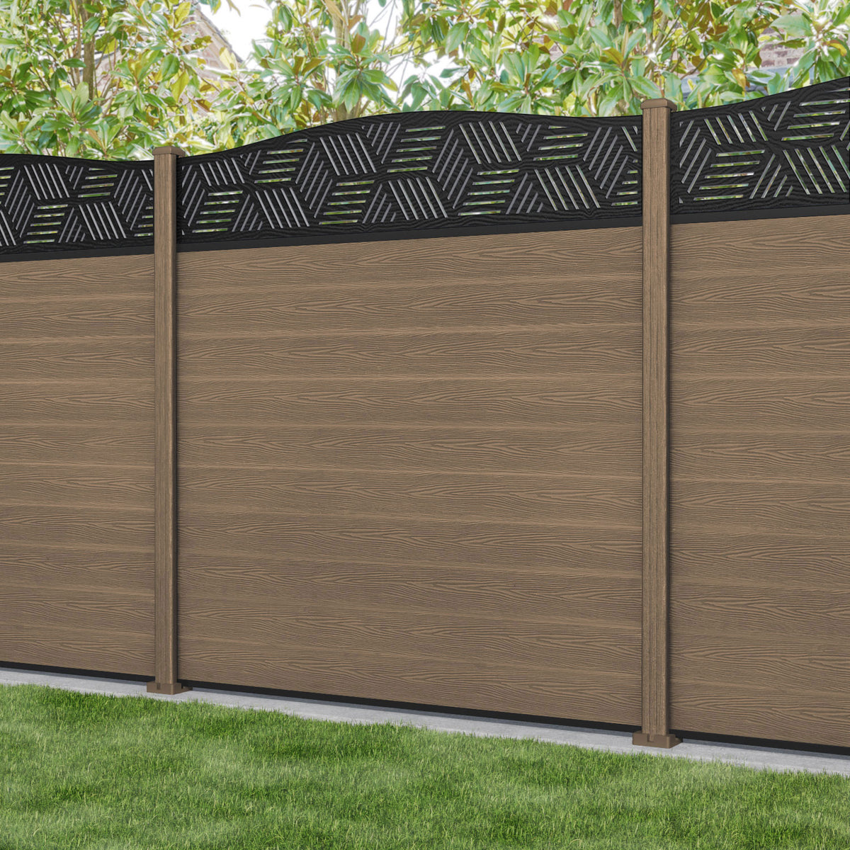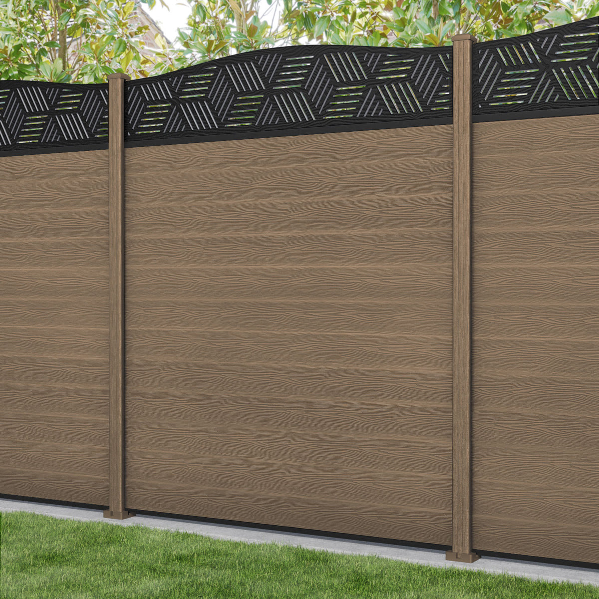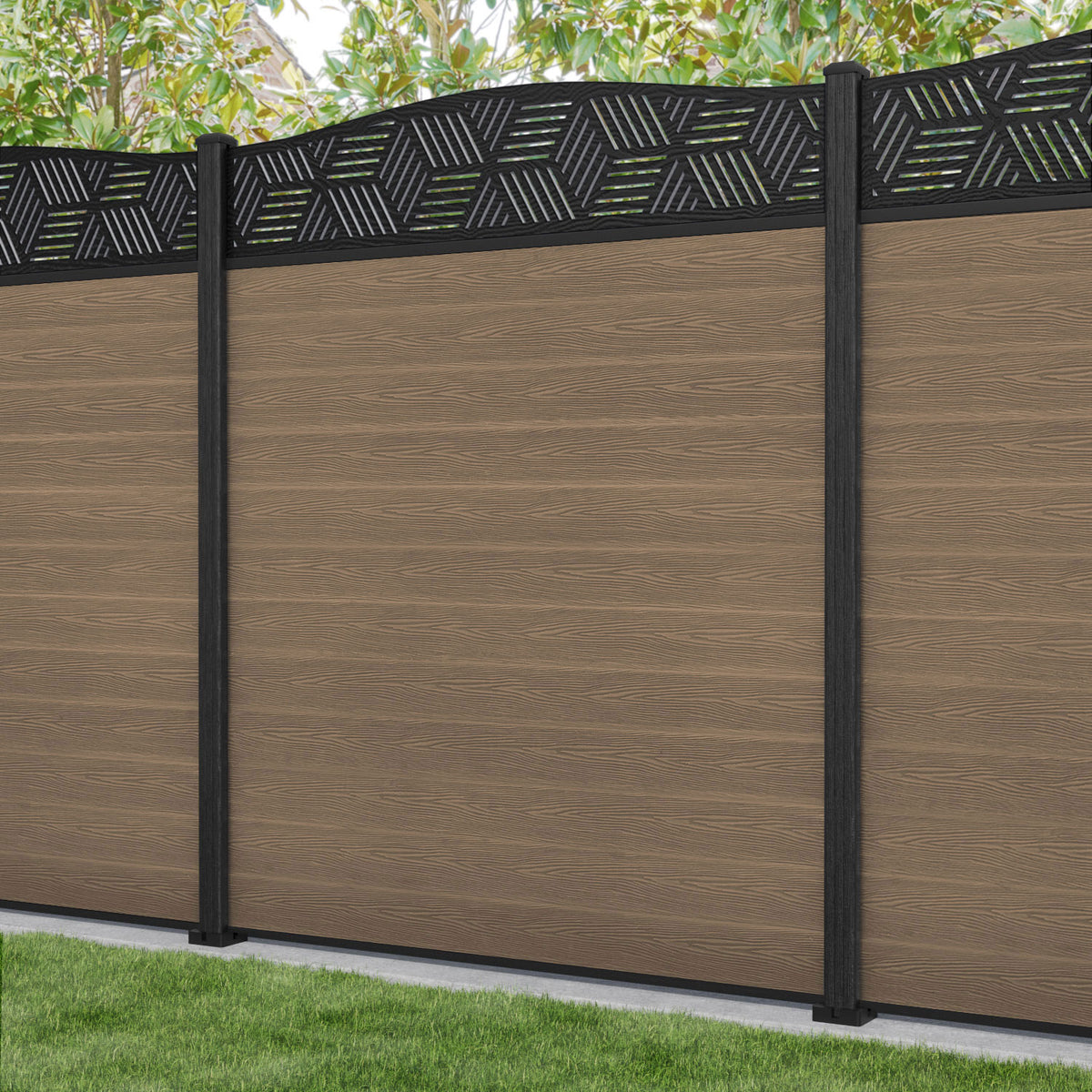 Classic Cubed Curved Top Fence Panel Teak - with our composite posts