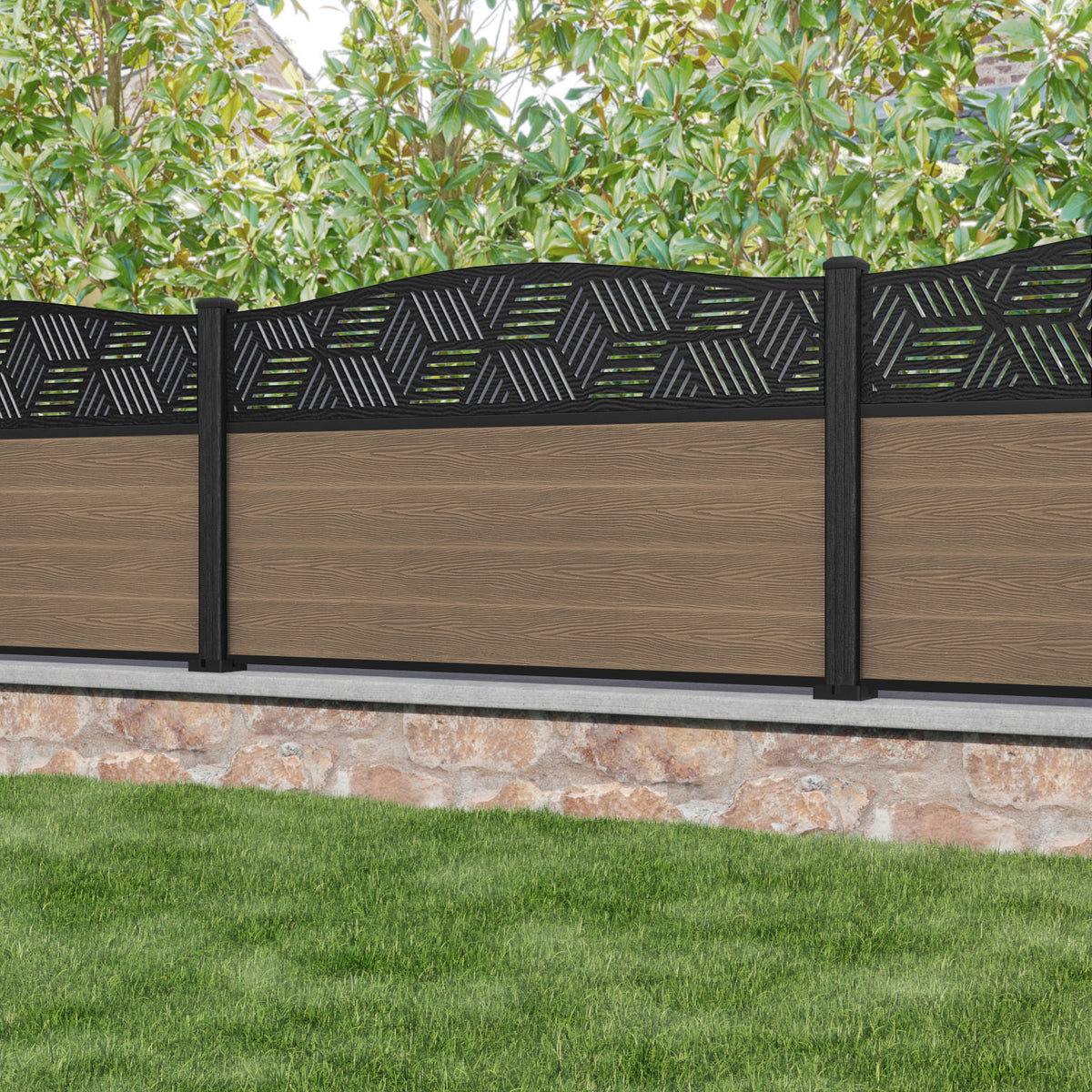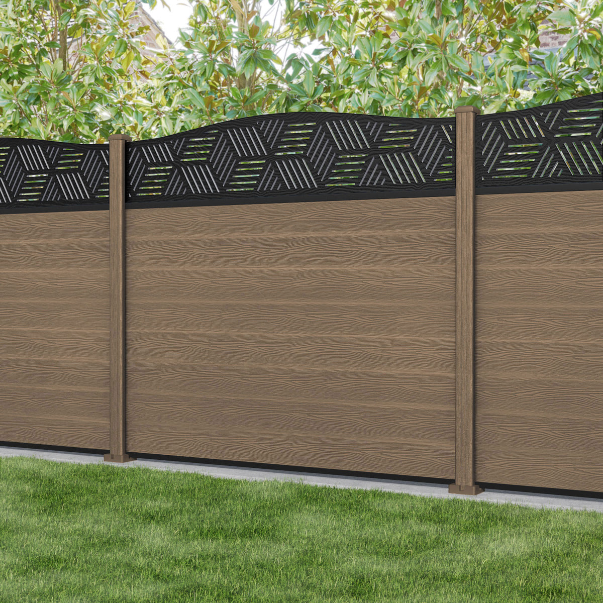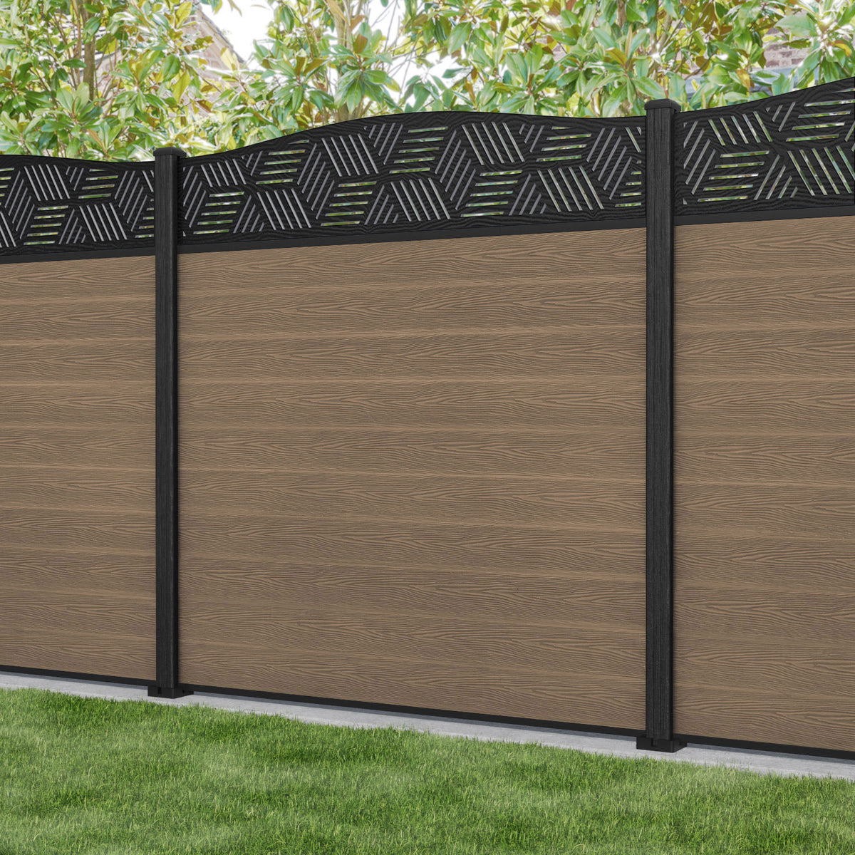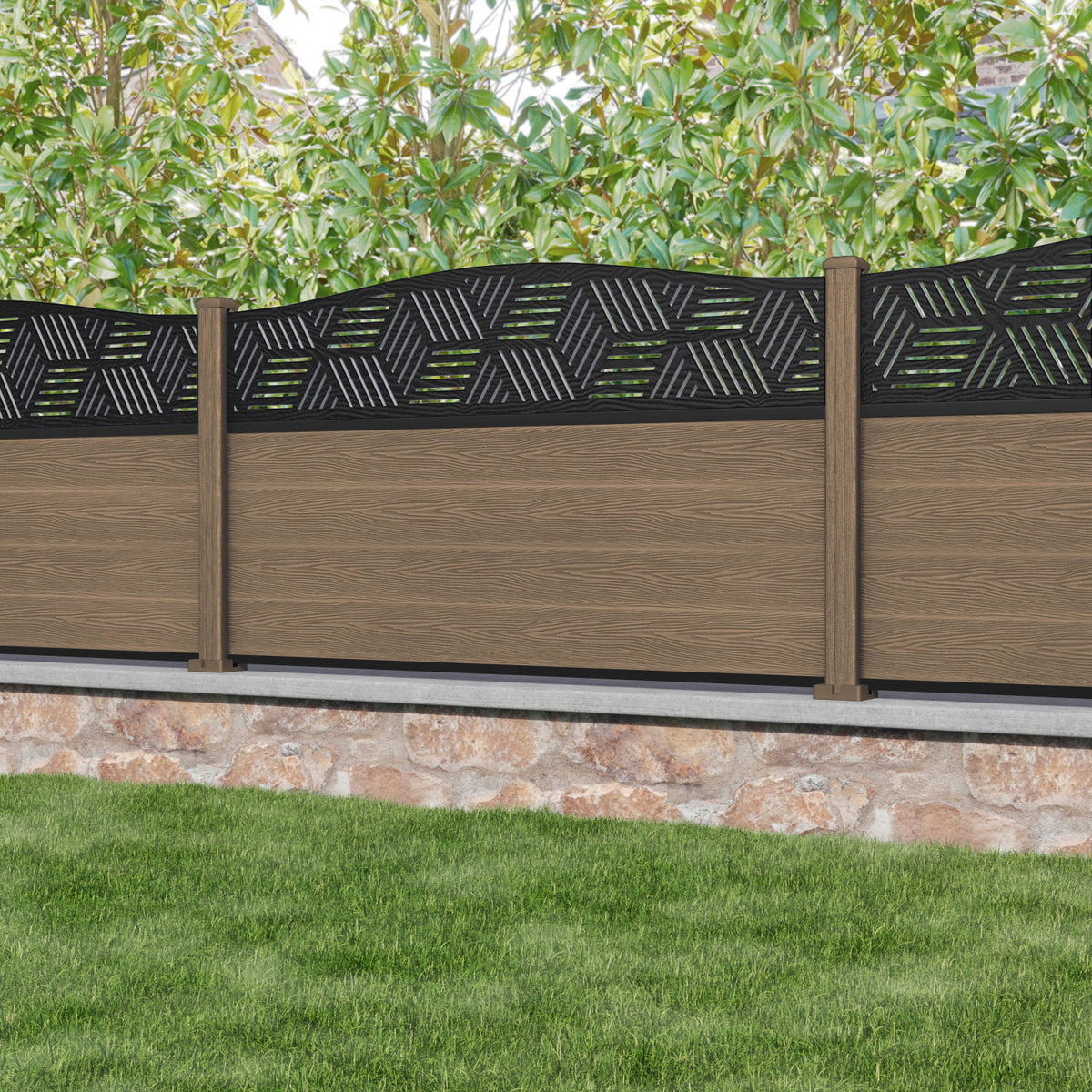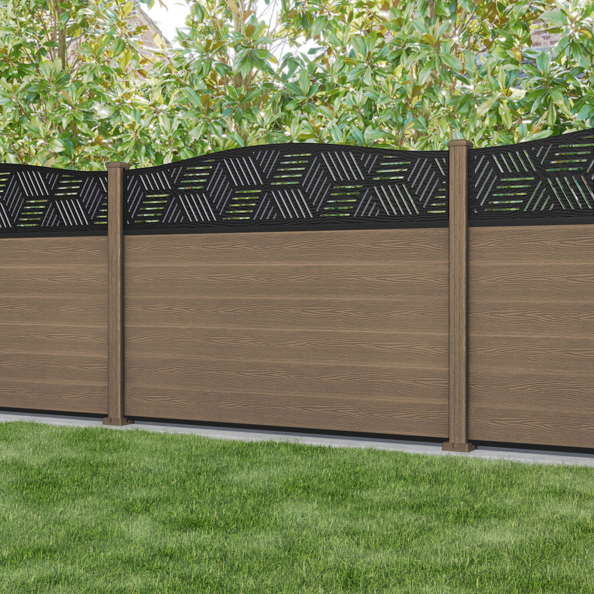 Classic Cubed Curved Top Fence Panel Teak - with our composite posts