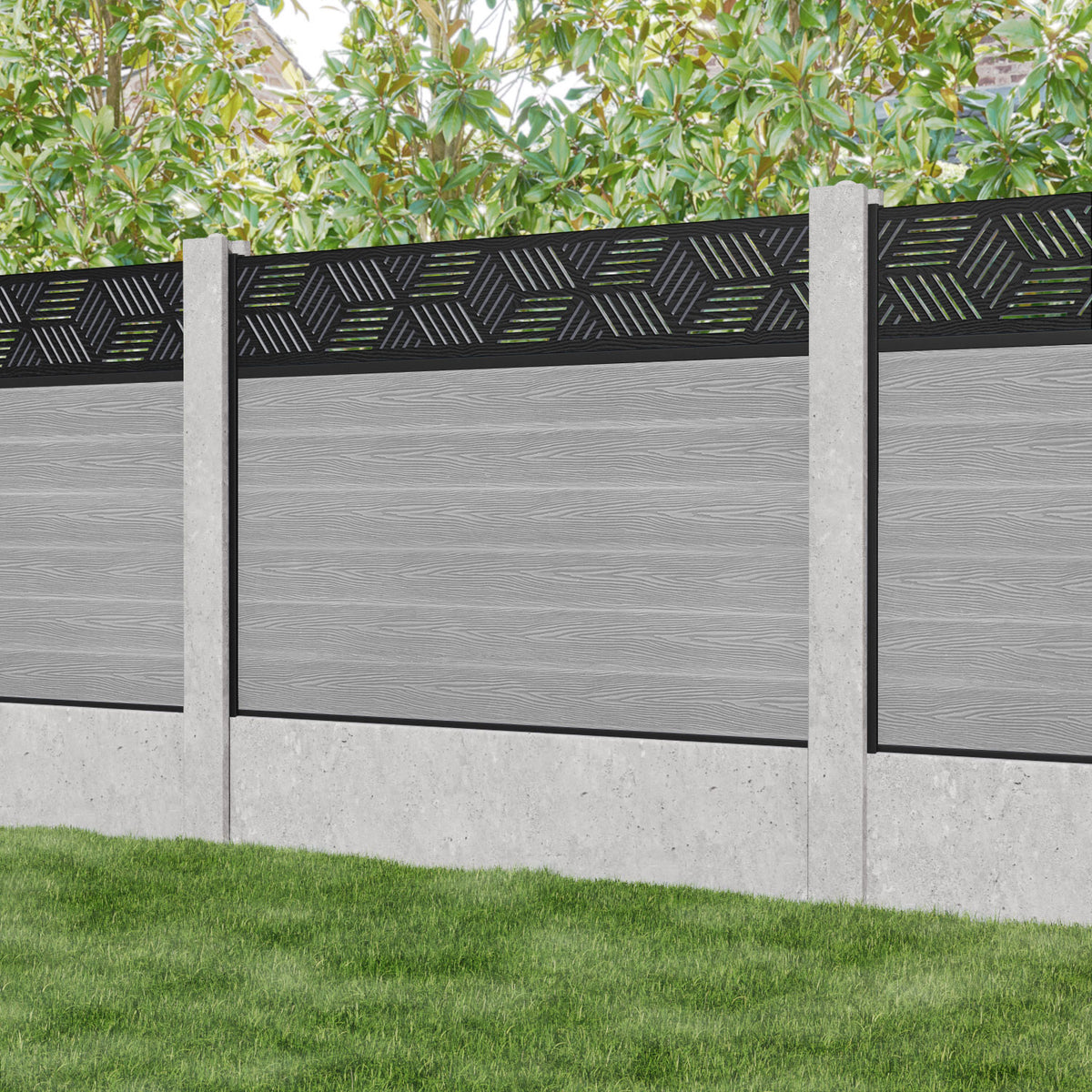 Classic Cubed Fence Panel Light Grey - for existing concrete posts