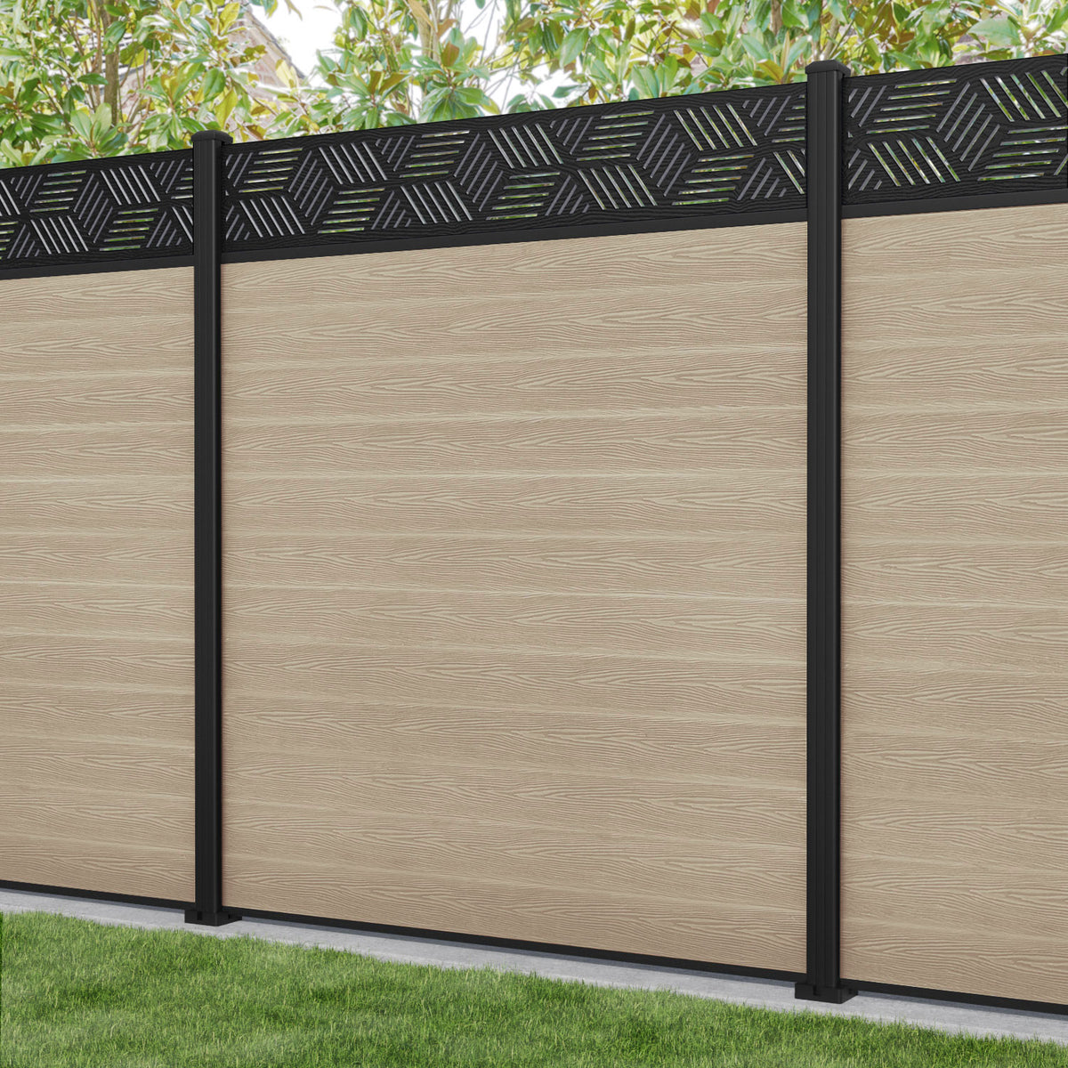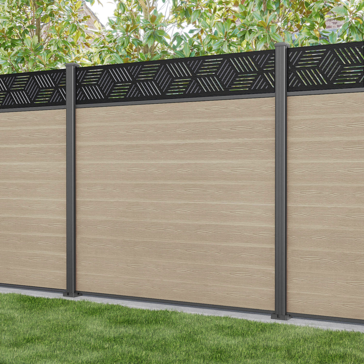 Classic Cubed Fence Panel Light Oak - with our aluminium posts