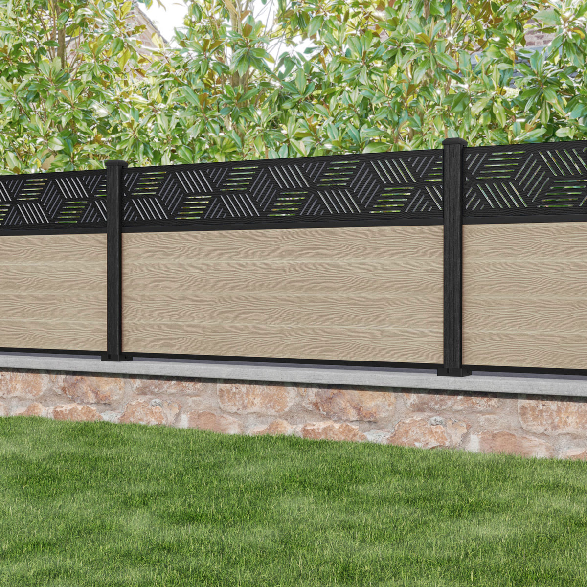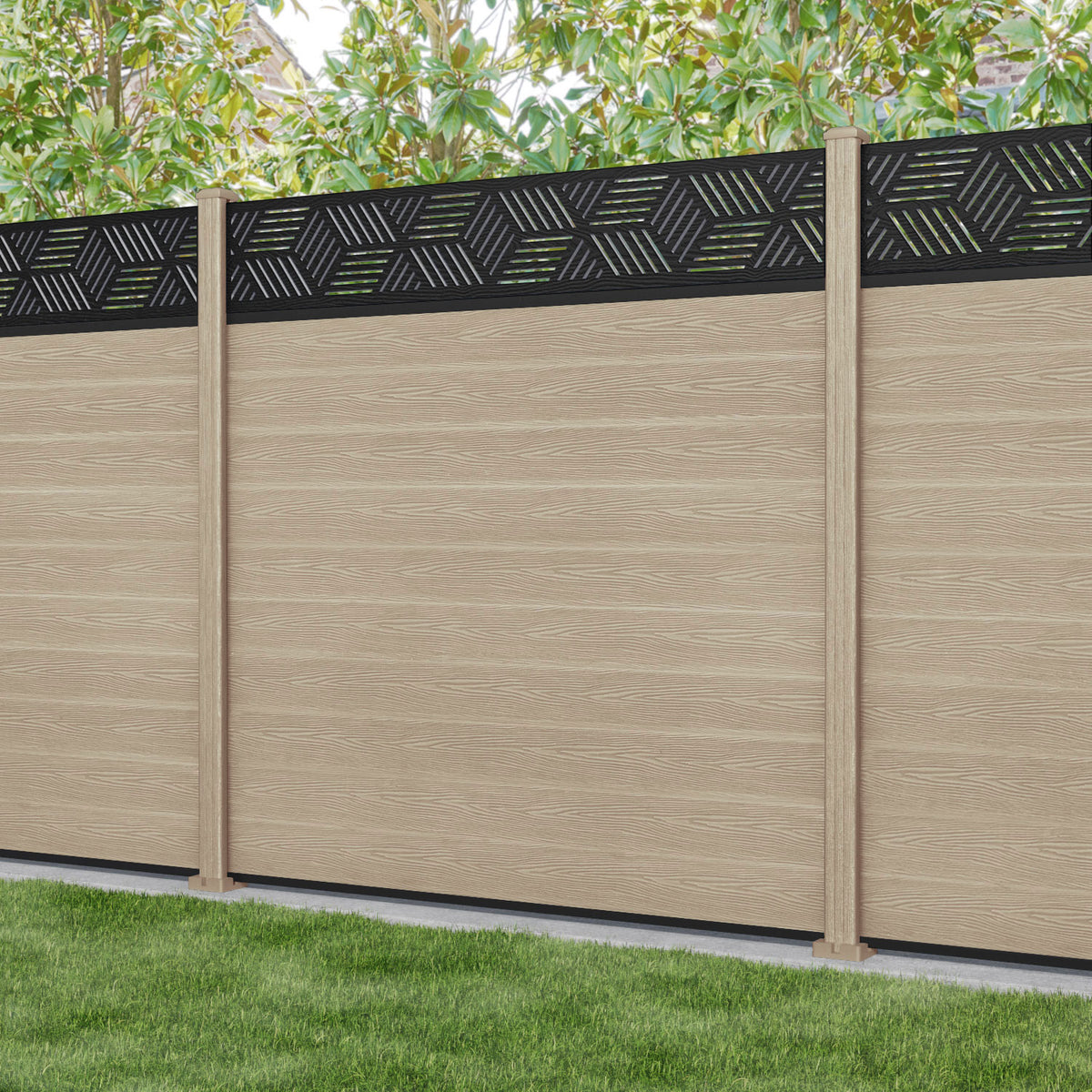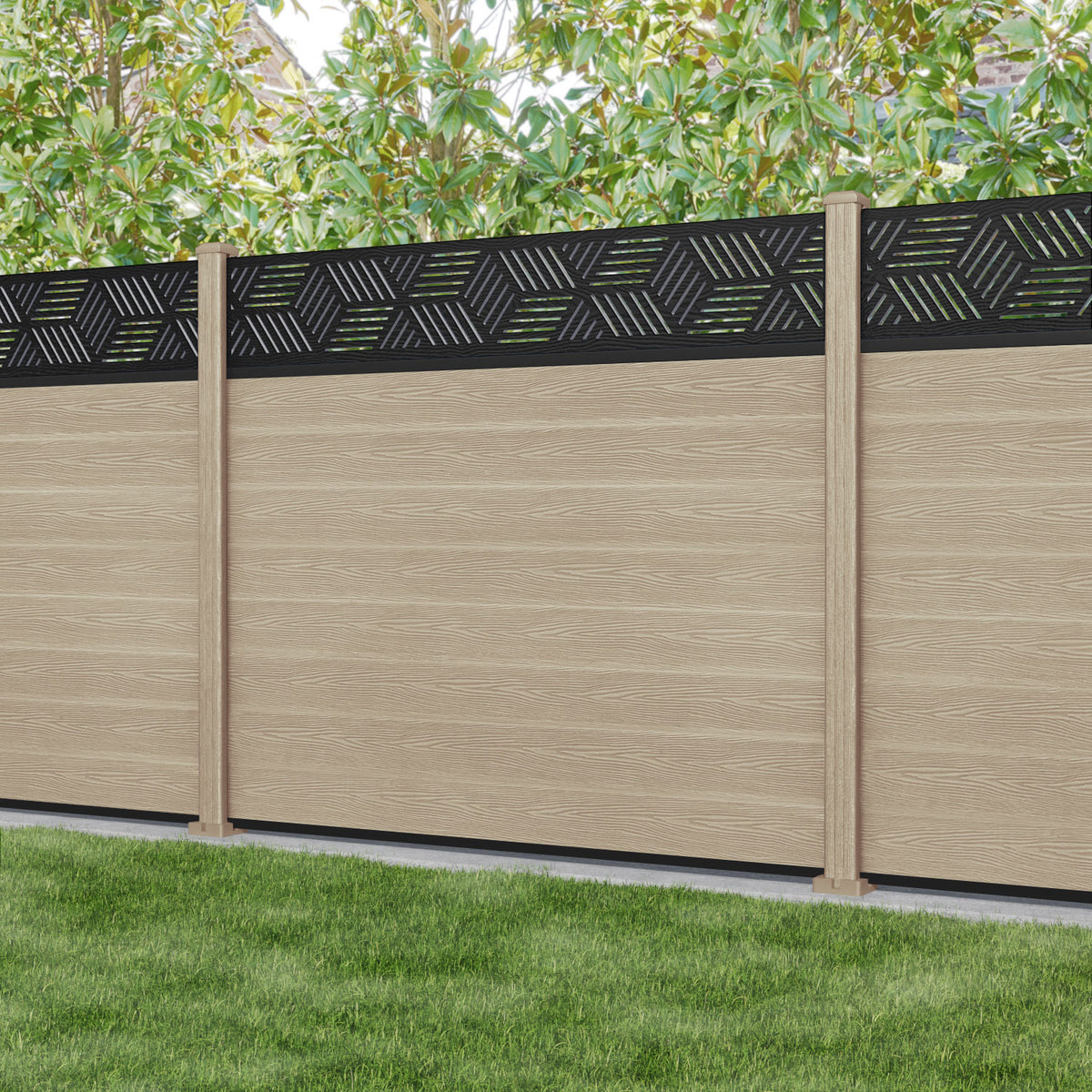 Classic Cubed Fence Panel Light Oak - with our composite posts