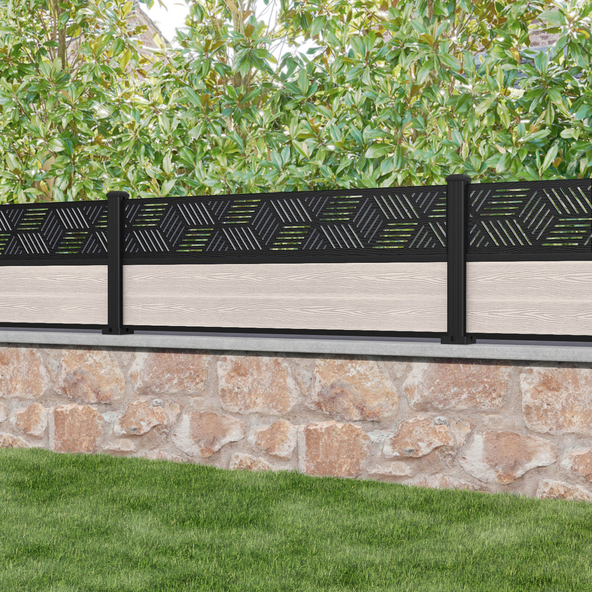 Classic Cubed Fence Panel Mid Stone - with our aluminium posts