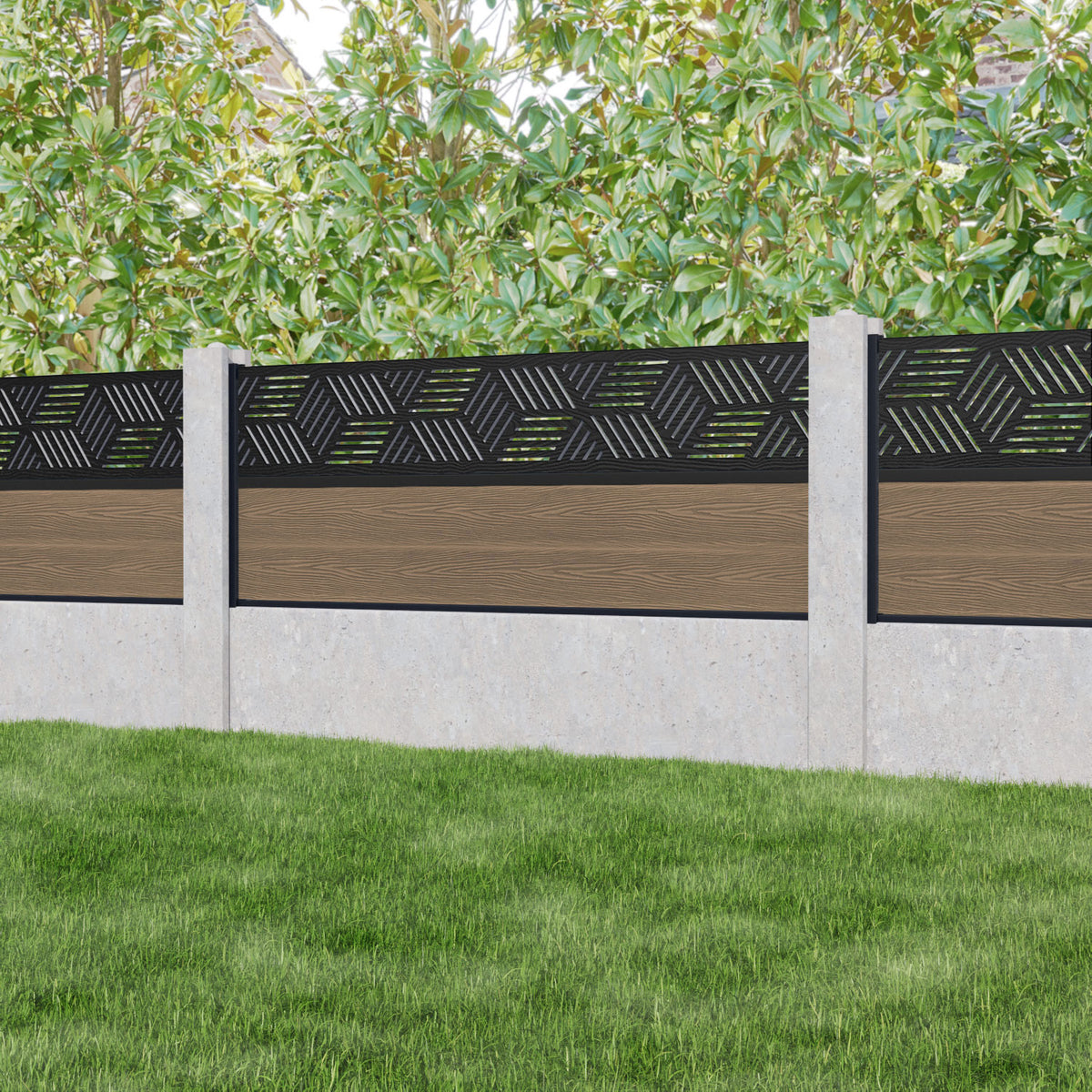 Classic Cubed Fence Panel Teak - for existing concrete posts