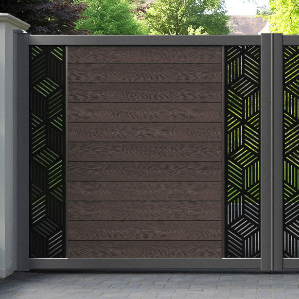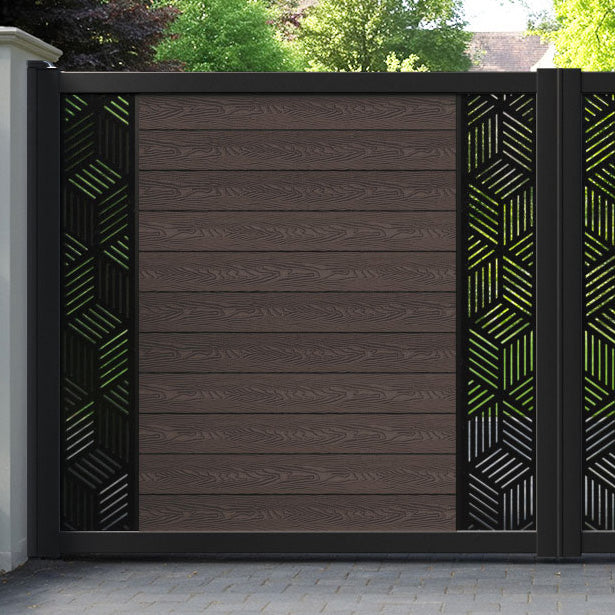 Classic Cubed Straight Top Driveway Gate Mid Brown - Middle & End Screen