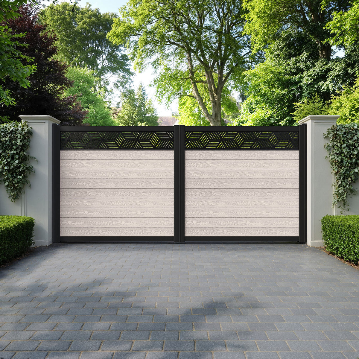 Classic Cubed Straight Top Driveway Gate Mid Stone - Top Screen
