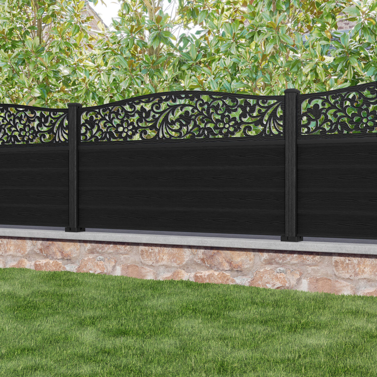 Classic Eden Curved Top Fence Panel Black - with our composite posts
