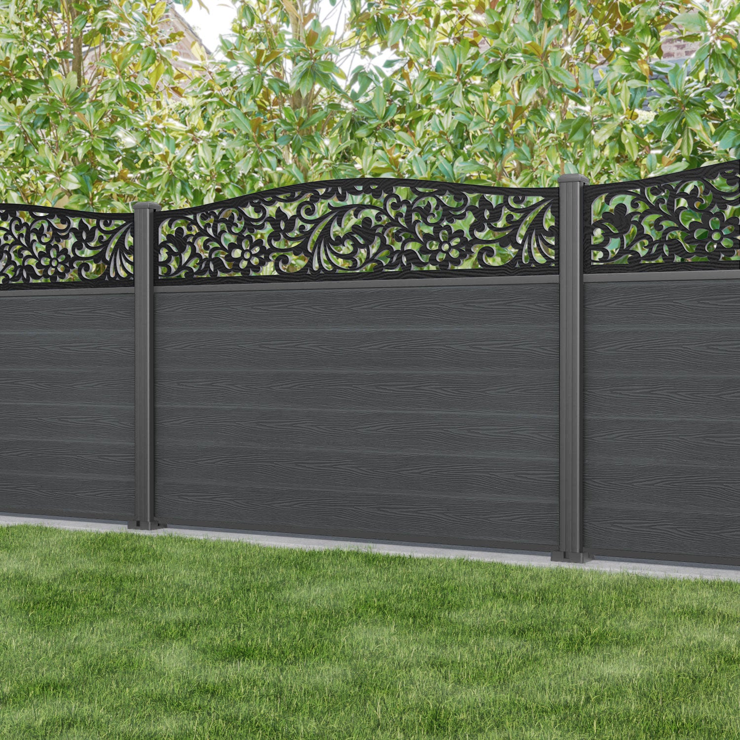 Classic Eden Curved Top Fence Panel Dark Grey - with our aluminium posts