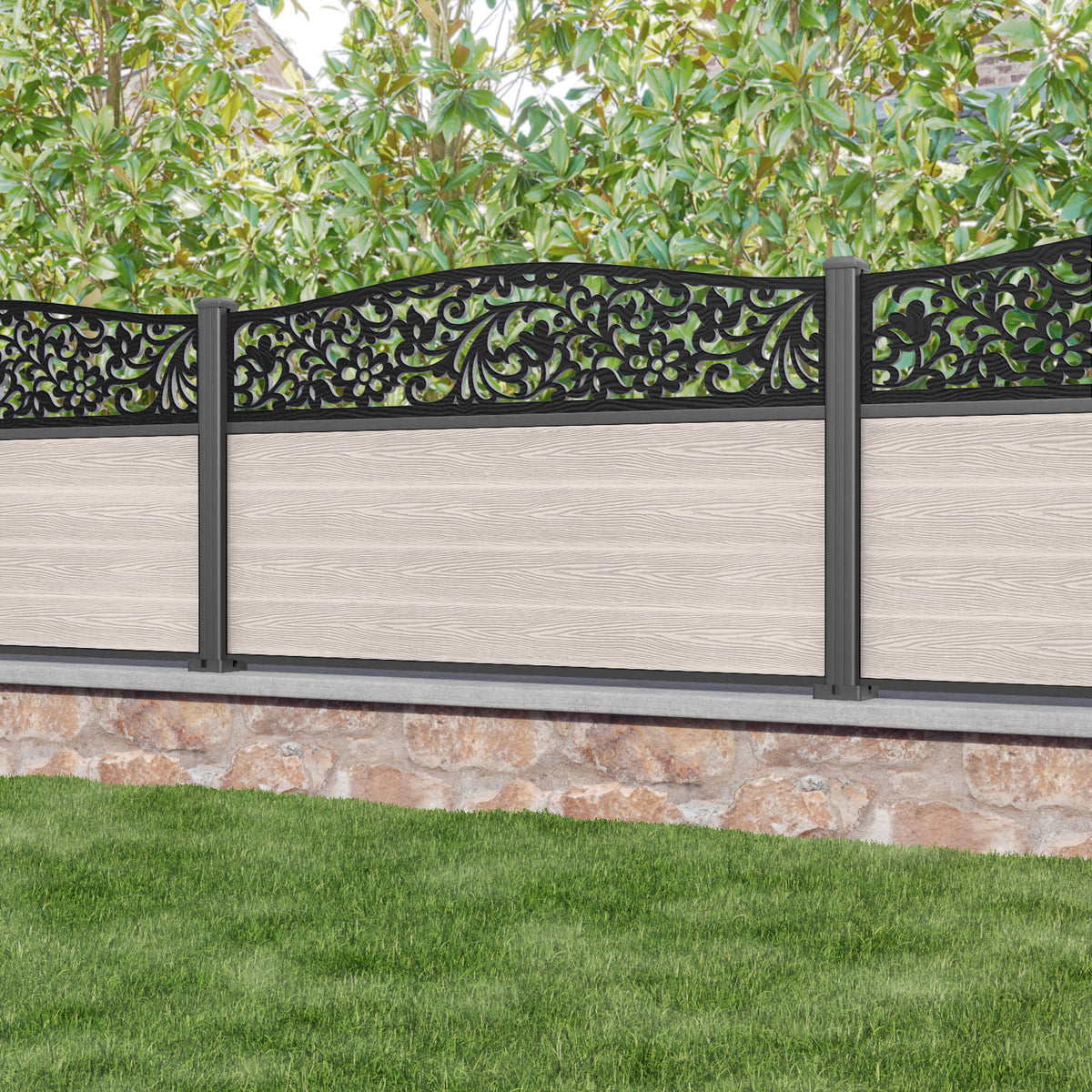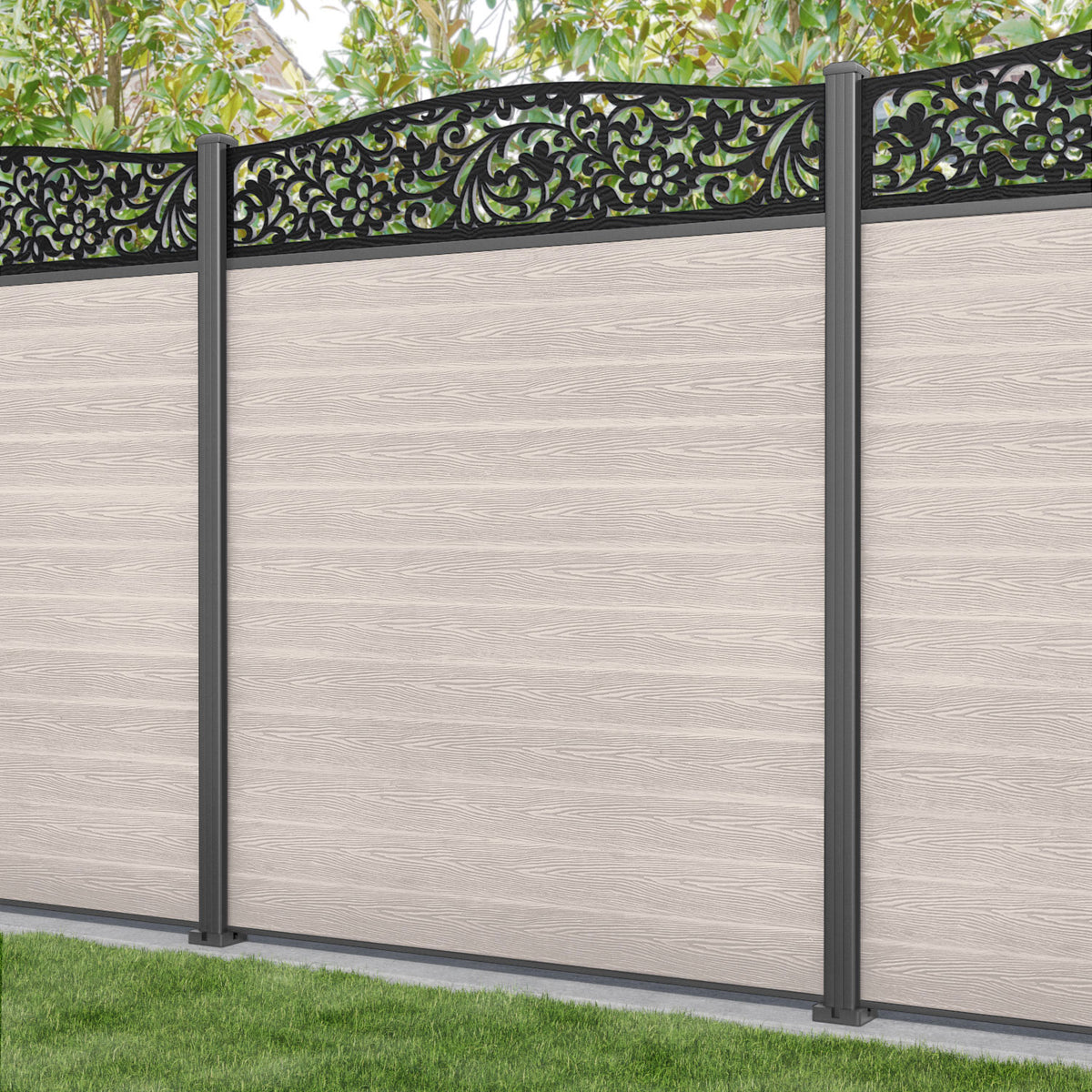 Classic Eden Curved Top Fence Panel Mid Stone - with our aluminium posts