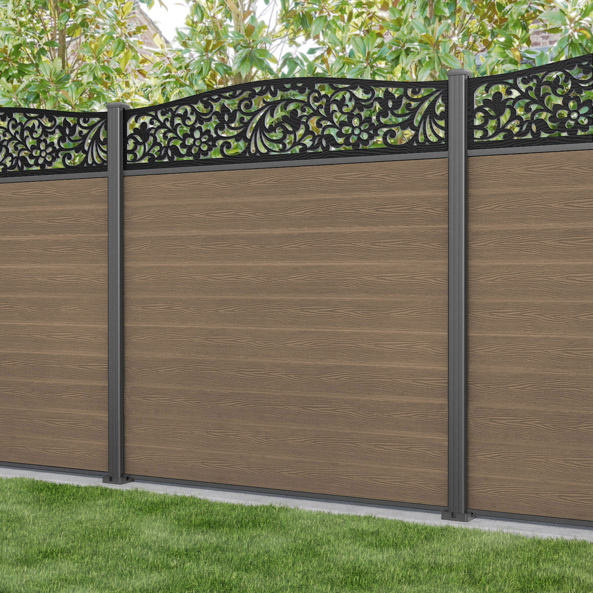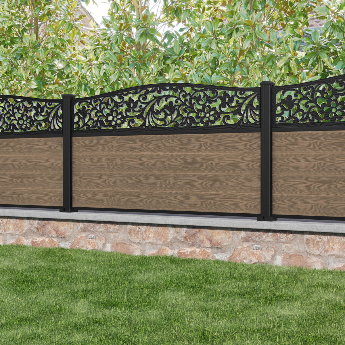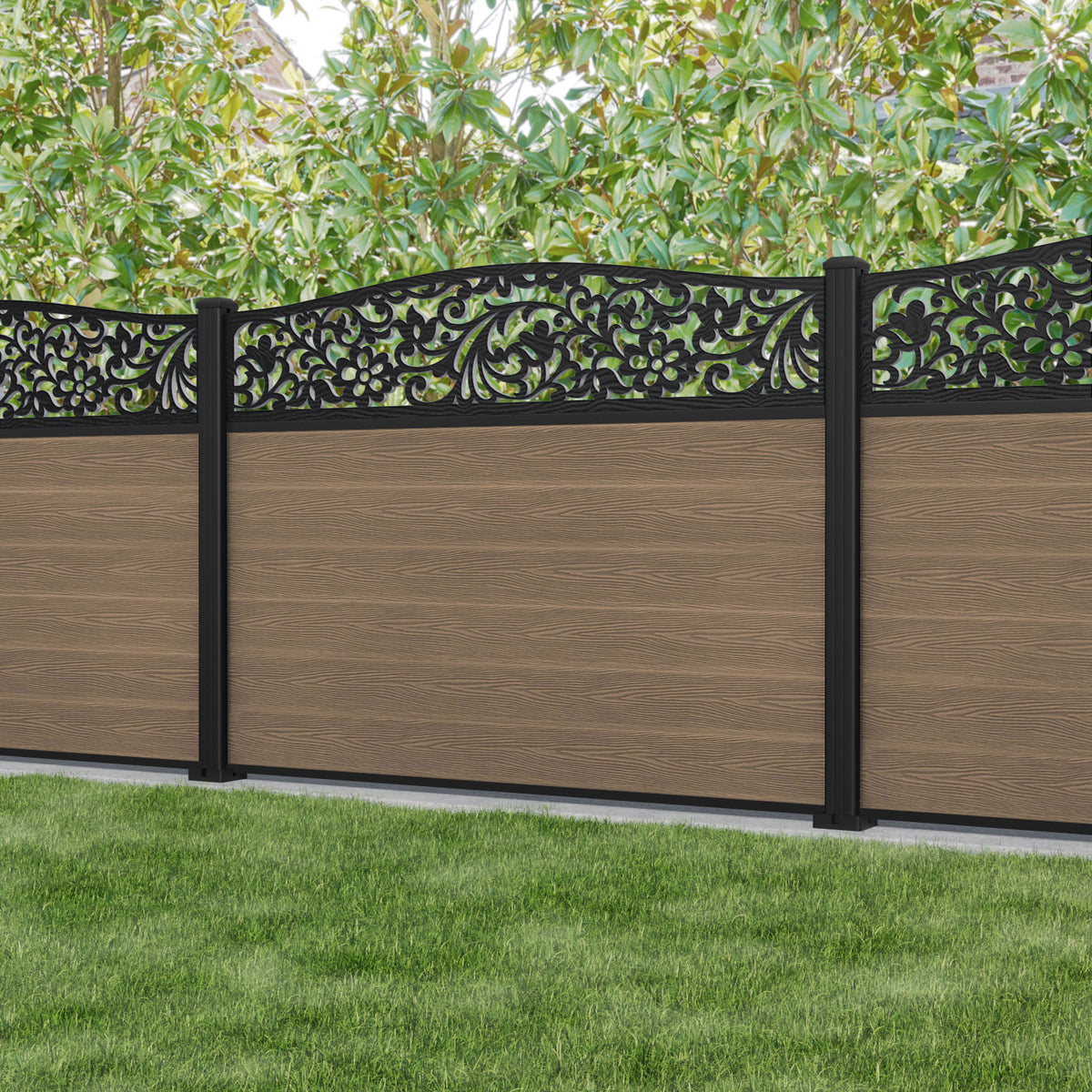 Classic Eden Curved Top Fence Panel Teak - with our aluminium posts