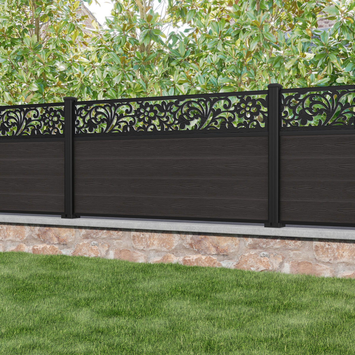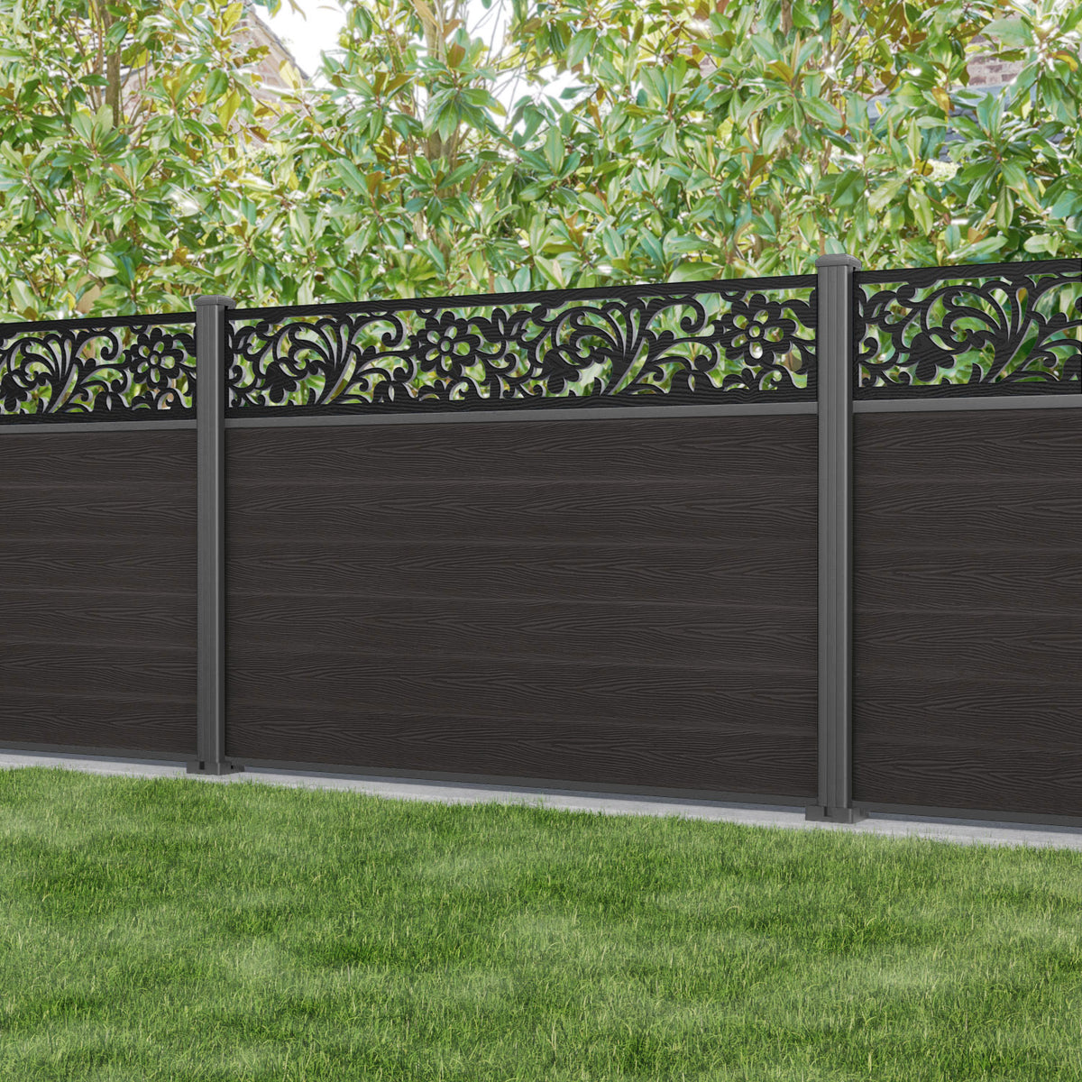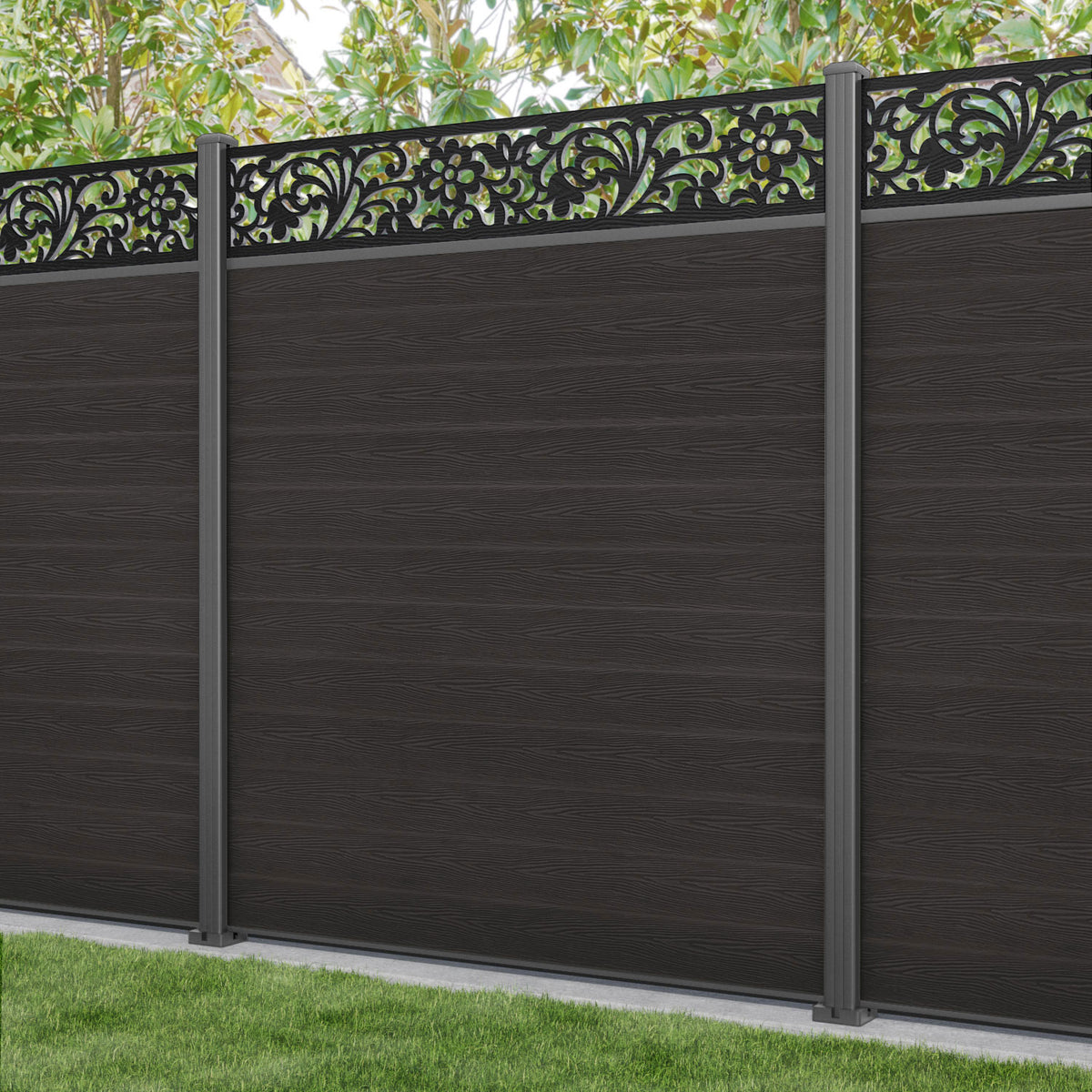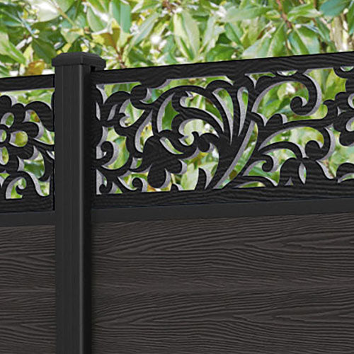 Classic Eden Fence Panel - Dark Oak - with our aluminium posts