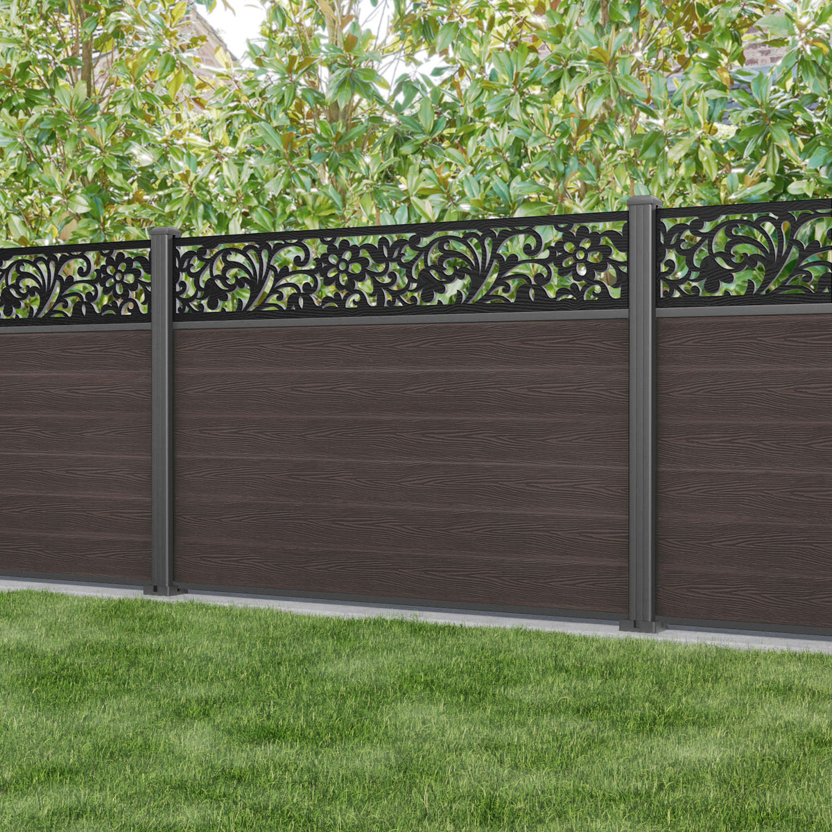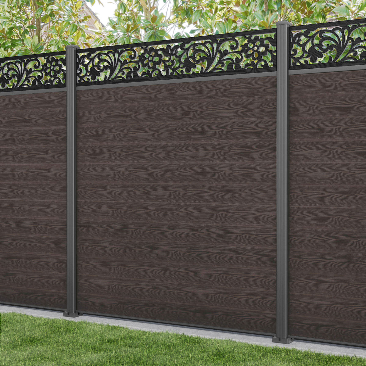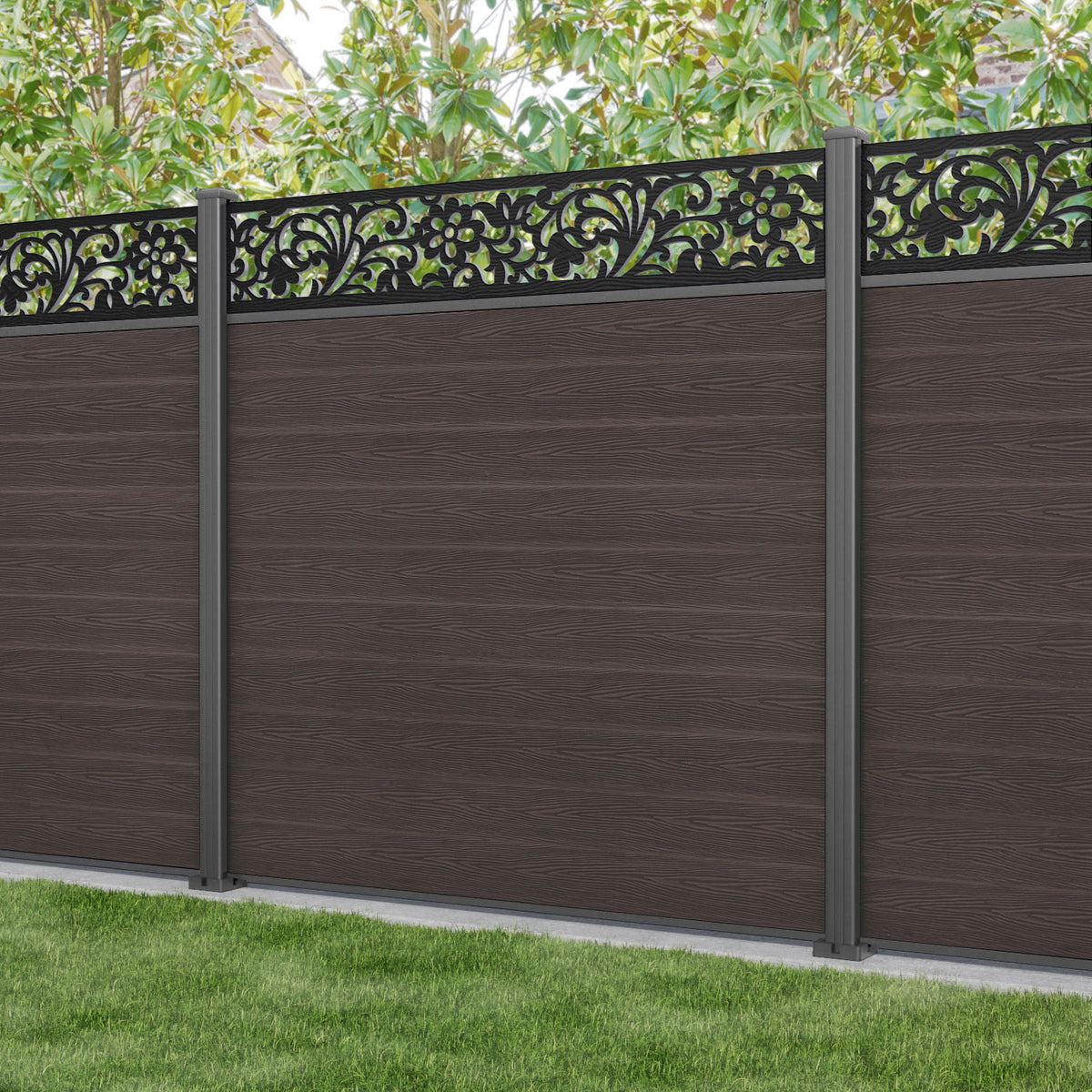 Classic Eden Fence Panel Mid Brown - with our aluminium posts