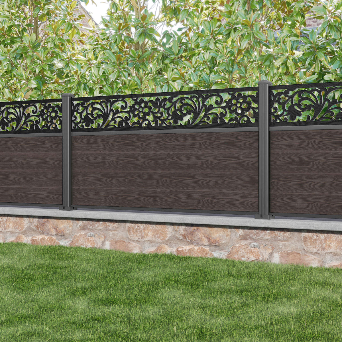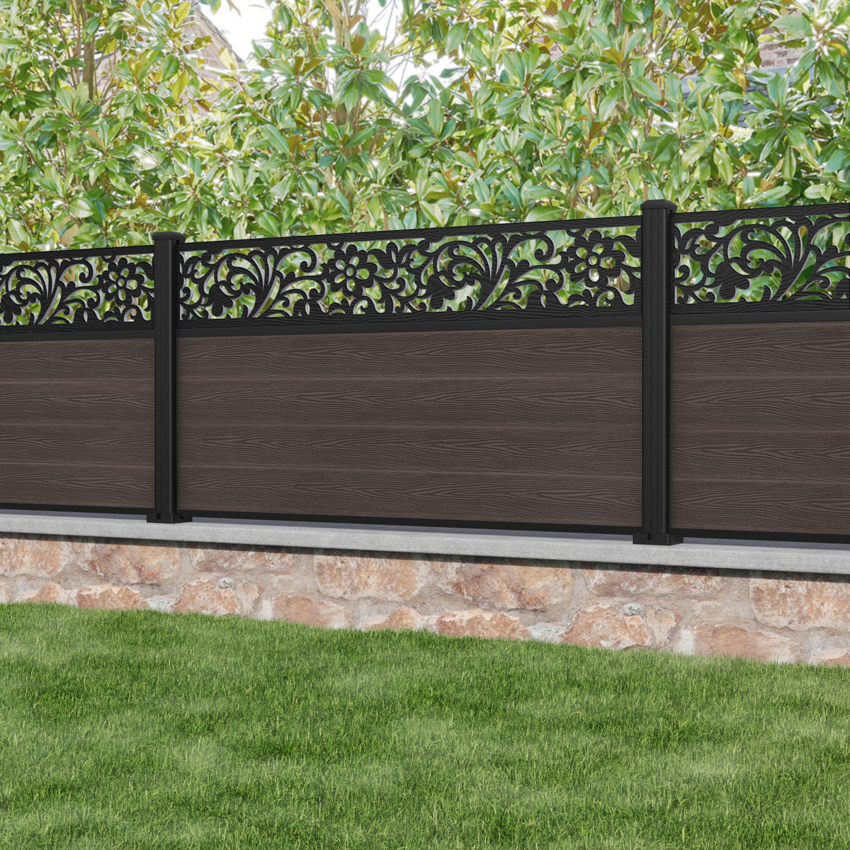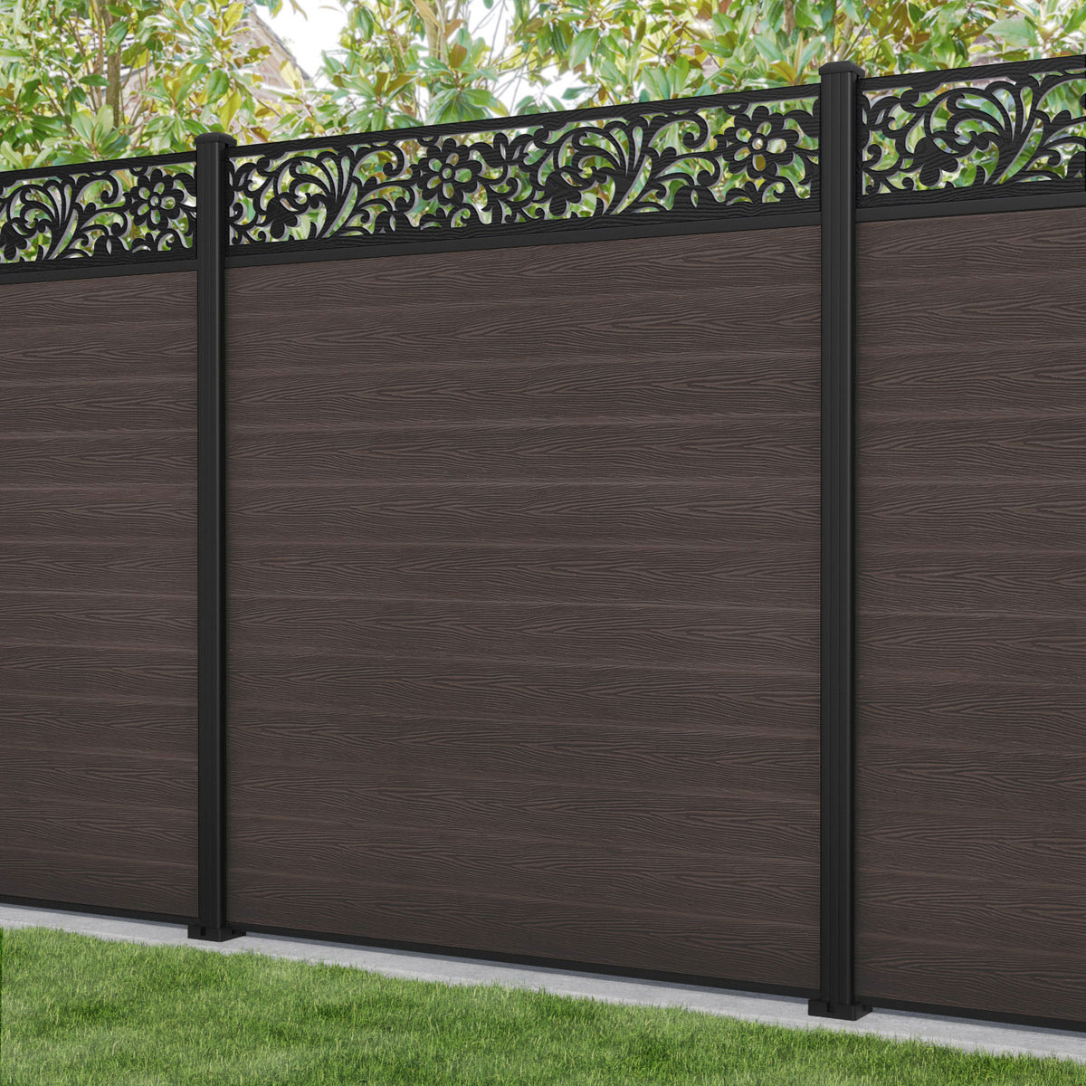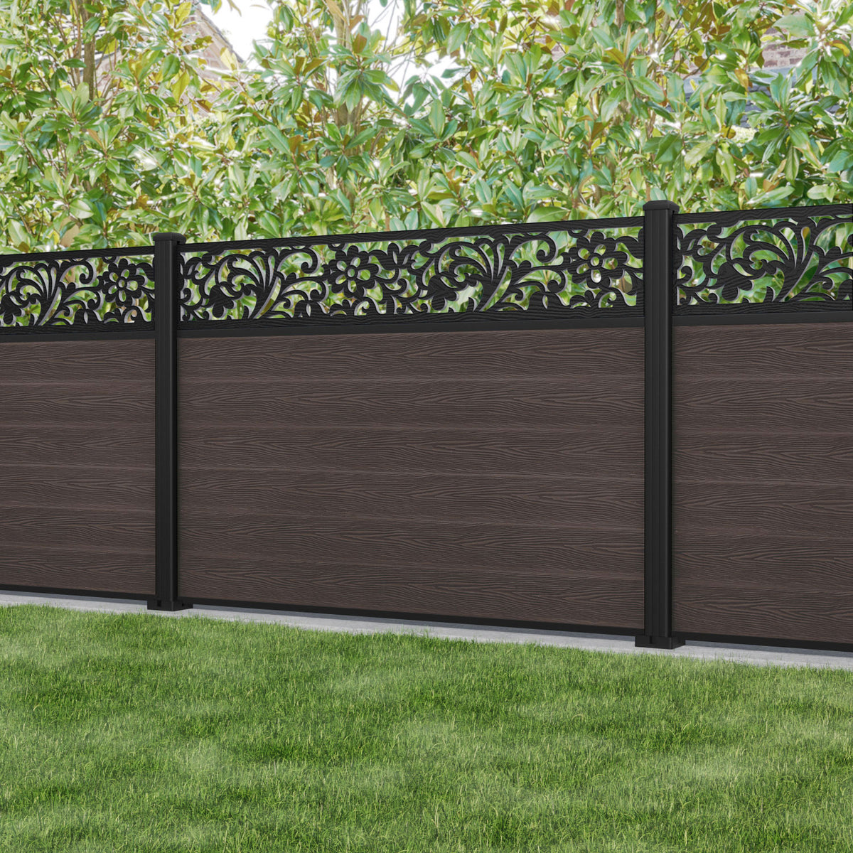 Classic Eden Fence Panel Mid Brown - with our aluminium posts