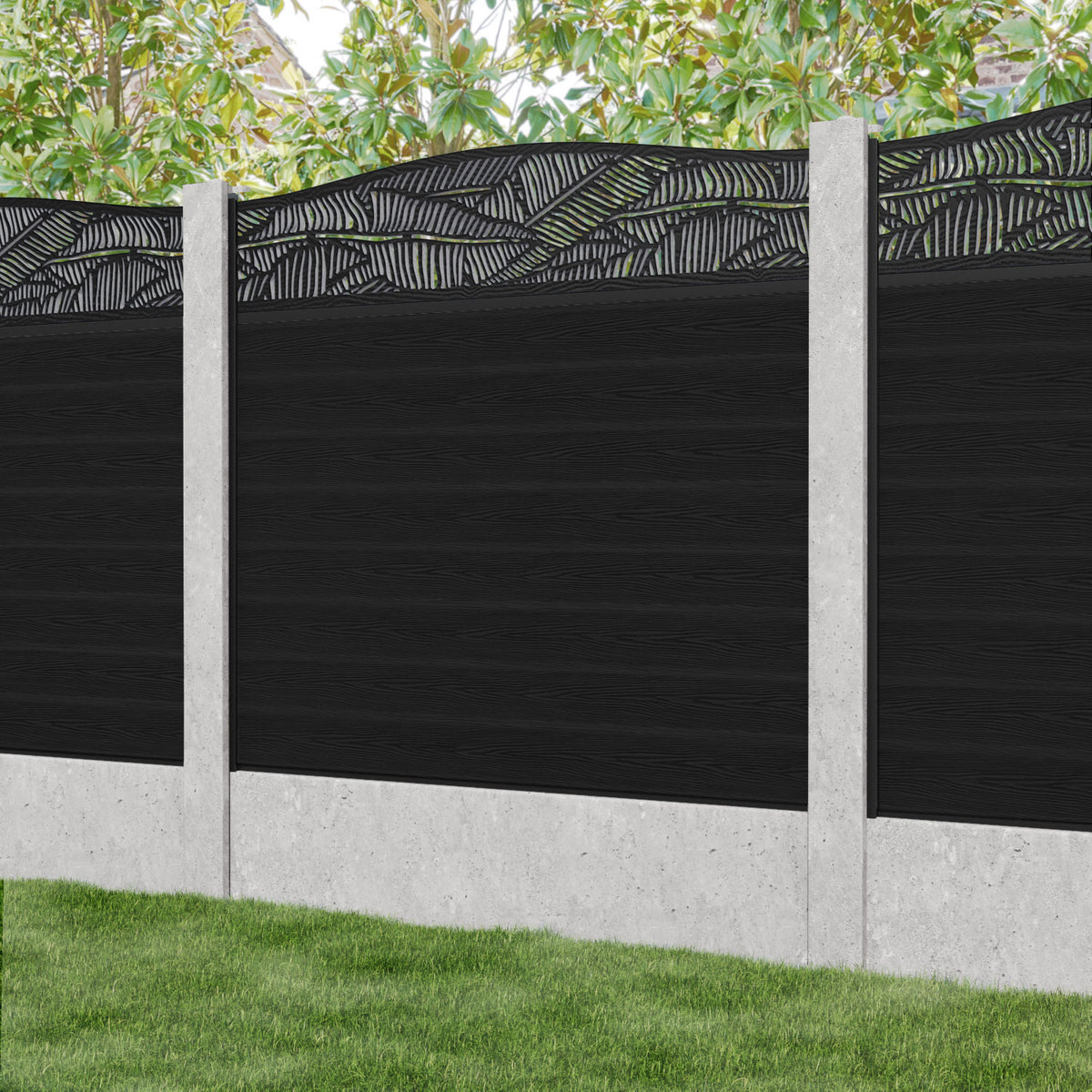 Classic Feather Curved Top Fence Panel Black - for existing concrete posts