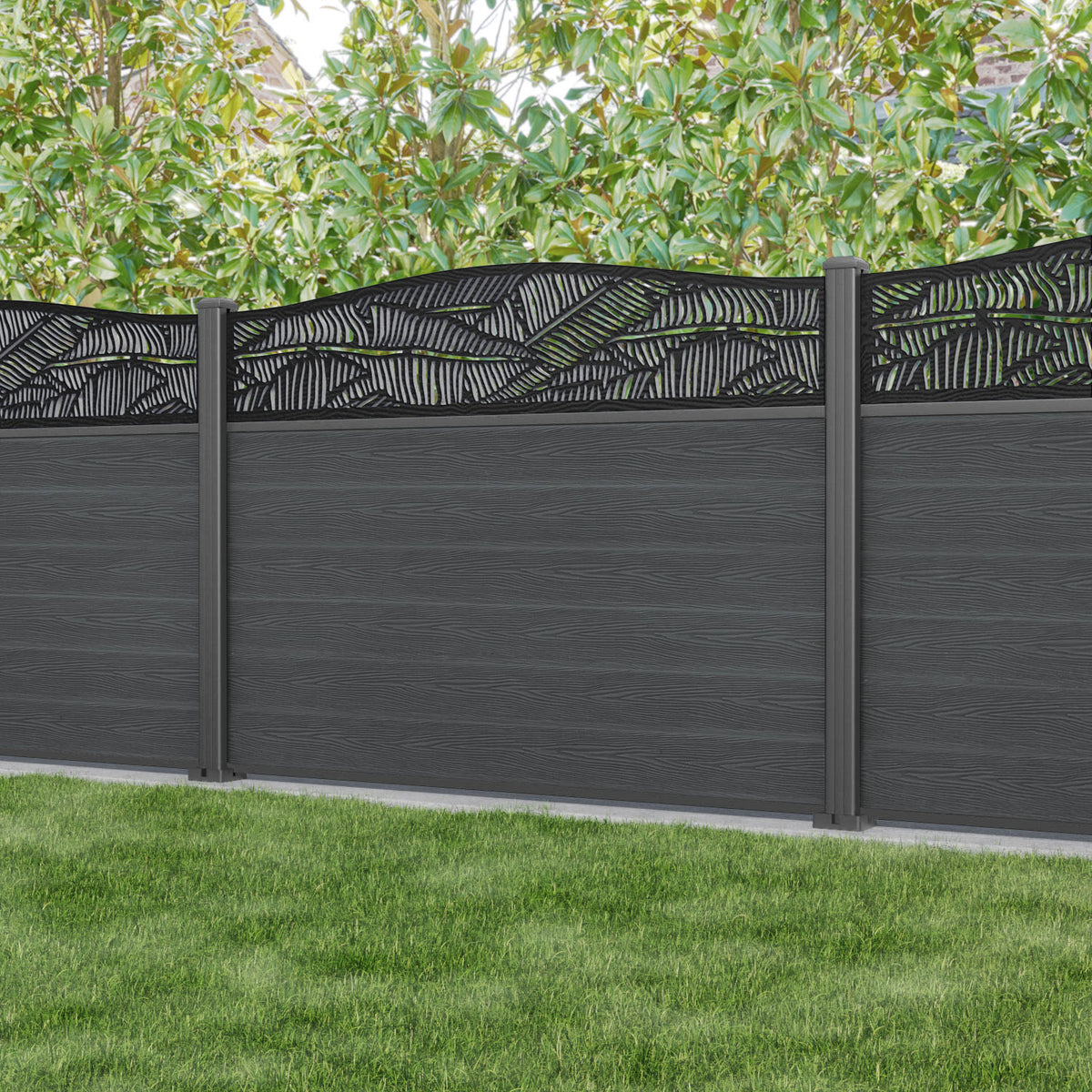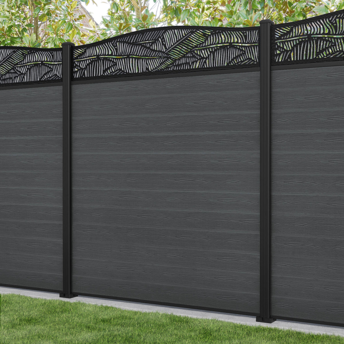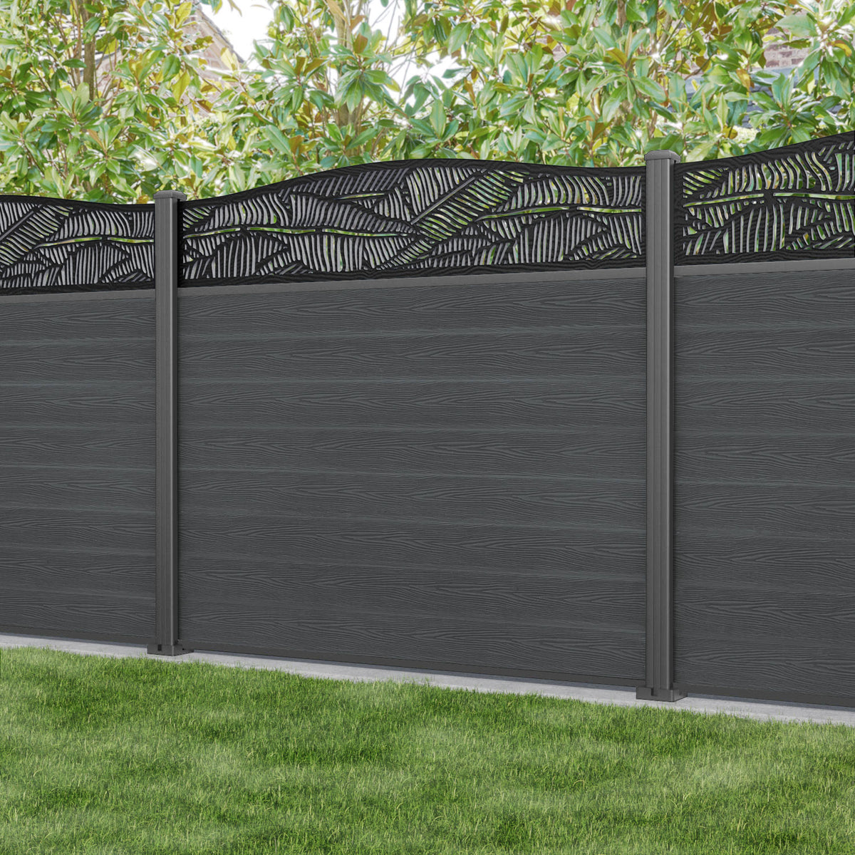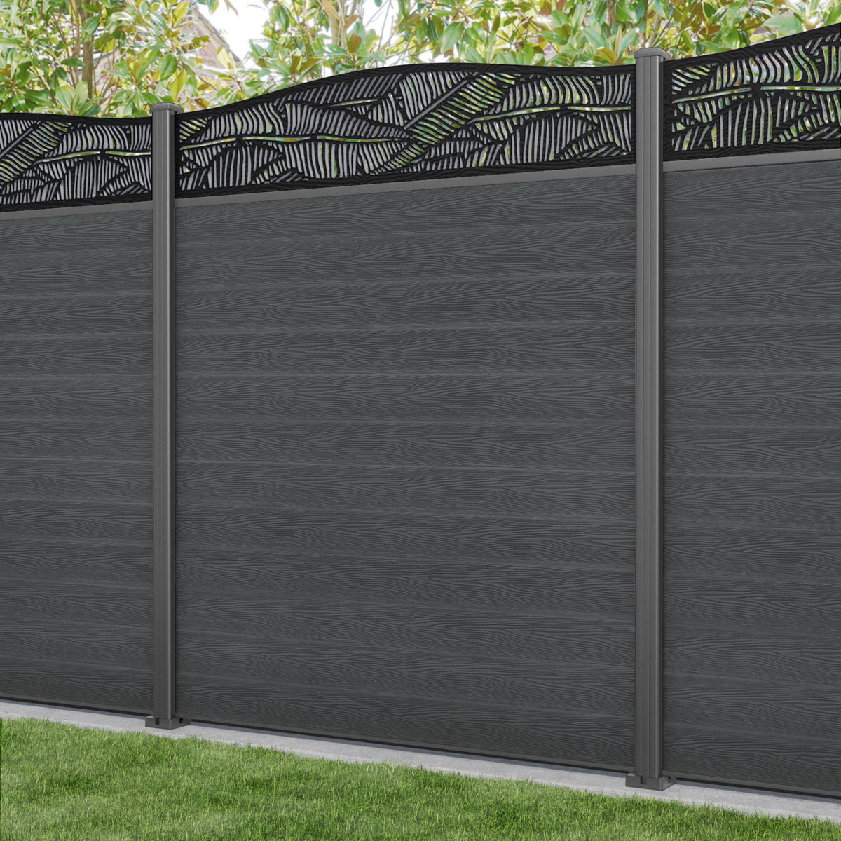 Classic Feather Curved Top Fence Panel Dark Grey - with our aluminium posts