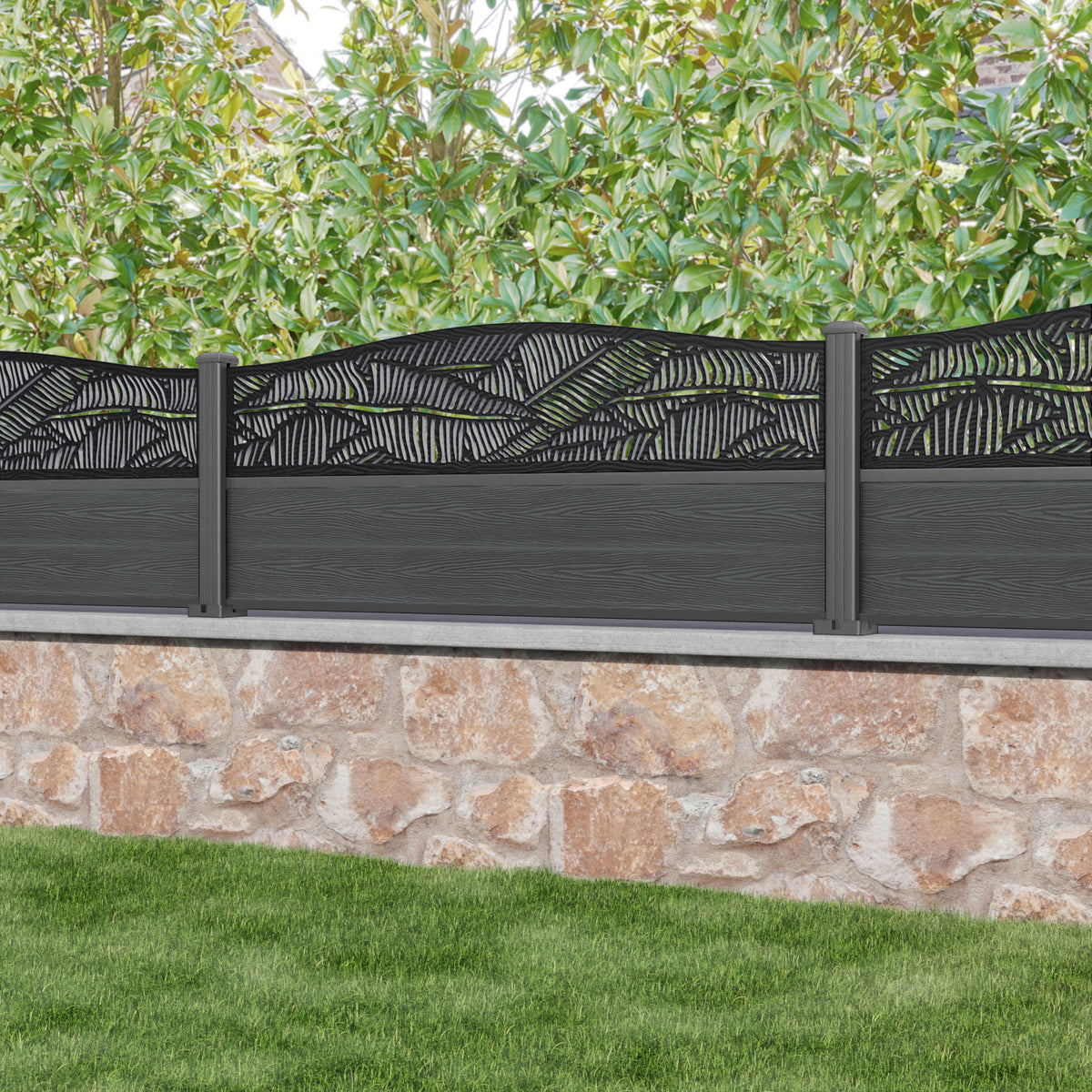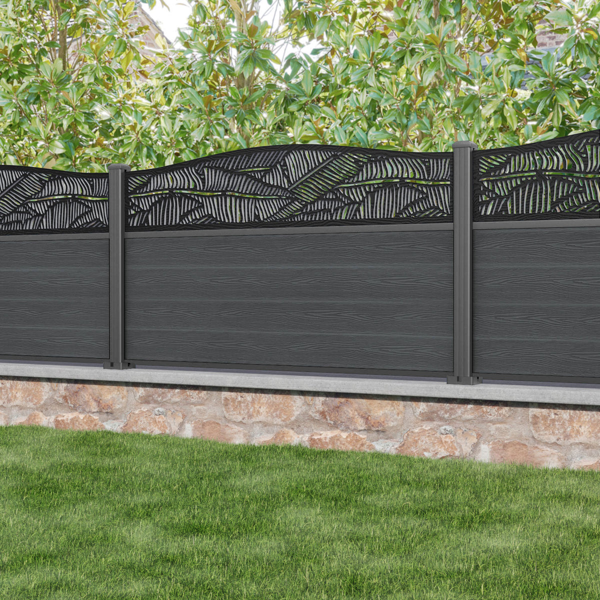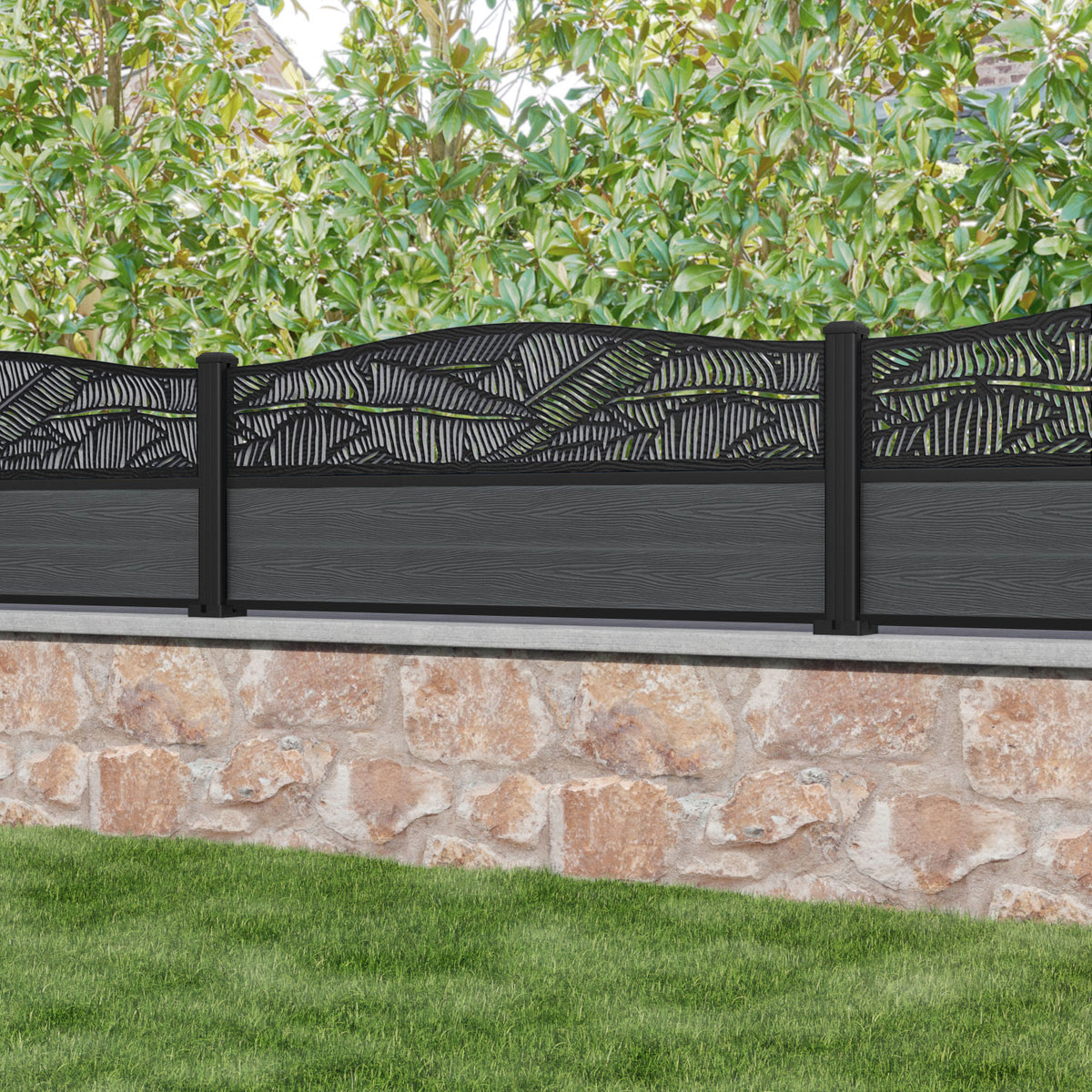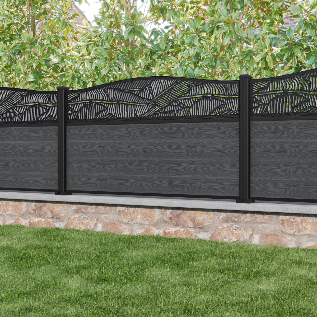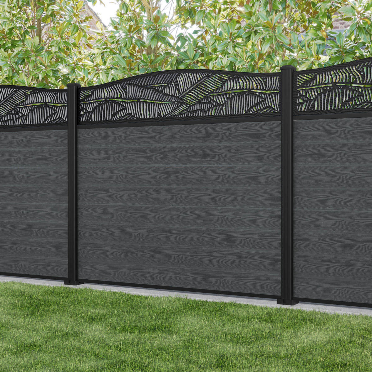 Classic Feather Curved Top Fence Panel Dark Grey - with our aluminium posts