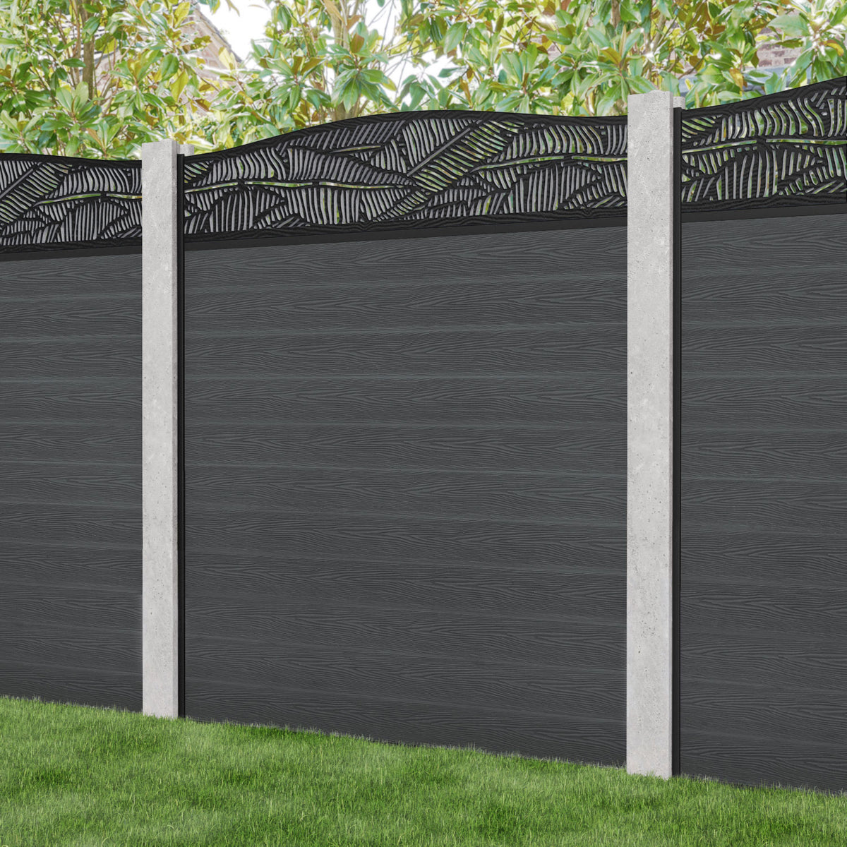 Classic Feather Curved Top Fence Panel Dark Grey - for existing concrete posts