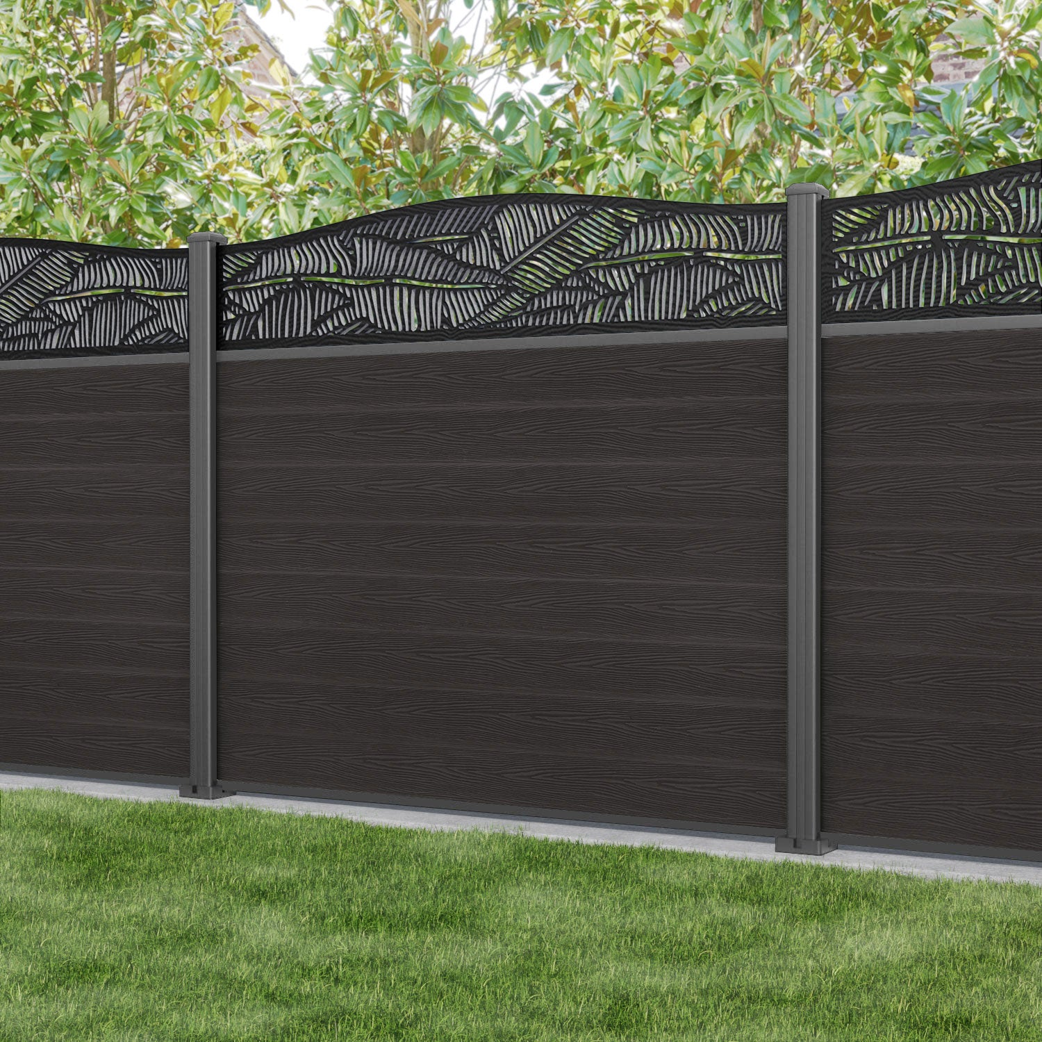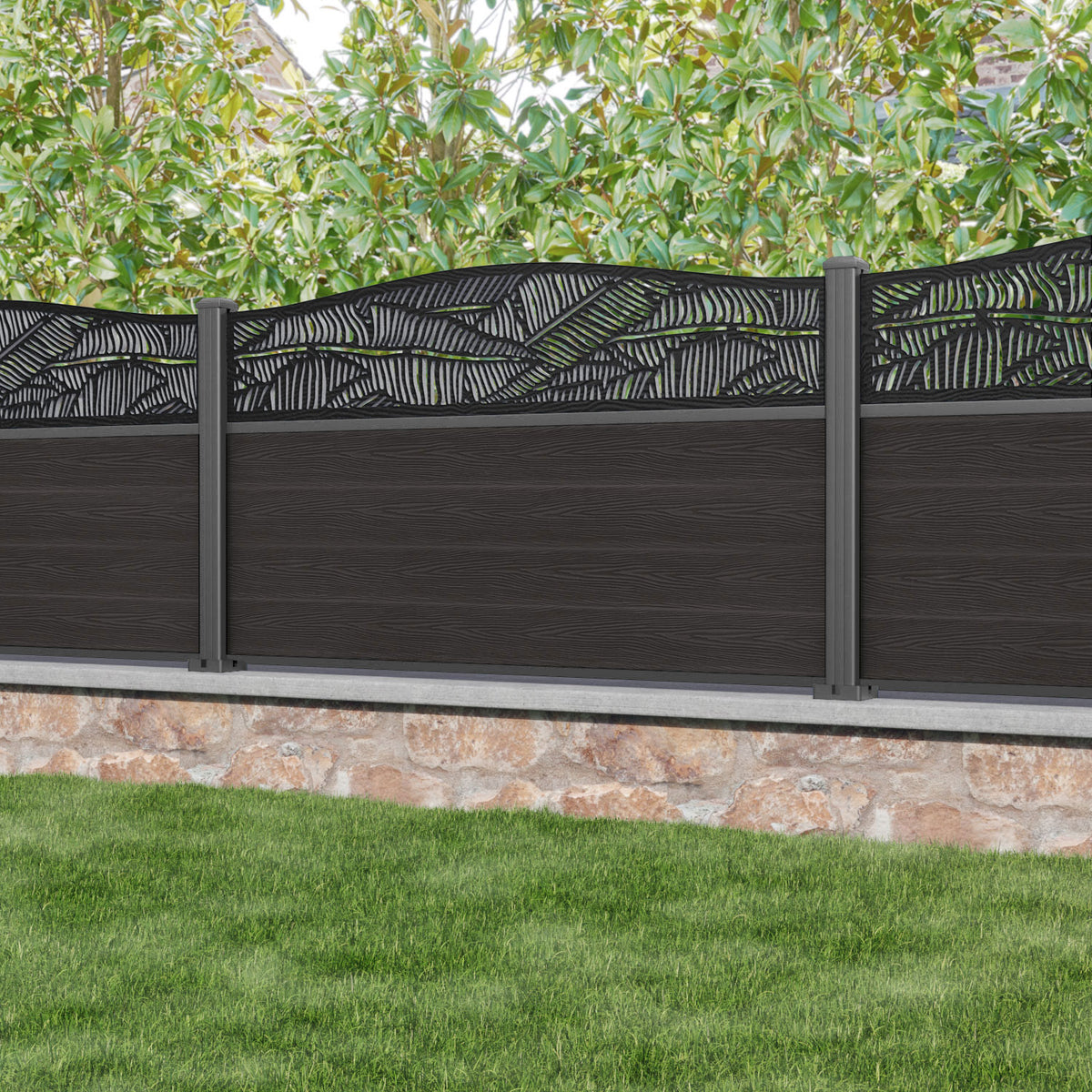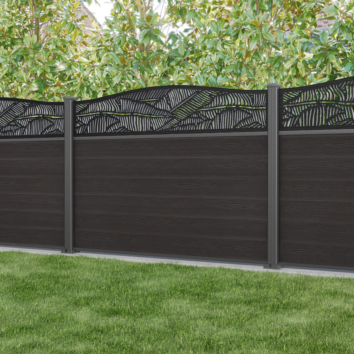 Our 18mm thick dark oak premium composite fence slats paired with our high-grade aluminium fence posts and Feather screen create an elegant, versatile, and eco-friendly fencing solution. Not only is this fencing responsibly sourced, it is also durable, long-lasting and requires no maintenance or painting.