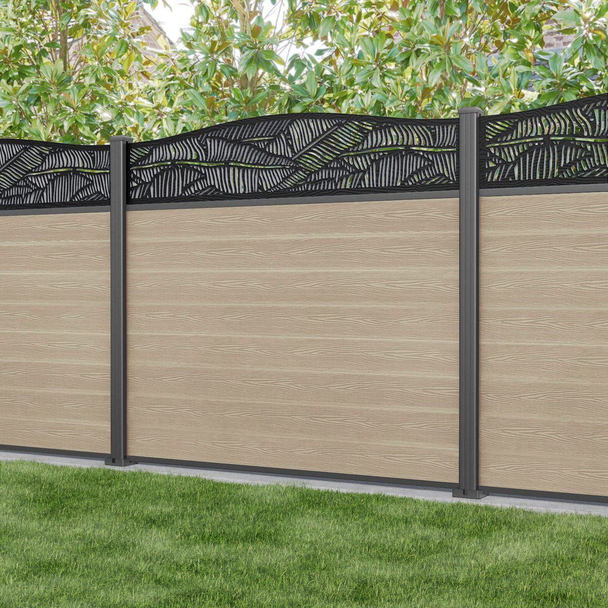 Our 18mm thick light oak premium composite fence slats paired with our high-grade aluminium fence posts and Feather screen create an elegant, versatile, and eco-friendly fencing solution. Not only is this fencing responsibly sourced, it is also durable, long-lasting and requires no maintenance or painting.
