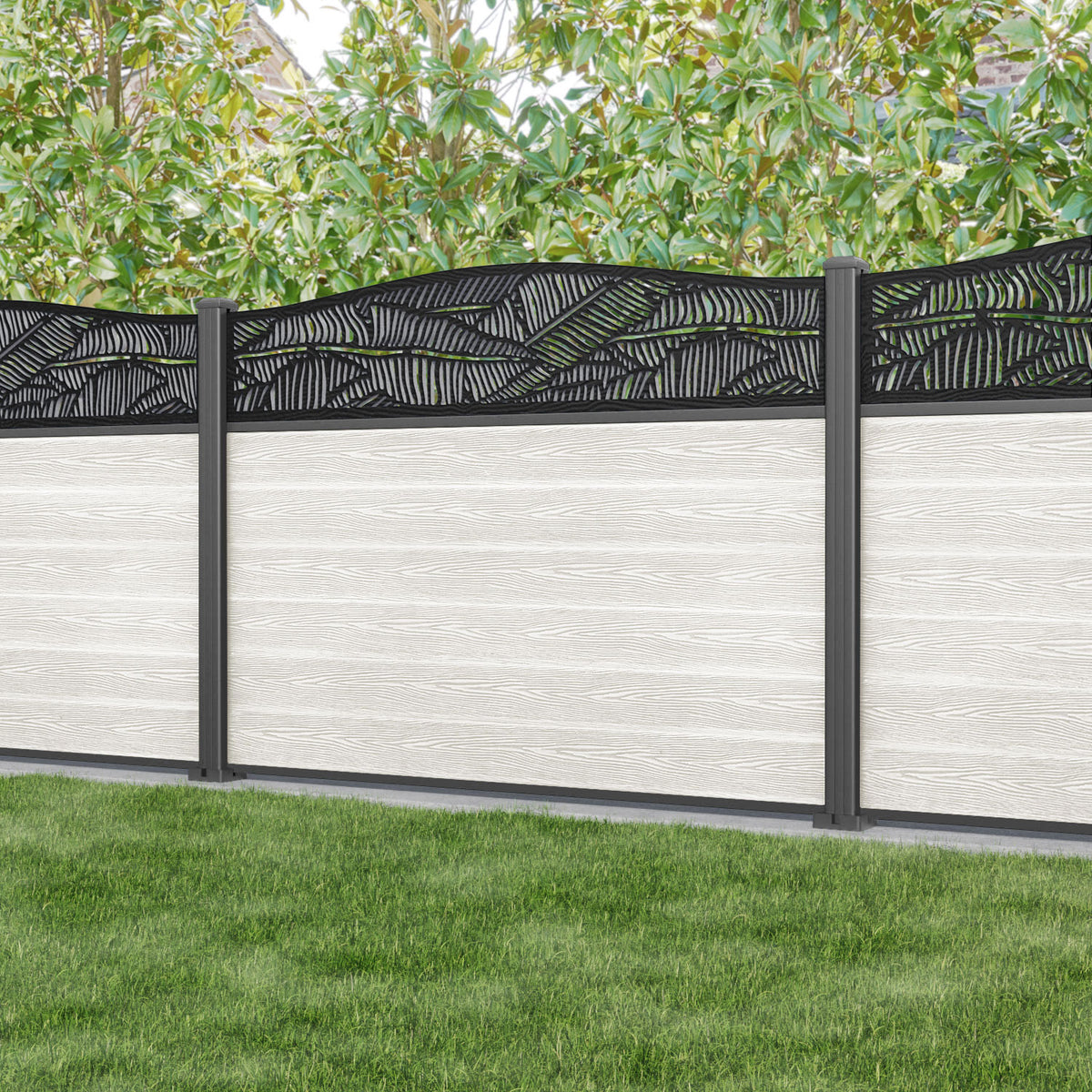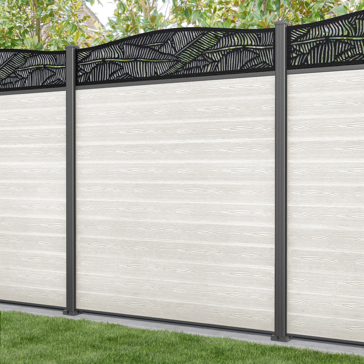 Our 18mm thick light stone premium composite fence slats paired with our high-grade aluminium fence posts and Feather screen create an elegant, versatile, and eco-friendly fencing solution. Not only is this fencing responsibly sourced, it is also durable, long-lasting and requires no maintenance or painting.