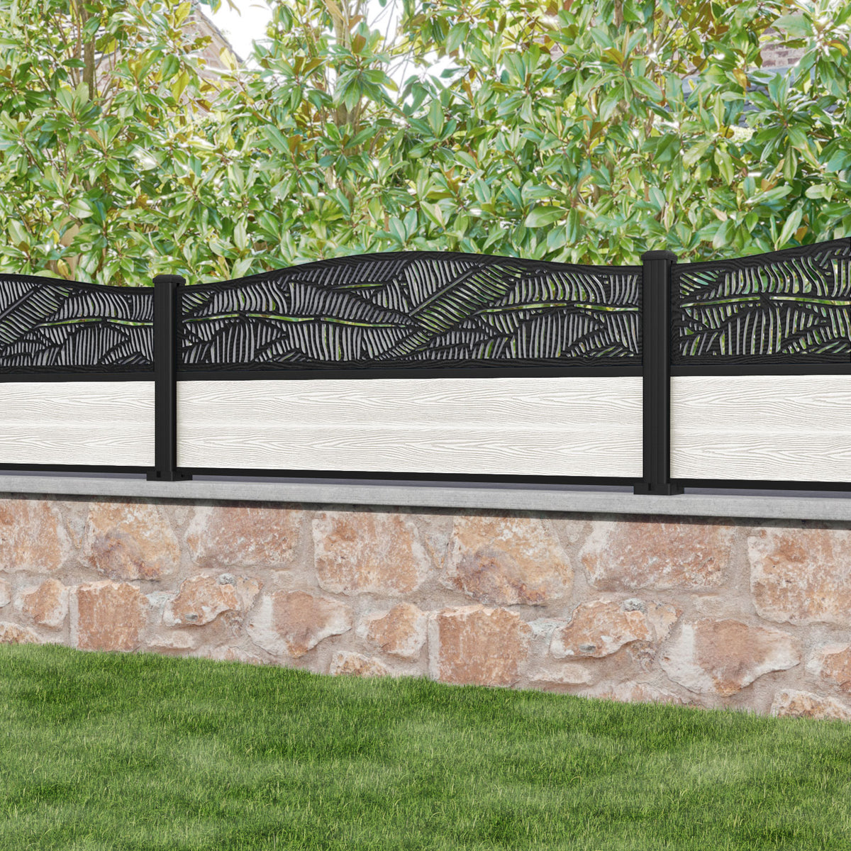 Classic Feather Curved Top Fence Panel Light Stone - with our aluminium posts