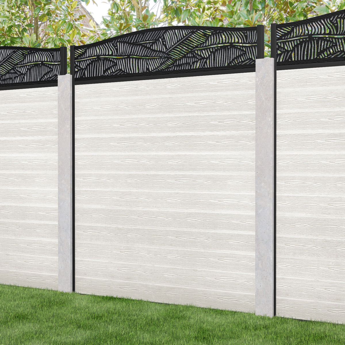 Our Feather premium composite fence screens, 18mm thick light stone fence slats and high-grade composite channels are the perfect choice if you have existing concrete posts. Create an elegant, versatile, and eco-friendly fencing solution. Not only is this fencing responsibly sourced, it is also durable, long-lasting and requires no maintenance or painting.