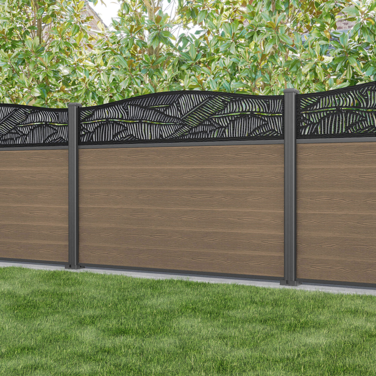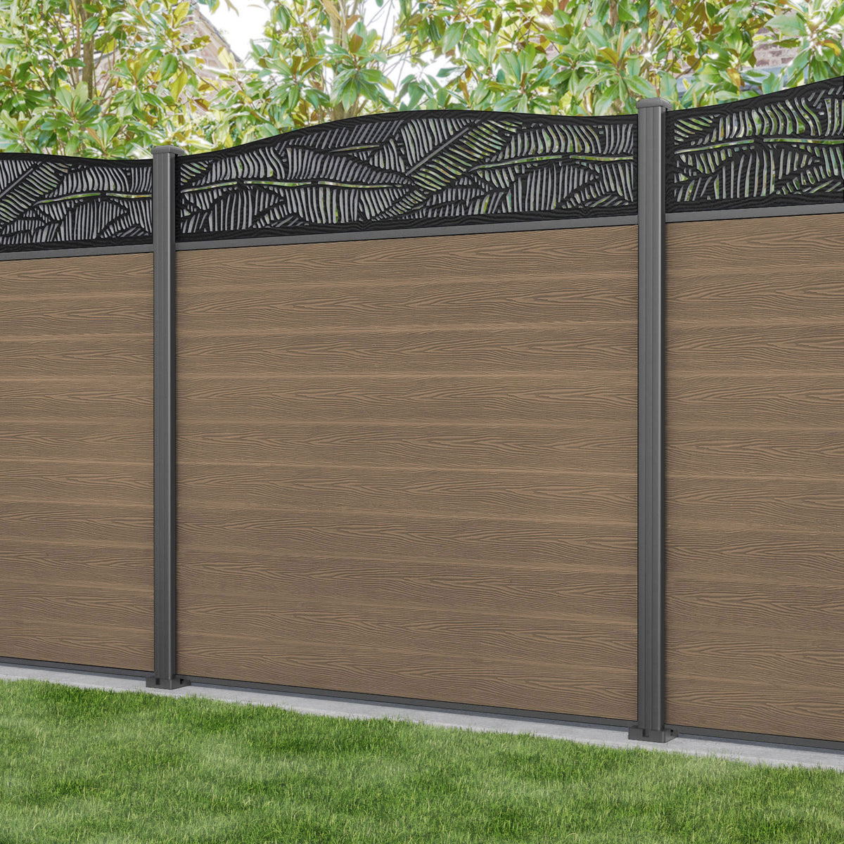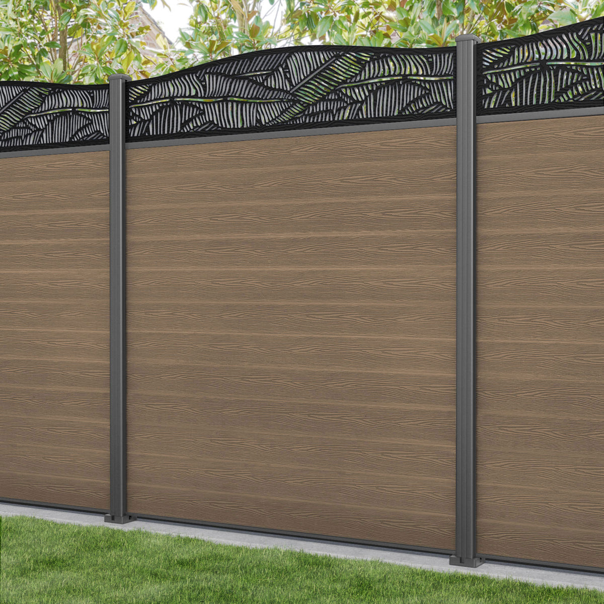 Our 18mm thick teak premium composite fence slats paired with our high-grade aluminium fence posts and Feather screen create an elegant, versatile, and eco-friendly fencing solution. Not only is this fencing responsibly sourced, it is also durable, long-lasting and requires no maintenance or painting.