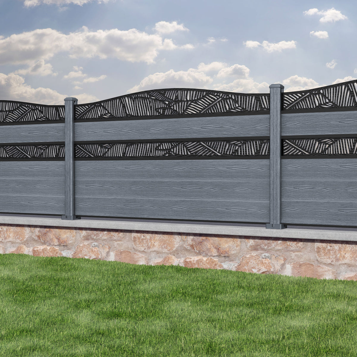 Our 18mm thick mid stone premium composite fence slats paired with our composite fence posts and Classic screen create an elegant, versatile, and eco-friendly fencing solution. Not only is this fencing responsibly sourced, it is also durable, long-lasting and requires no maintenance or painting.