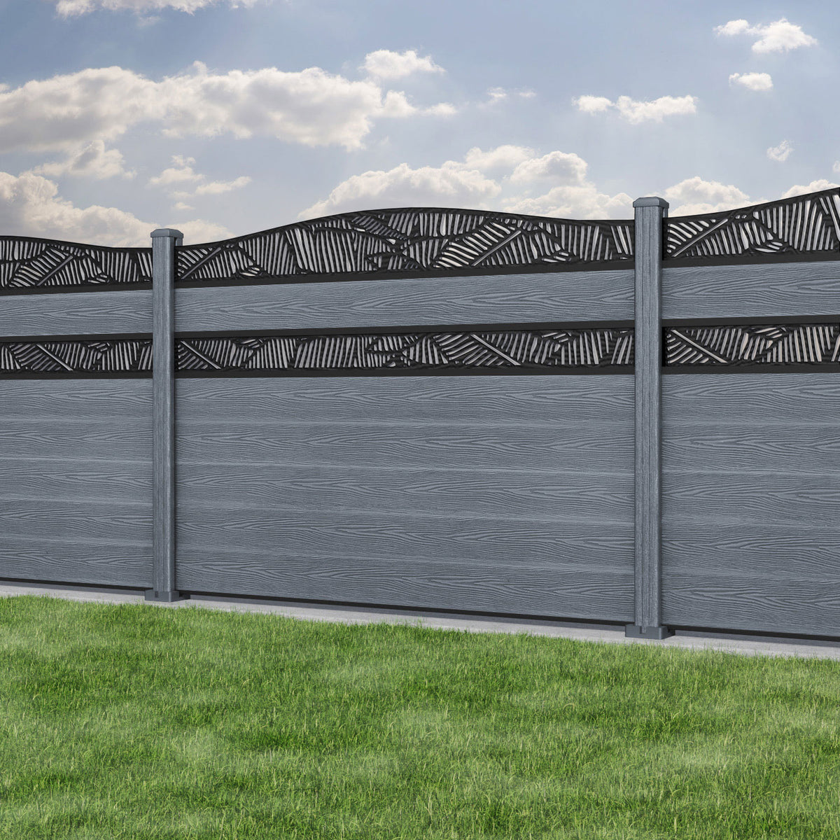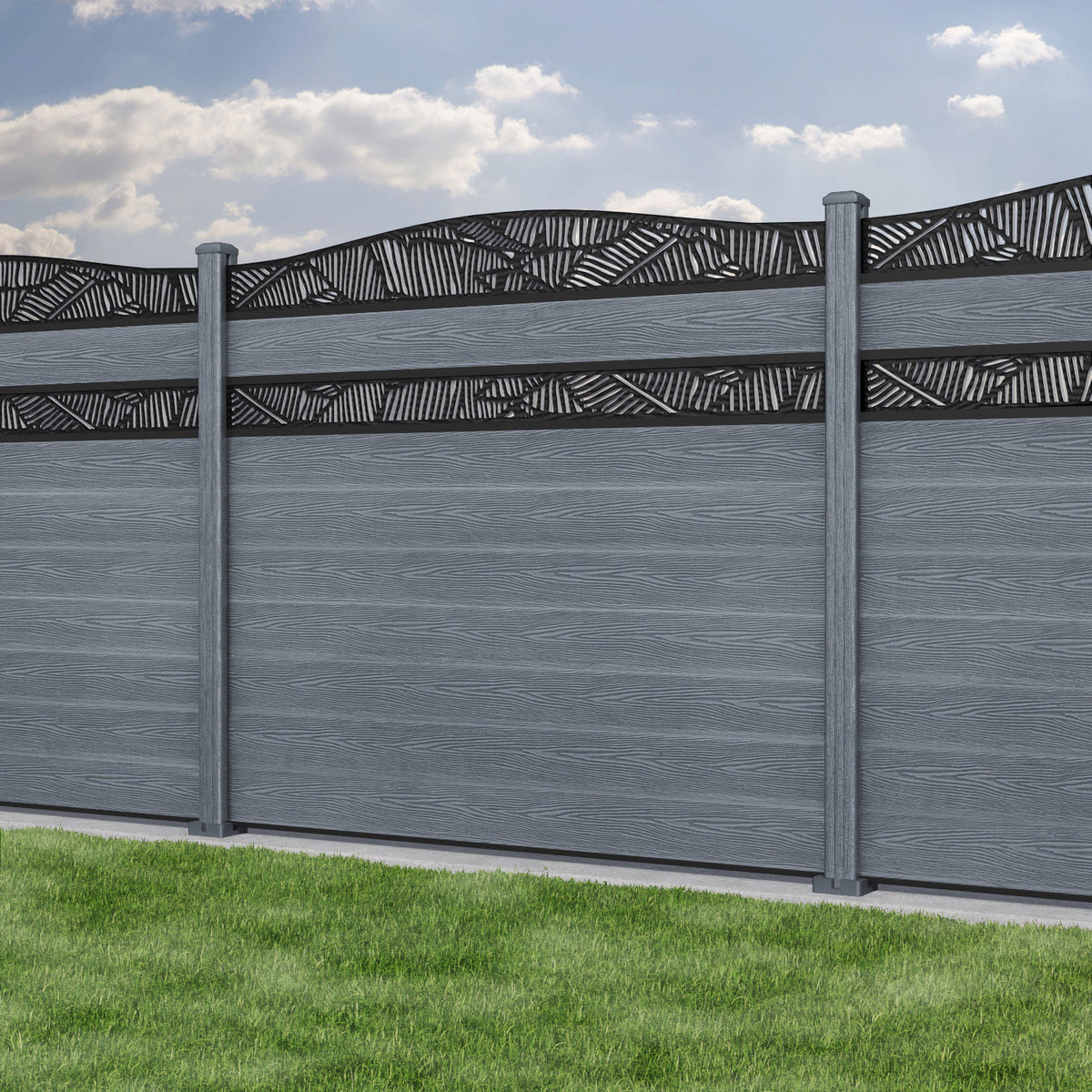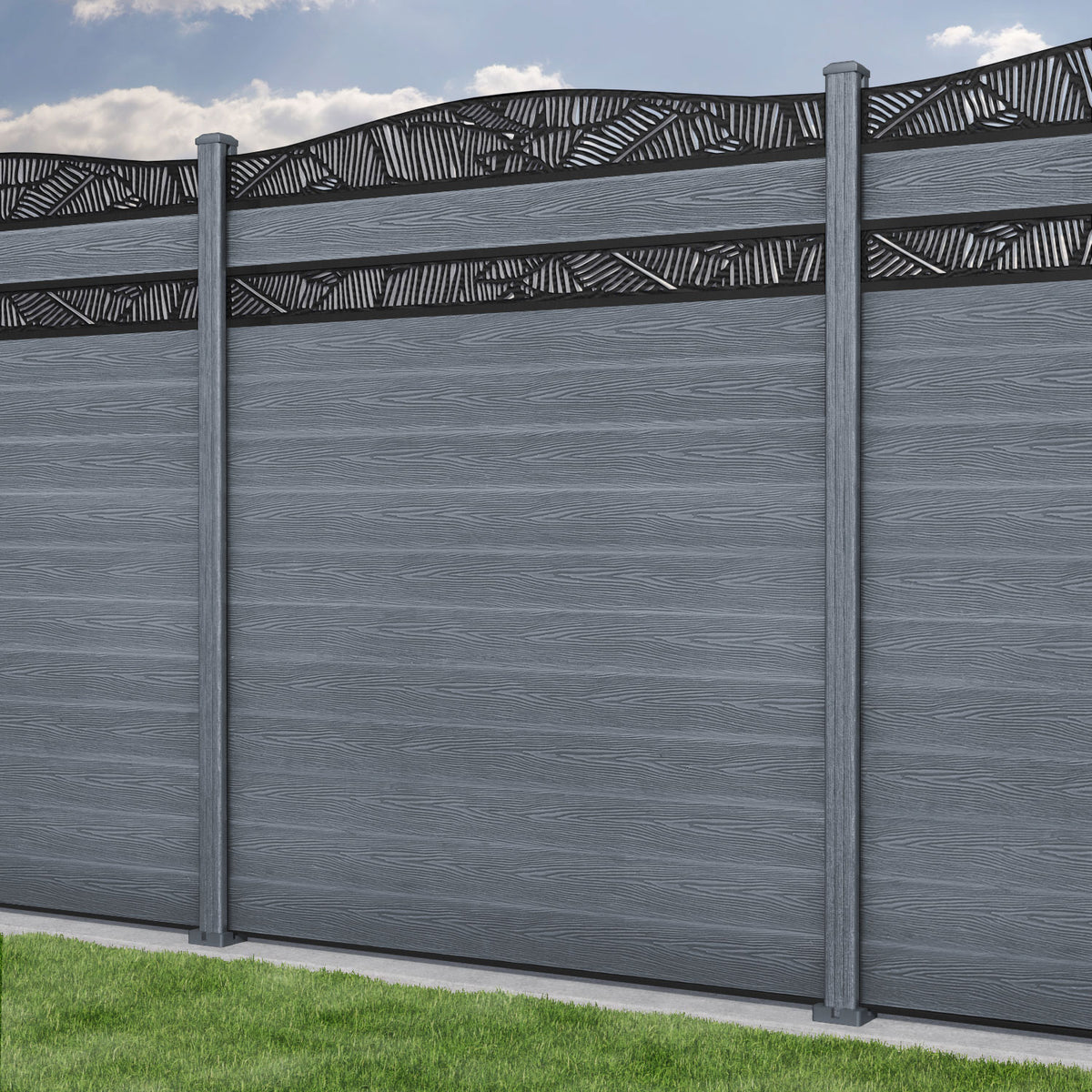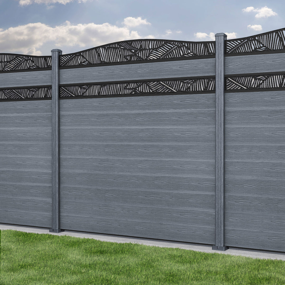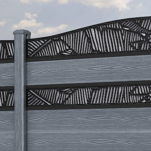 Classic Feather Curved Top Split Screen Fence Panel Anthracite - with our composite posts