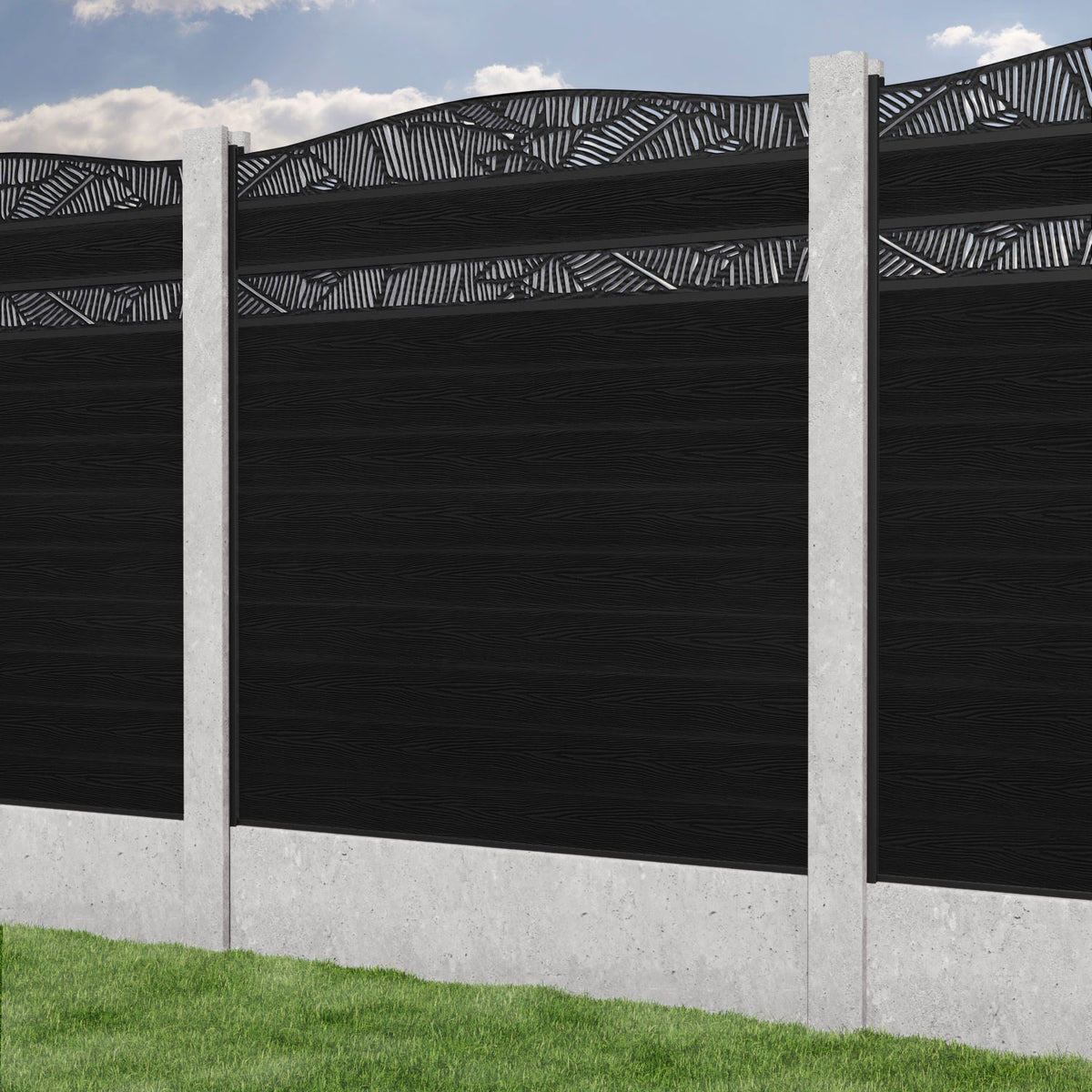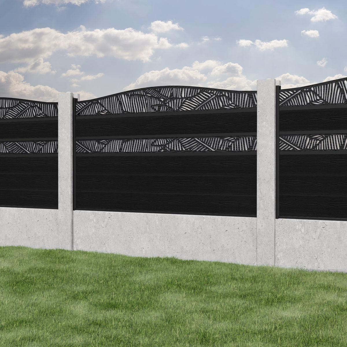 Classic Feather Curved Top Split Screen Fence Panel Black - for existing concrete posts