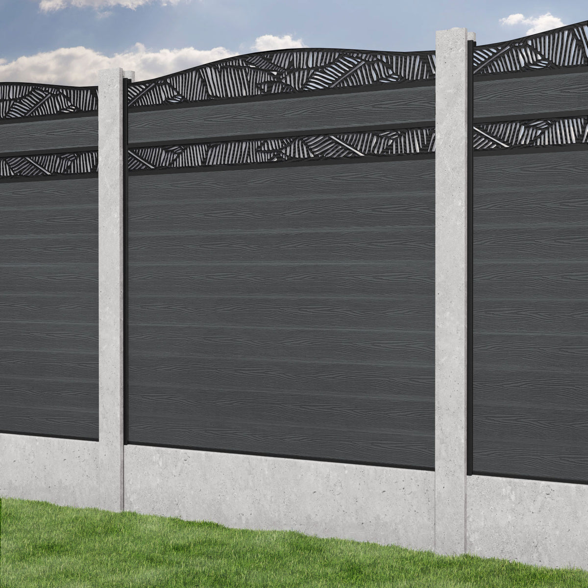 Classic Feather Curved Top Split Screen Fence Panel Dark Grey - for existing concrete posts