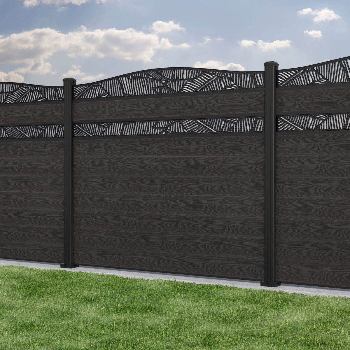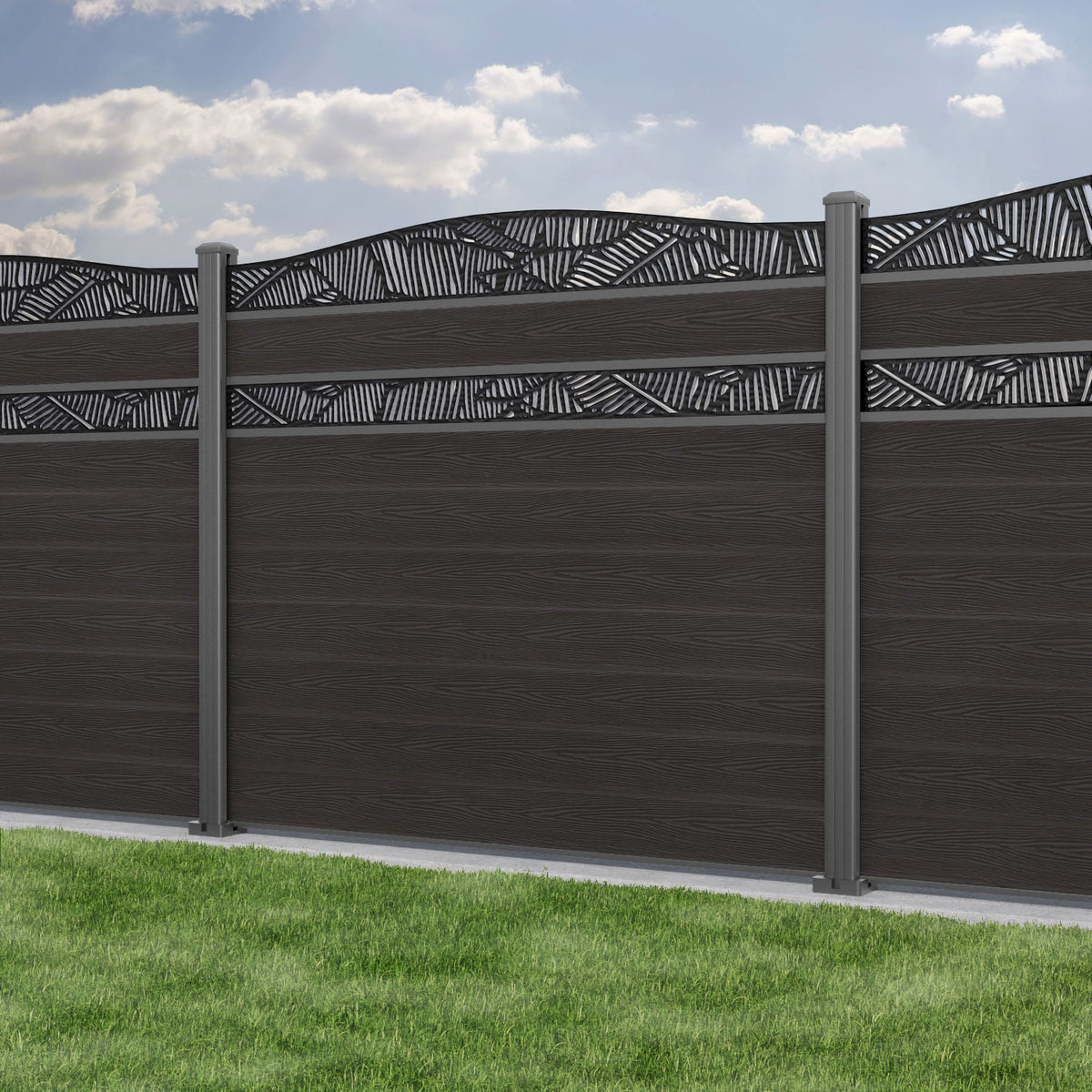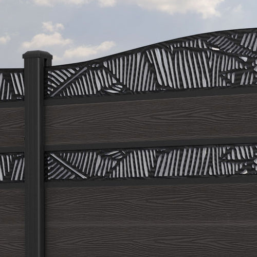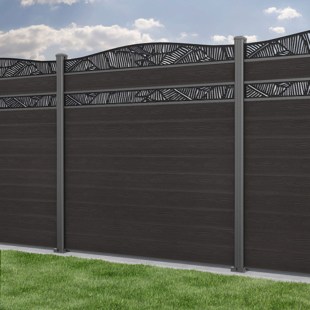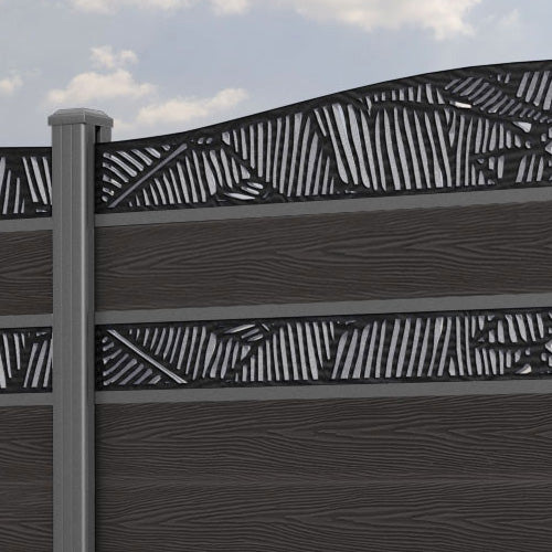 Classic Feather Curved Top Split Screen Fence Panel Dark Oak - with our aluminium posts