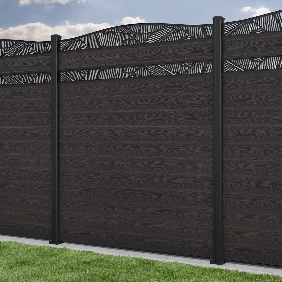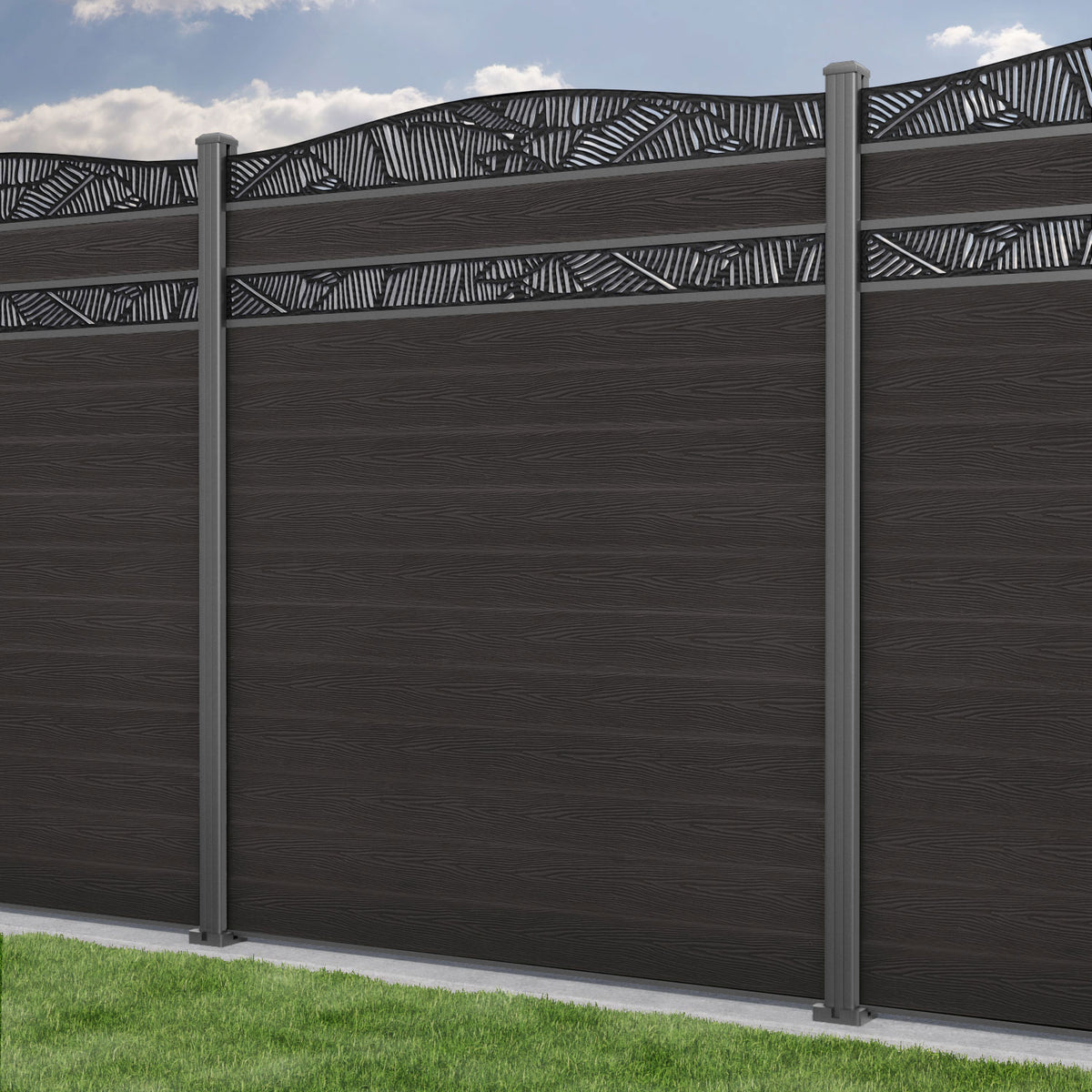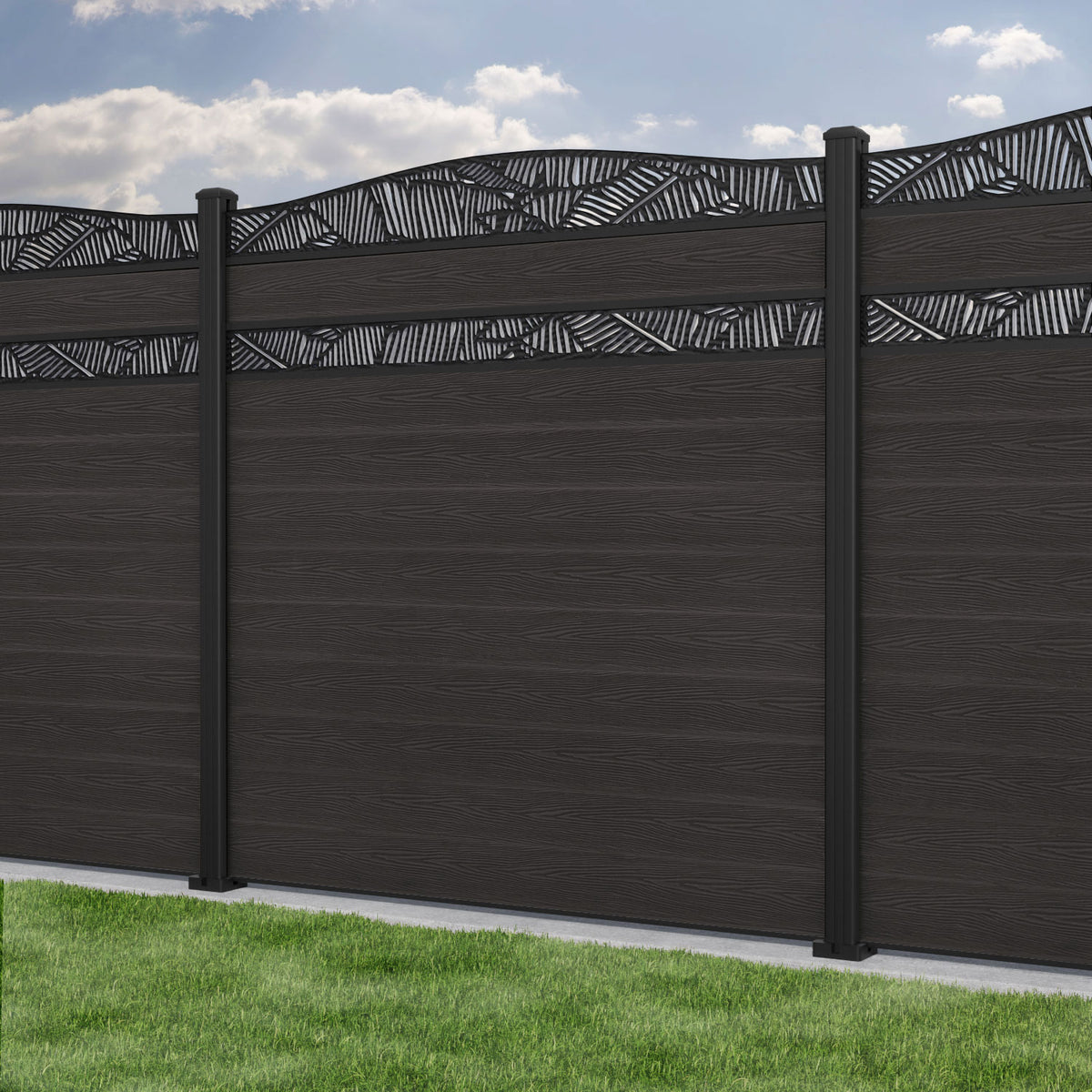 Classic Feather Curved Top Split Screen Fence Panel Dark Oak - with our aluminium posts