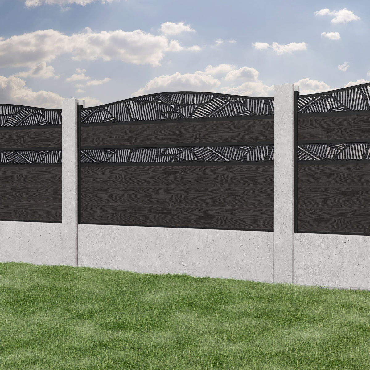 Classic Feather Curved Top Split Screen Fence Panel Dark Oak - for existing concrete posts