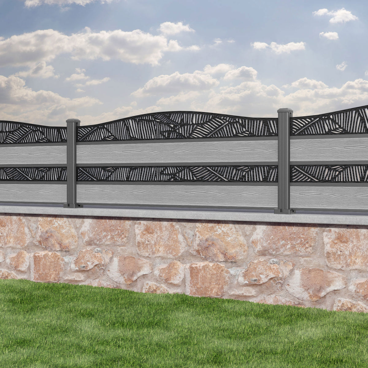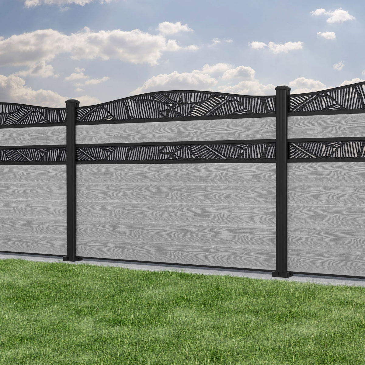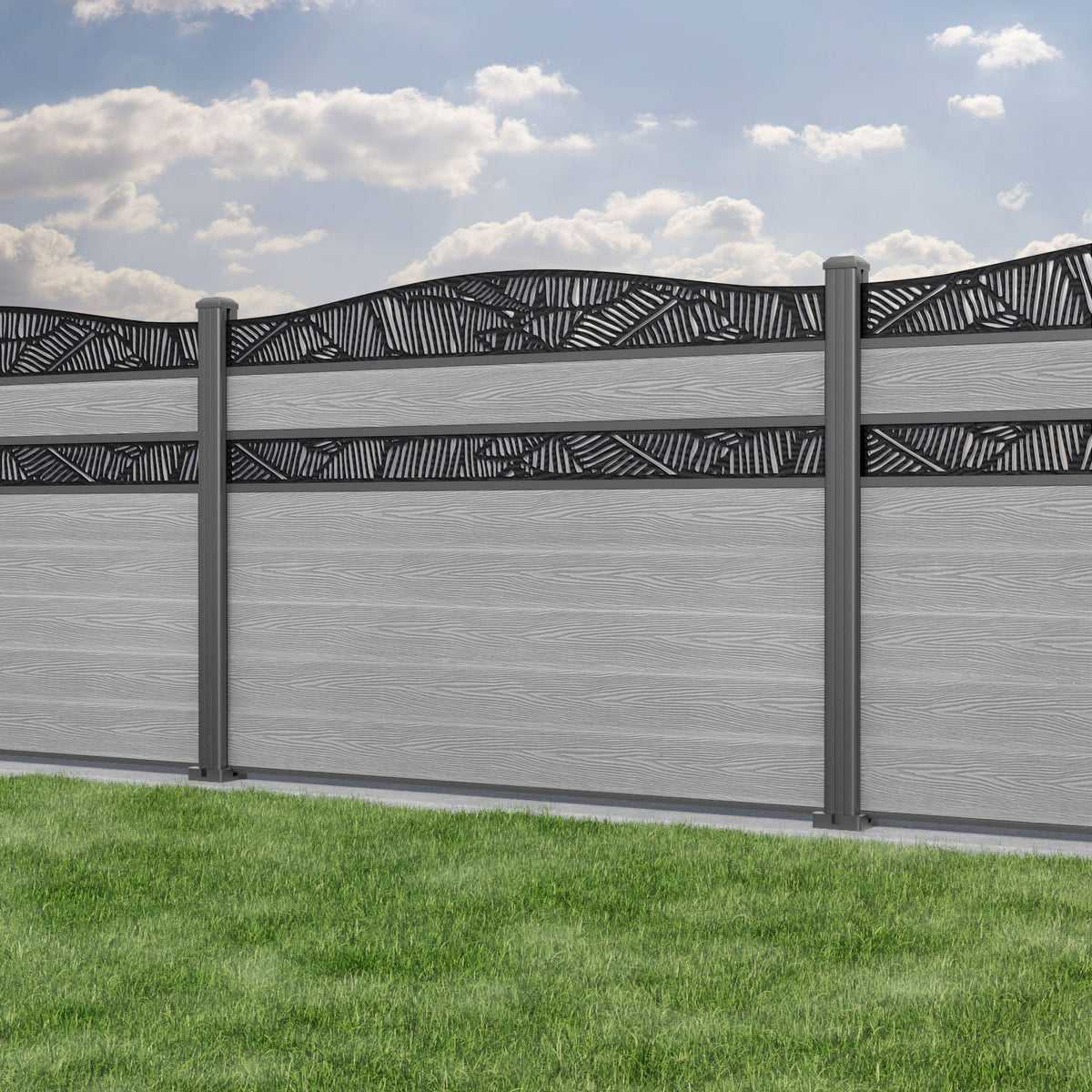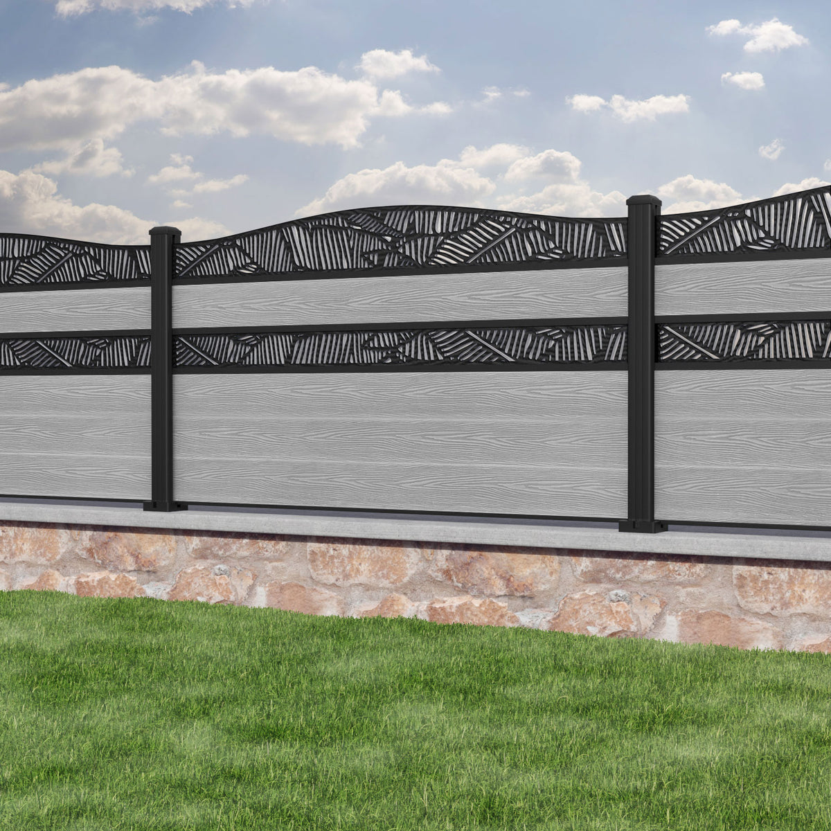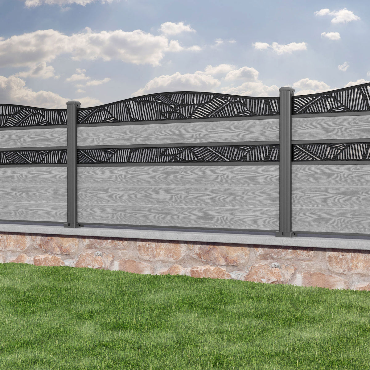 Classic Feather Curved Top Split Screen Fence Panel Light Grey - with our aluminium posts