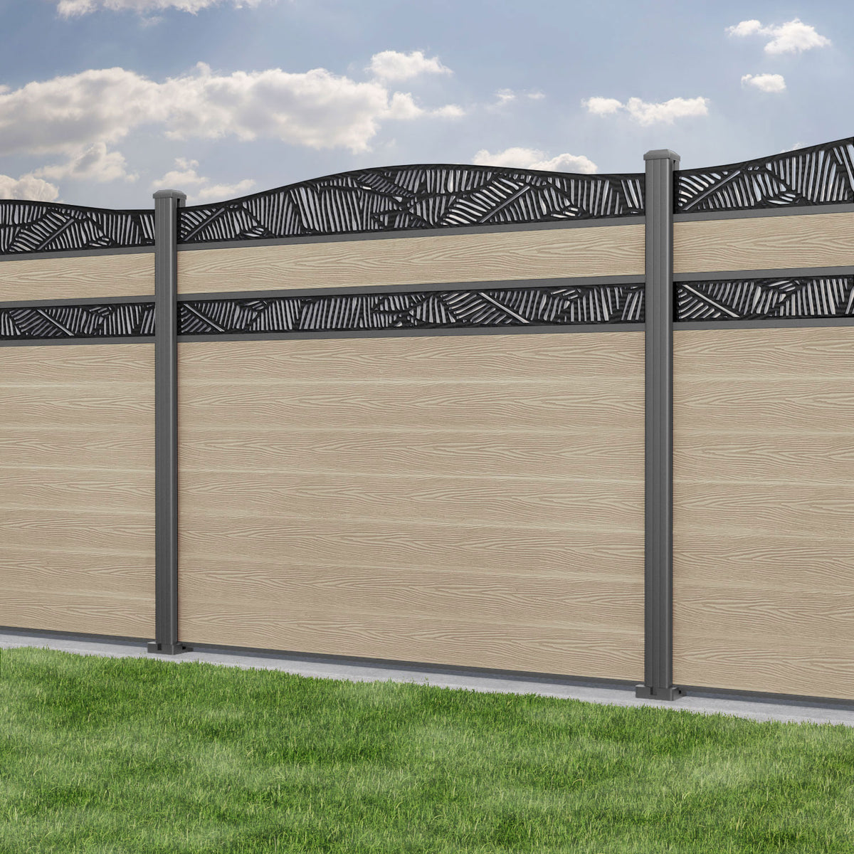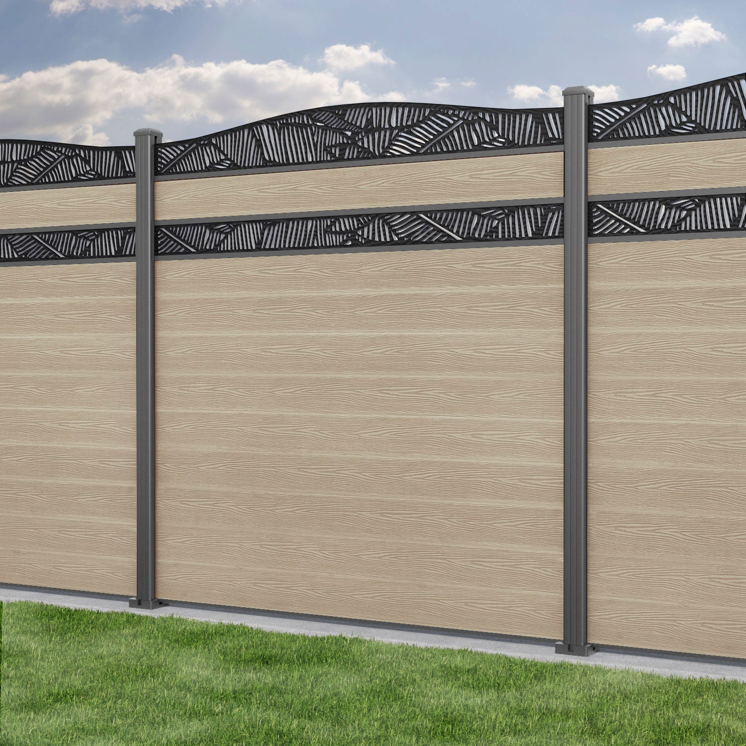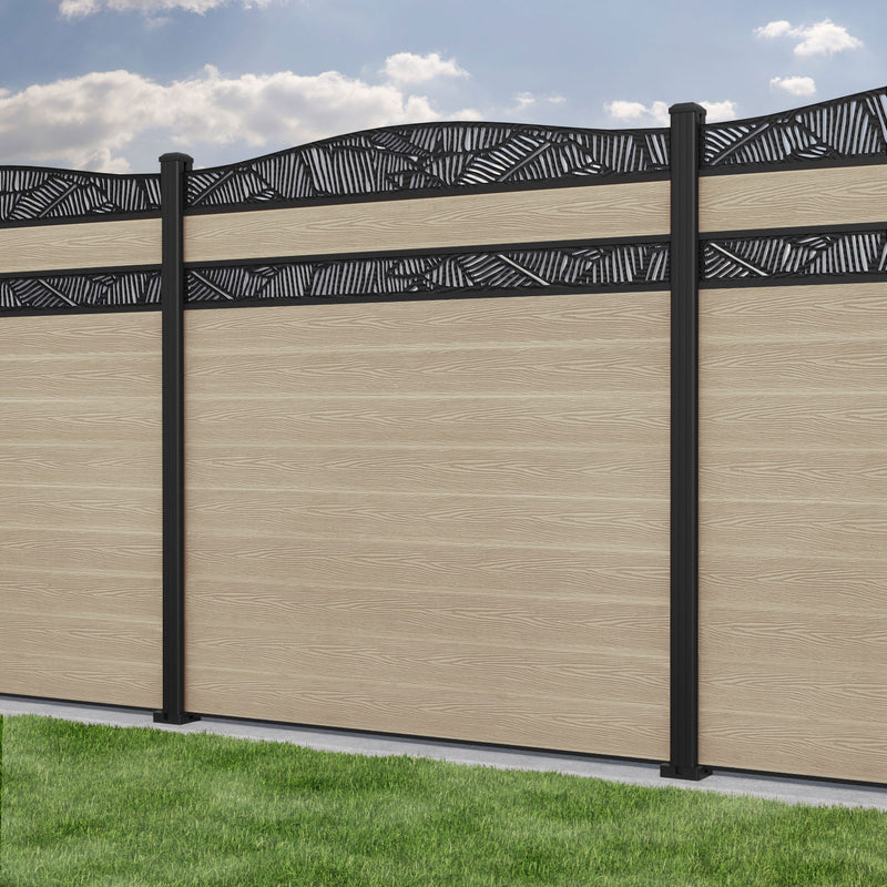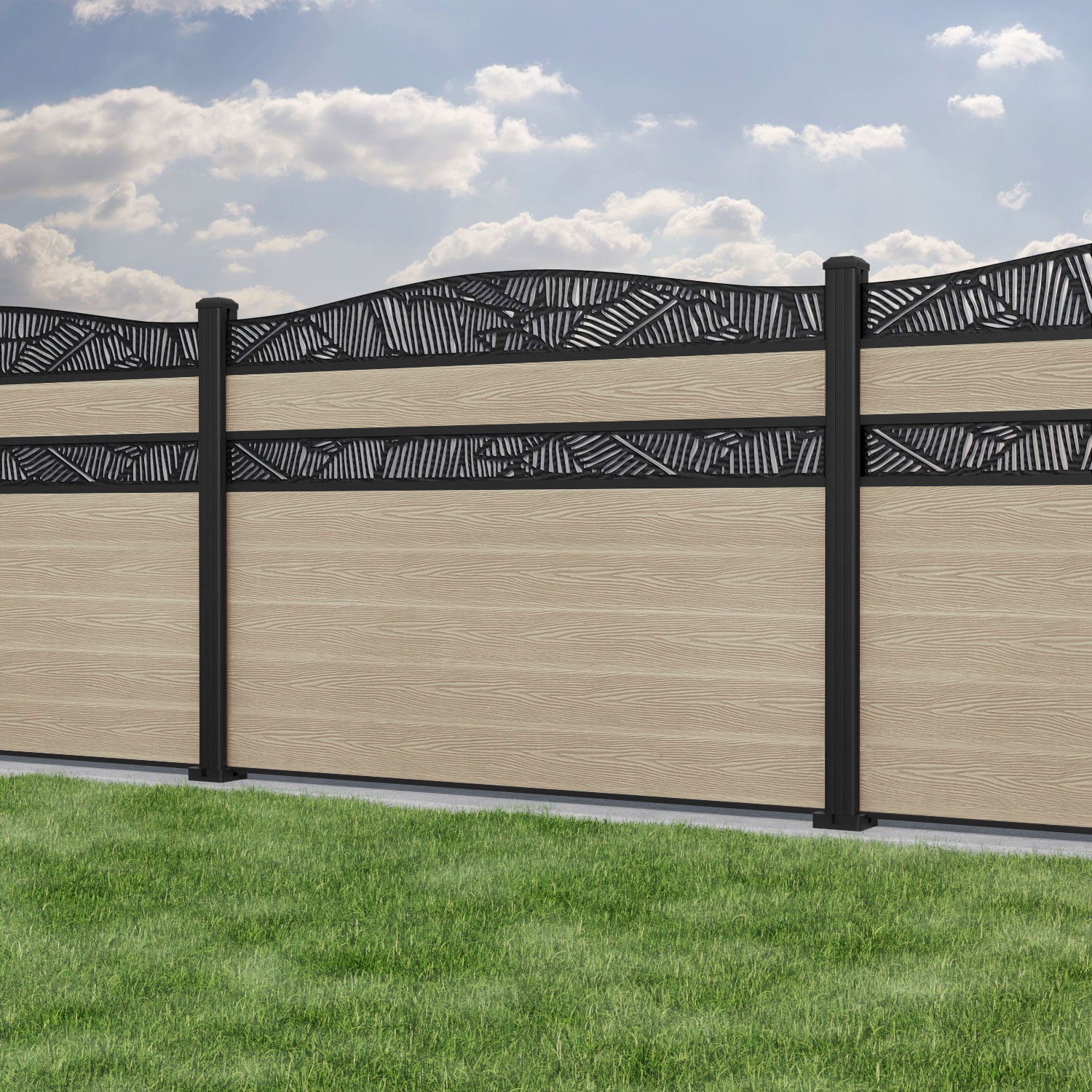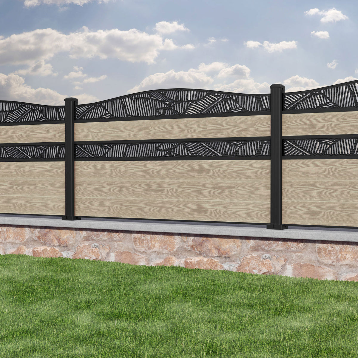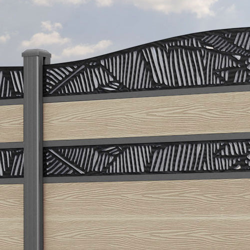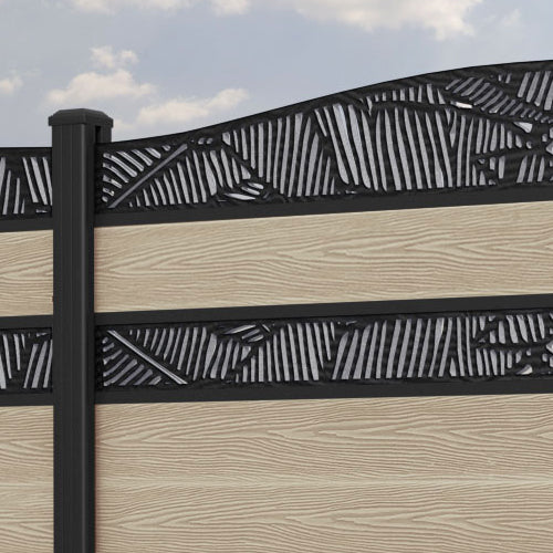 Classic Feather Curved Top Split Screen Fence Panel Light Oak - with our aluminium posts
