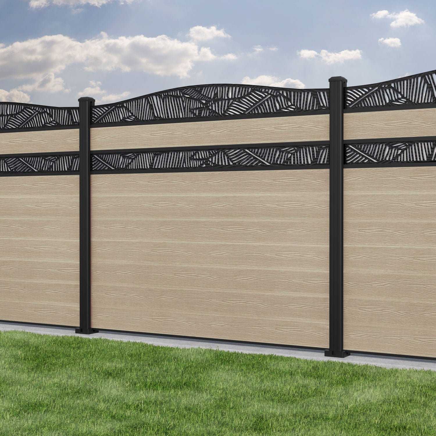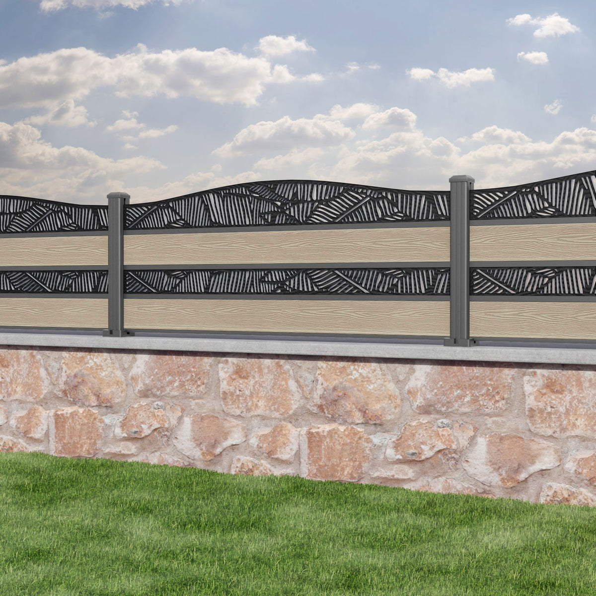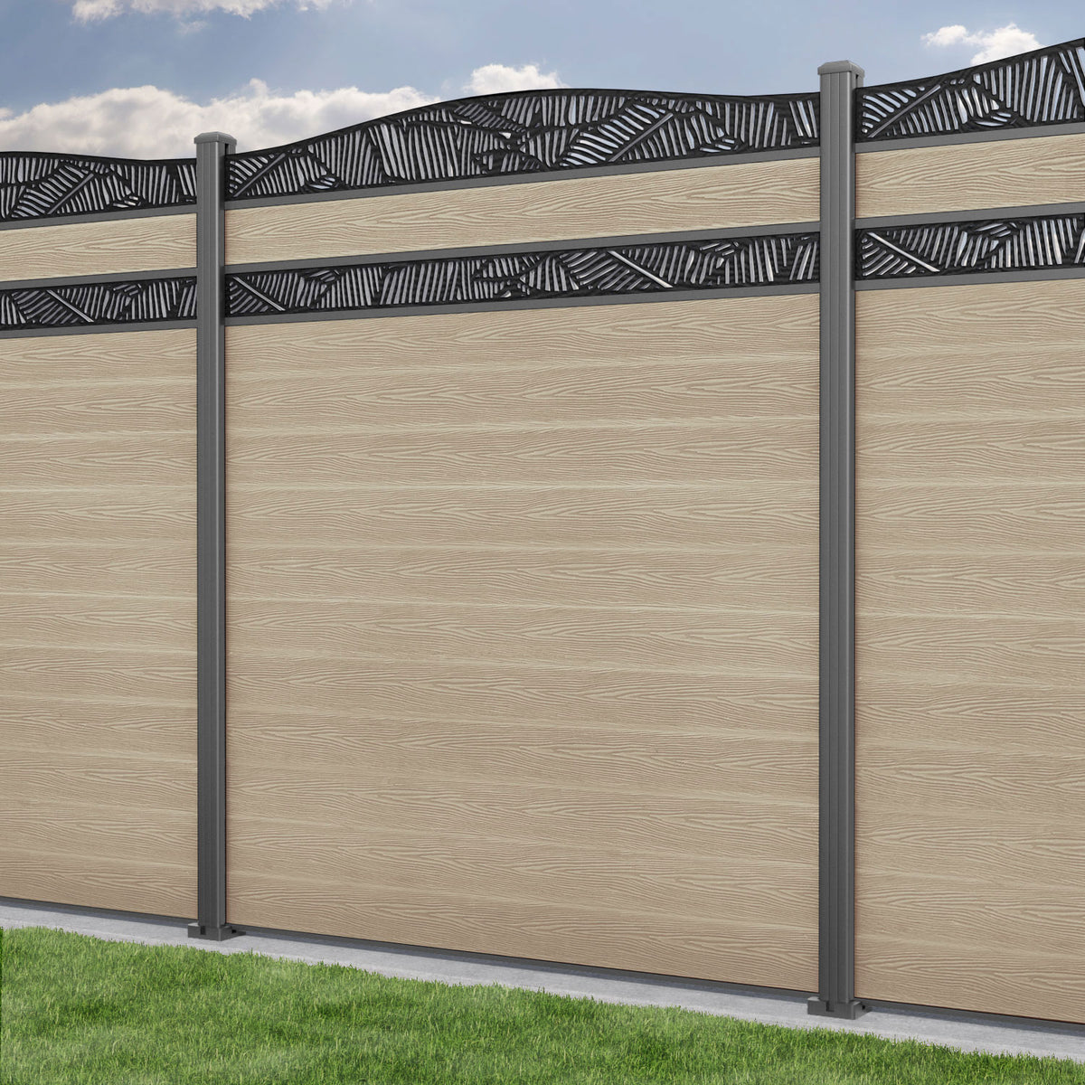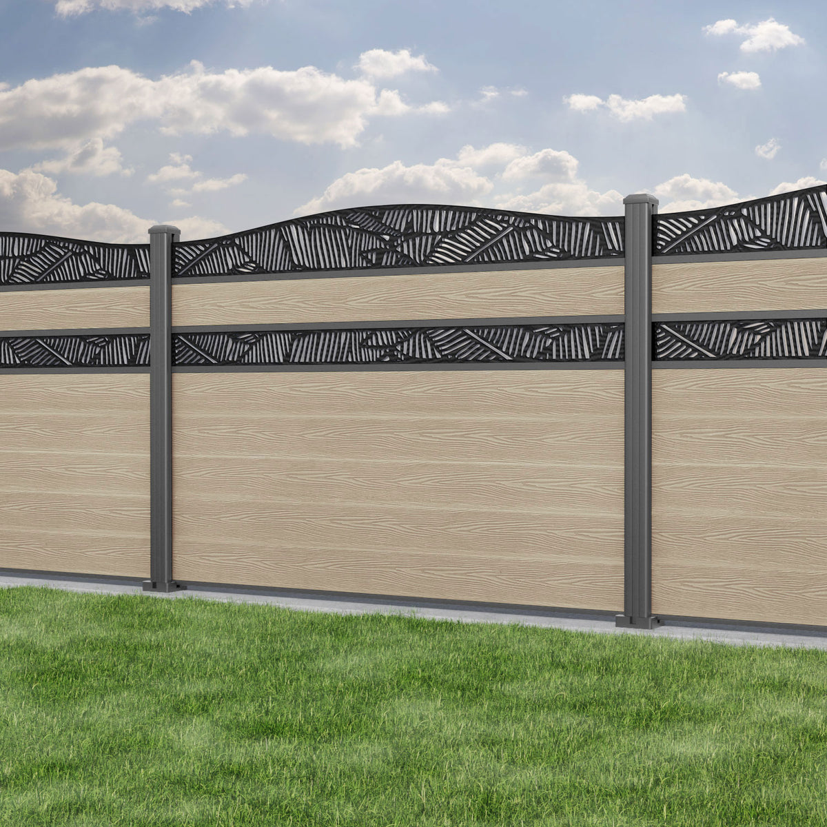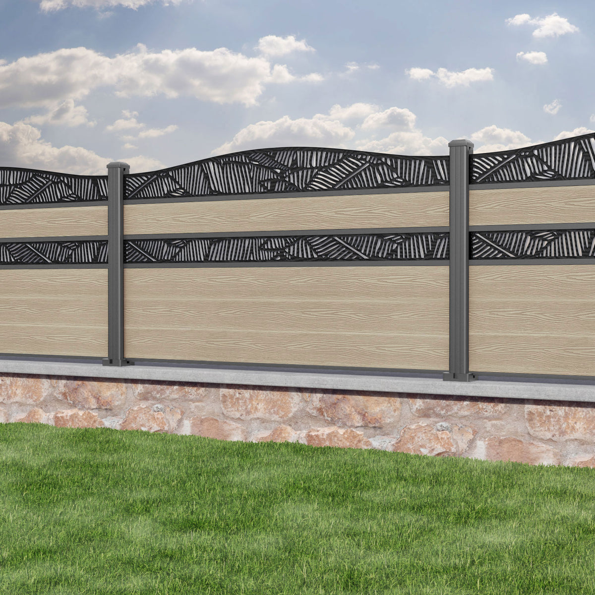 Classic Feather Curved Top Split Screen Fence Panel Light Oak - with our aluminium posts