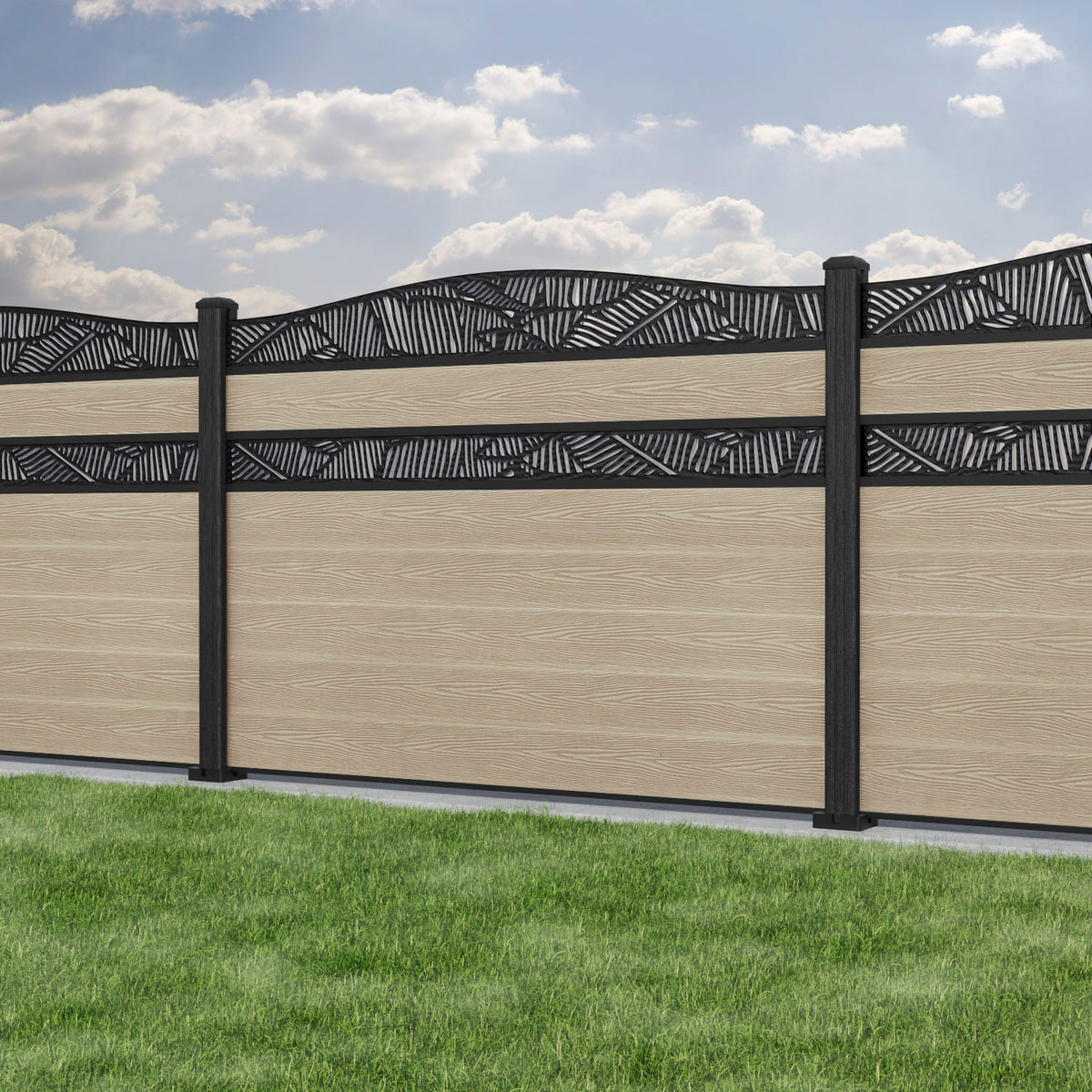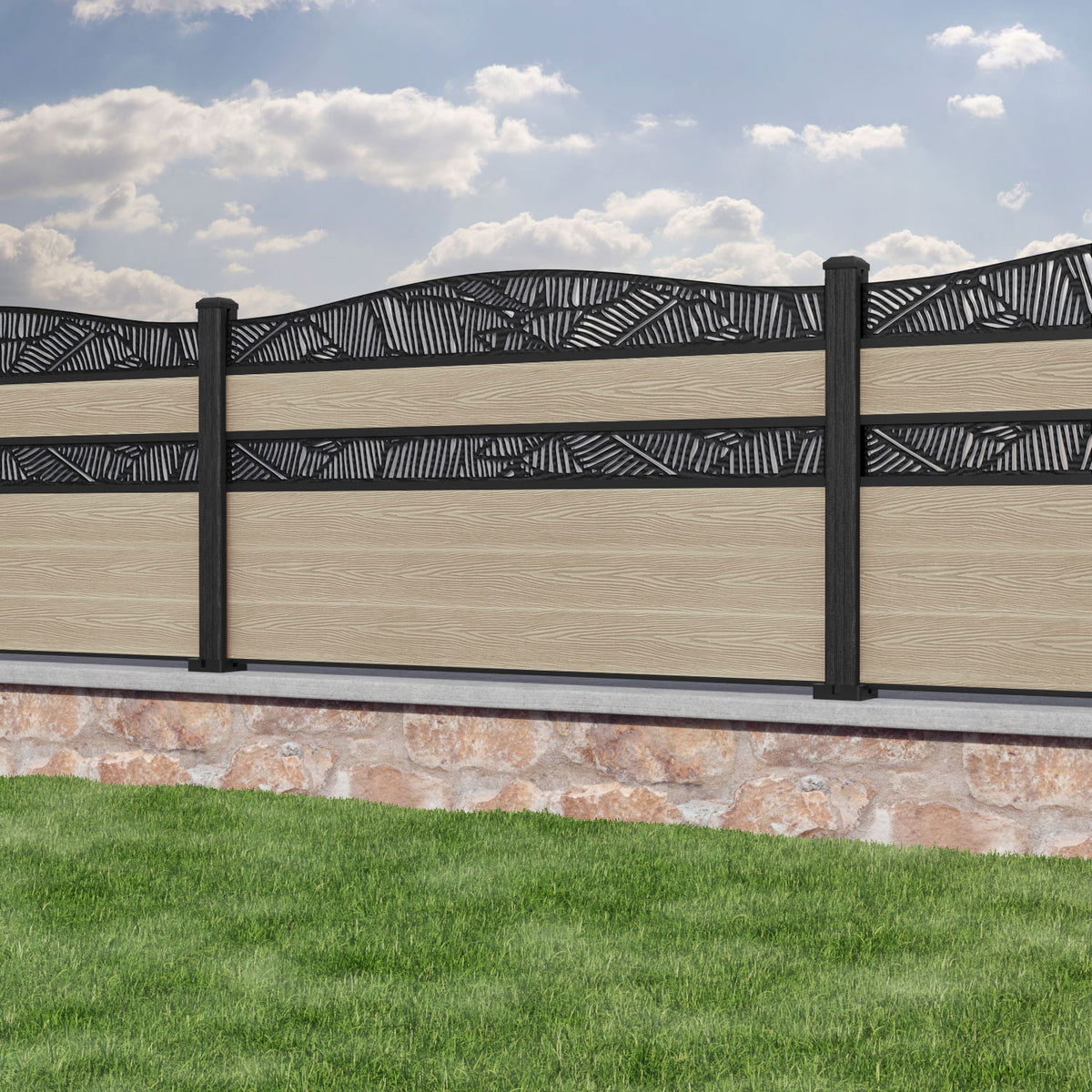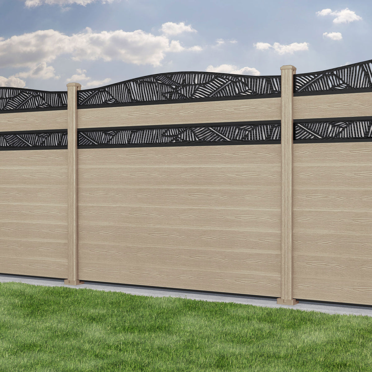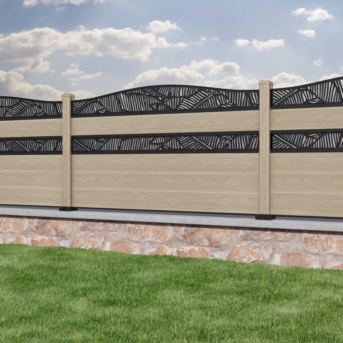 Classic Feather Curved Top Split Screen Fence Panel Light Oak - with our composite posts