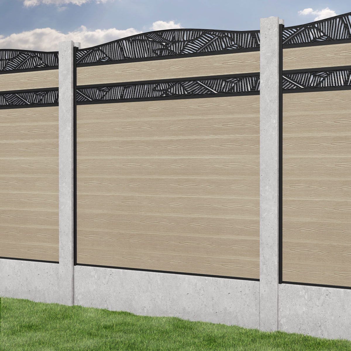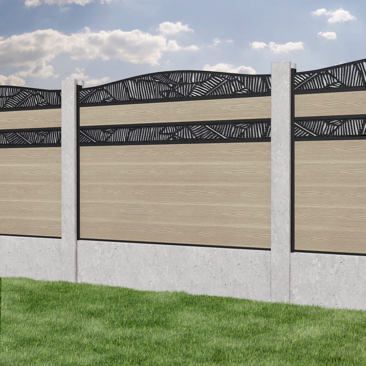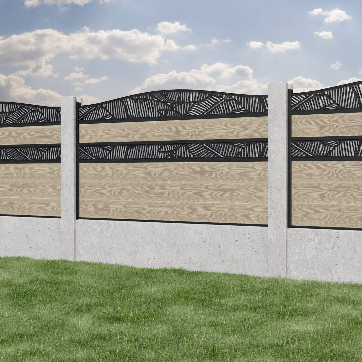 Classic Feather Curved Top Split Screen Fence Panel Light Oak - for existing concrete posts
