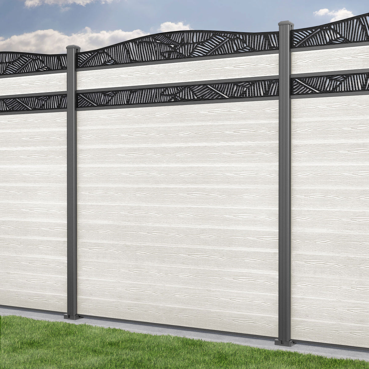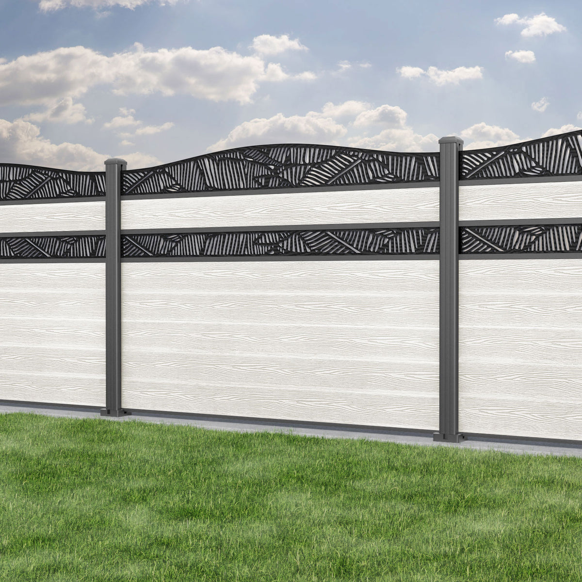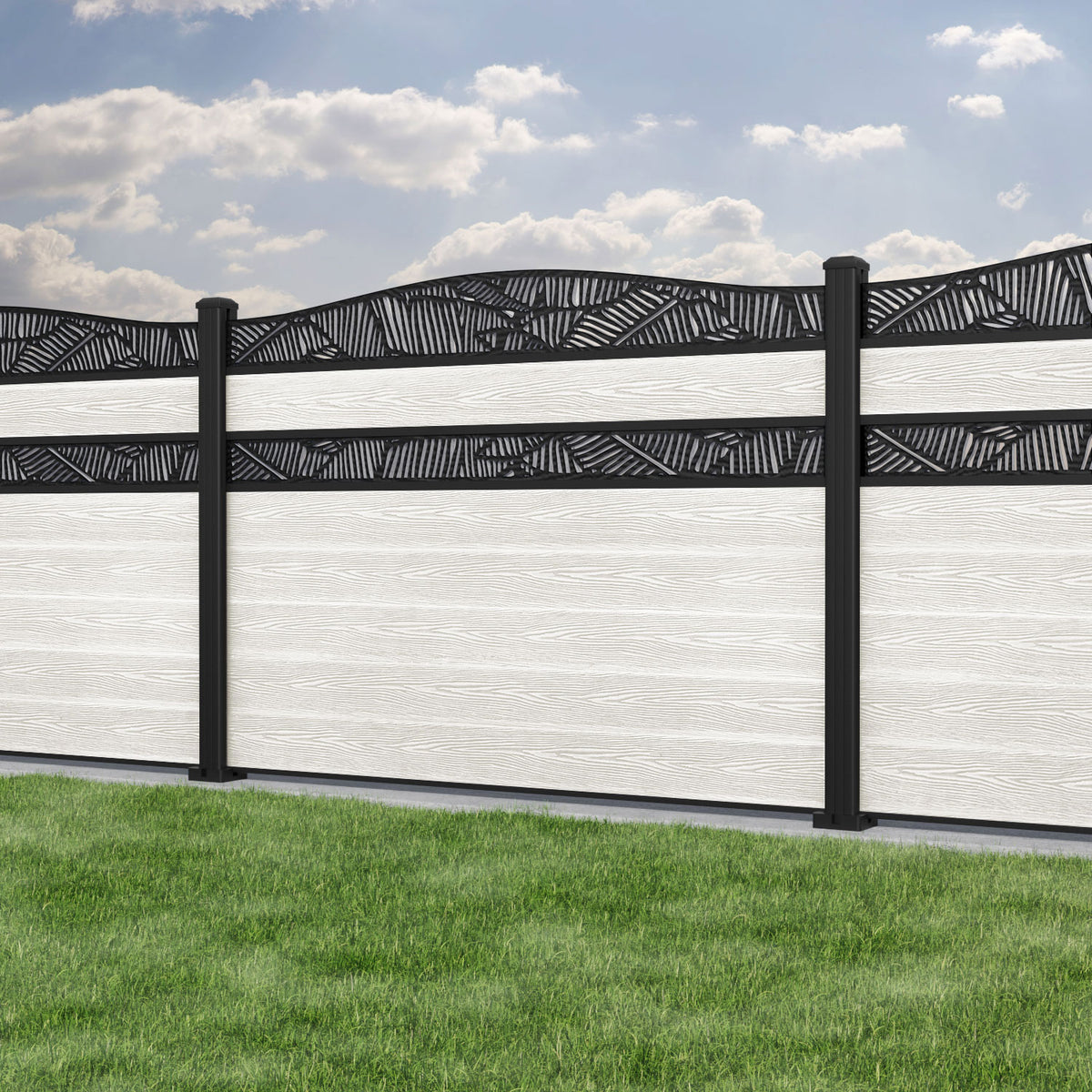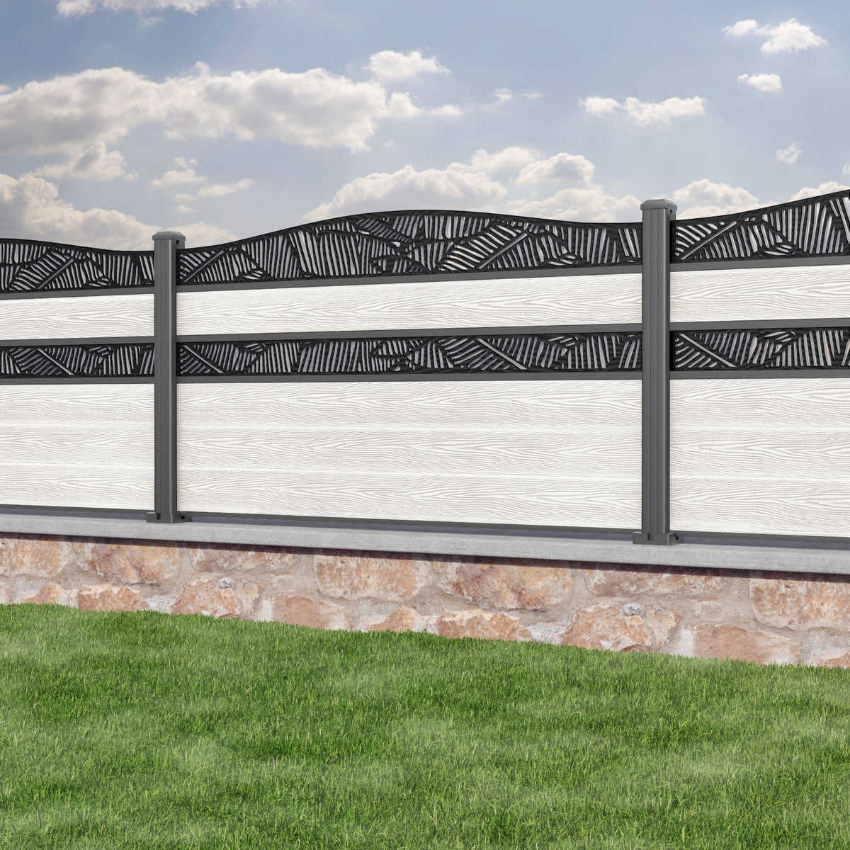 Classic Feather Curved Top Split Screen Fence Panel Light Stone - with our aluminium posts