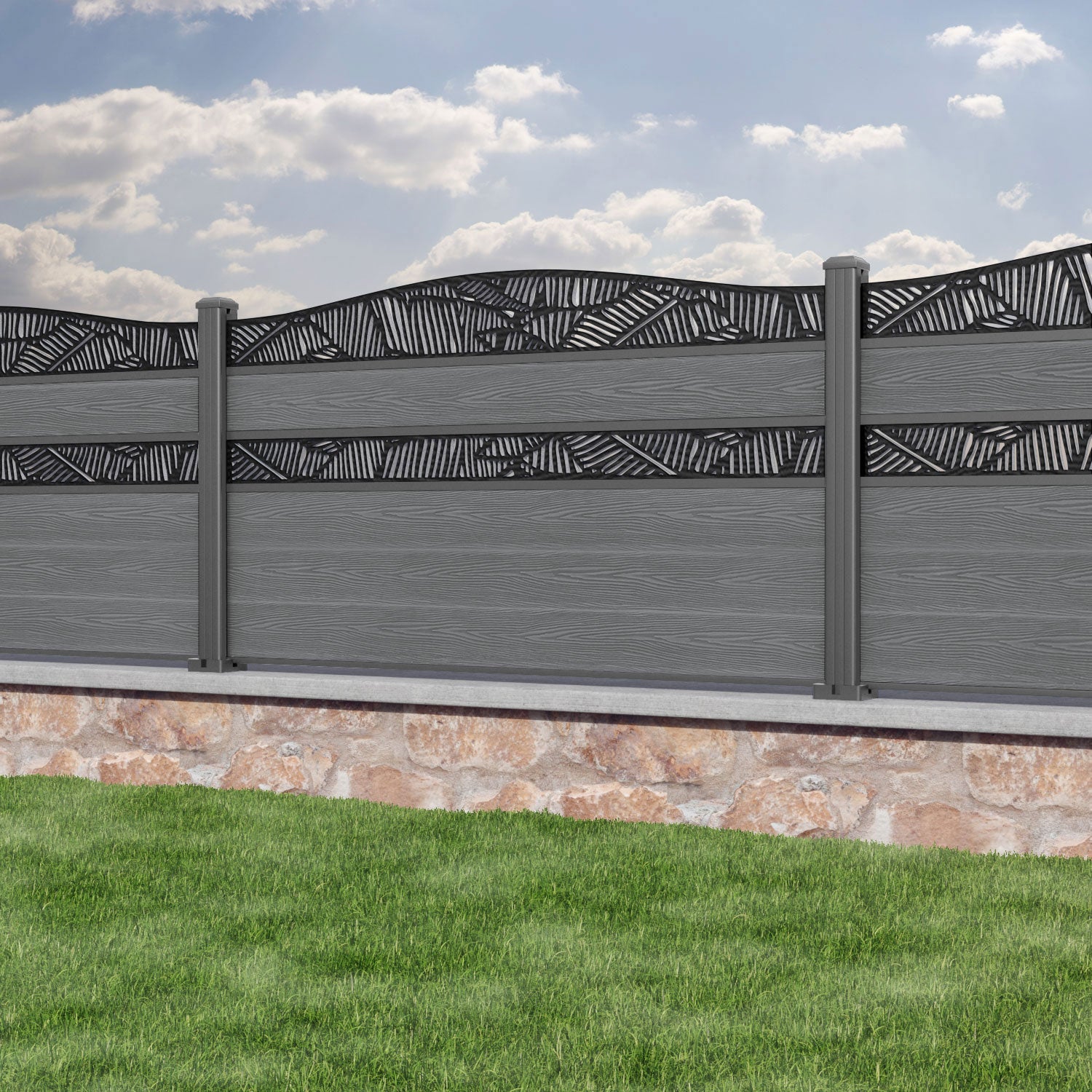 Classic Feather Curved Top Split Screen Fence Panel Mid Grey - with our aluminium posts