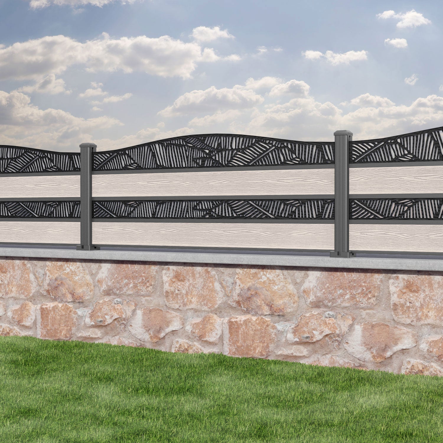Classic Feather Curved Top Split Screen Fence Panel Mid Stone - with our aluminium posts